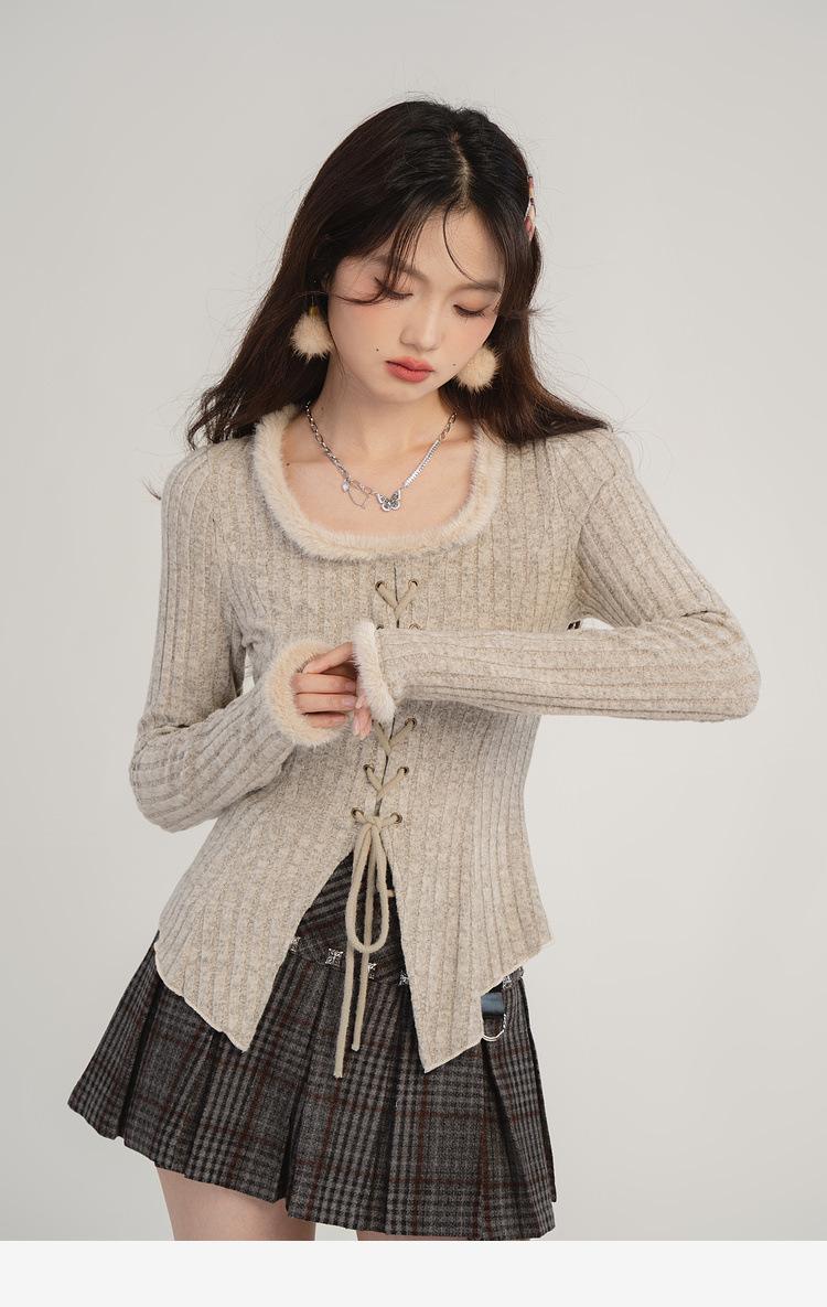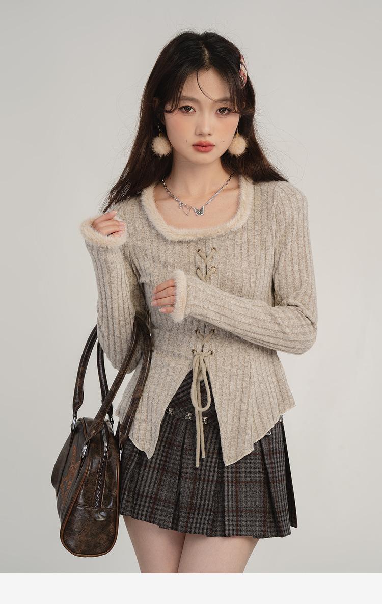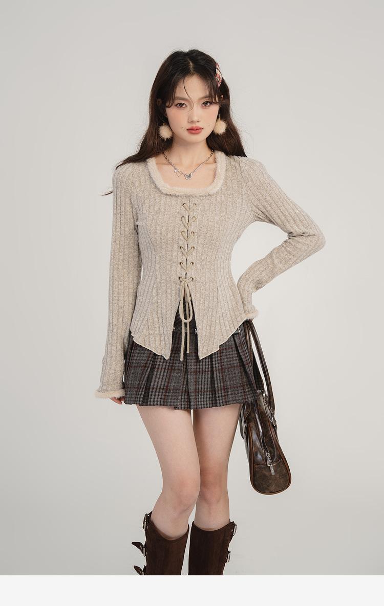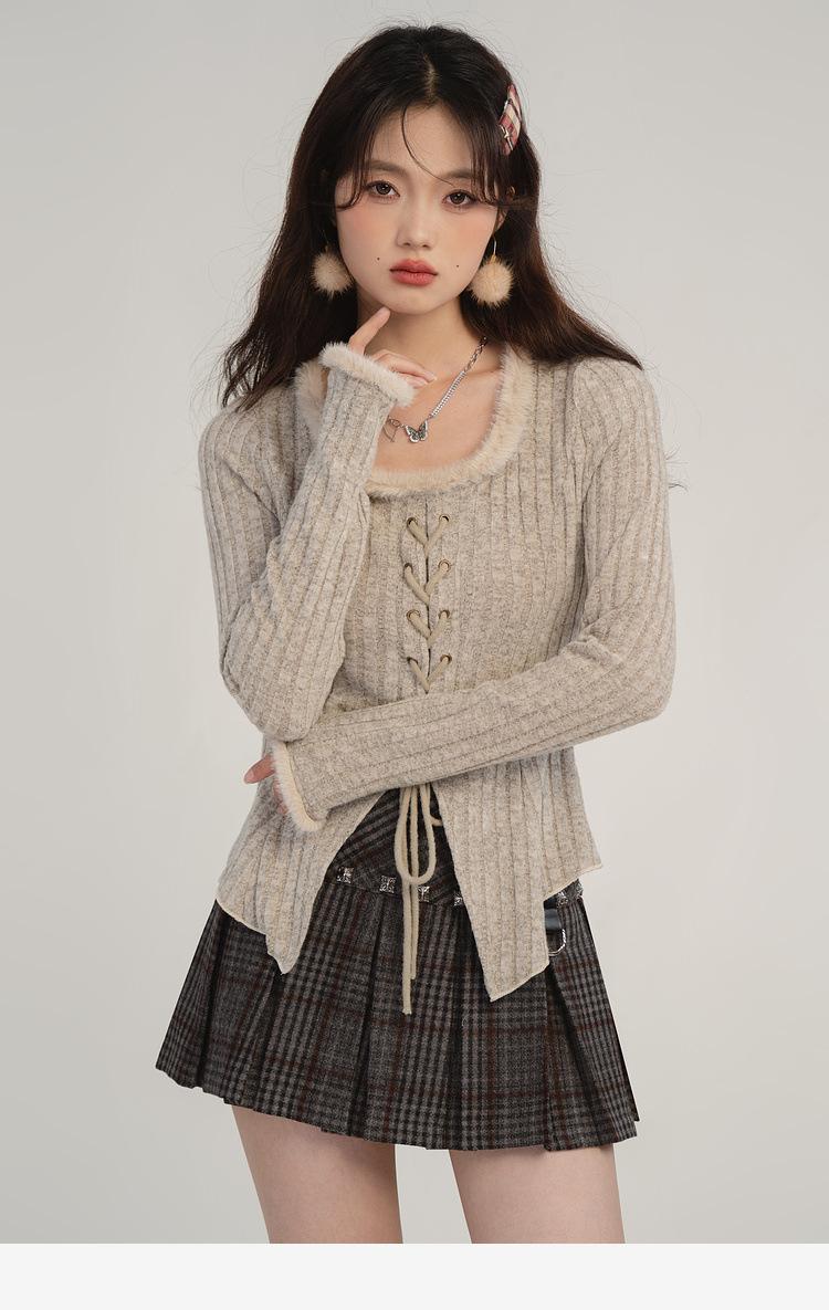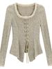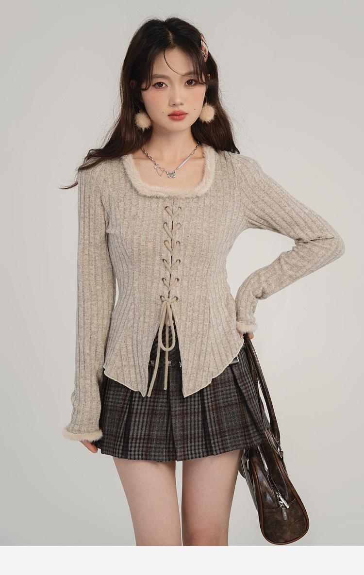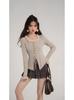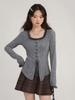 Camiseta de punto con tirantes y cuello cuadrado, otoño e invierno 2024, nuevo estilo francés, corte entallado, adelgazante, estilo Spice Girls, sexy, Pure Desire.