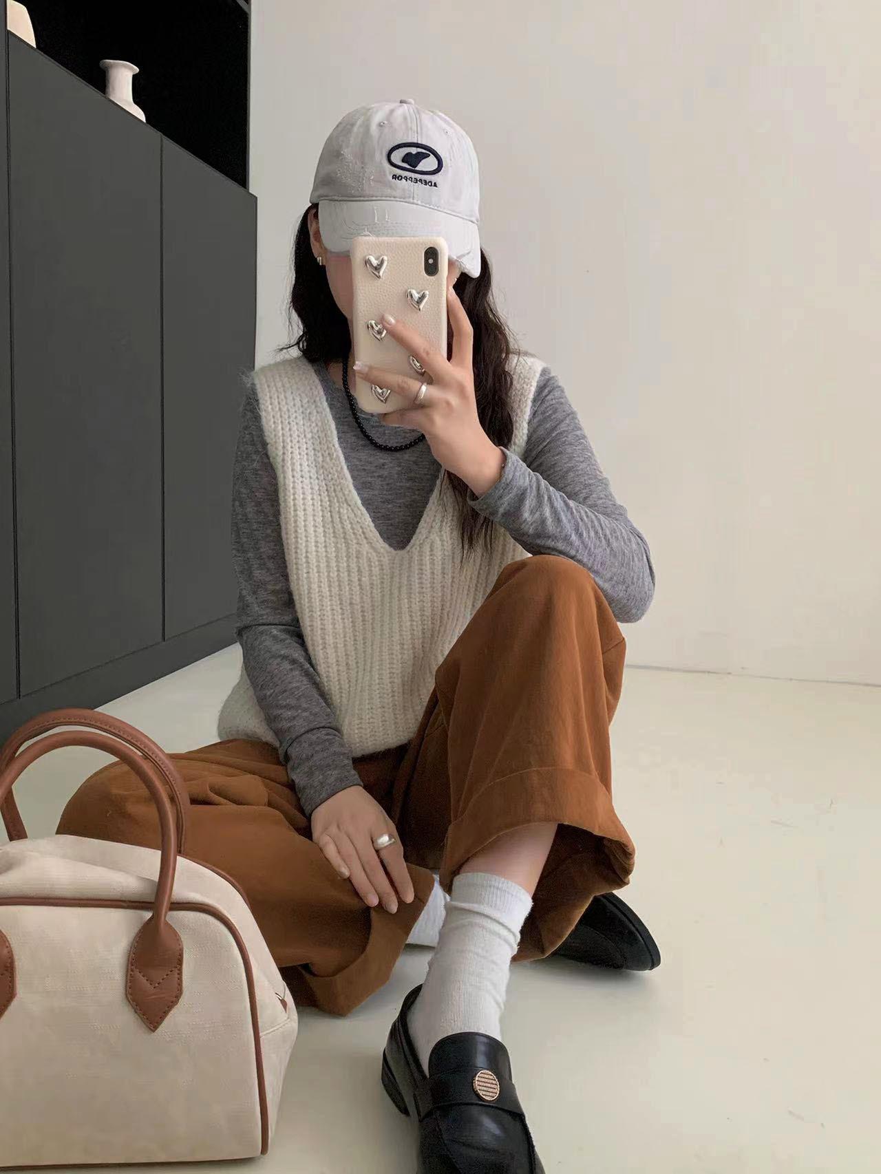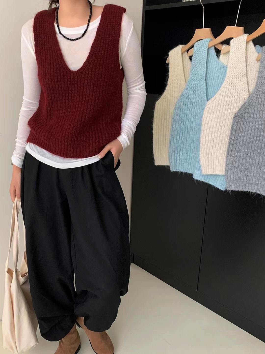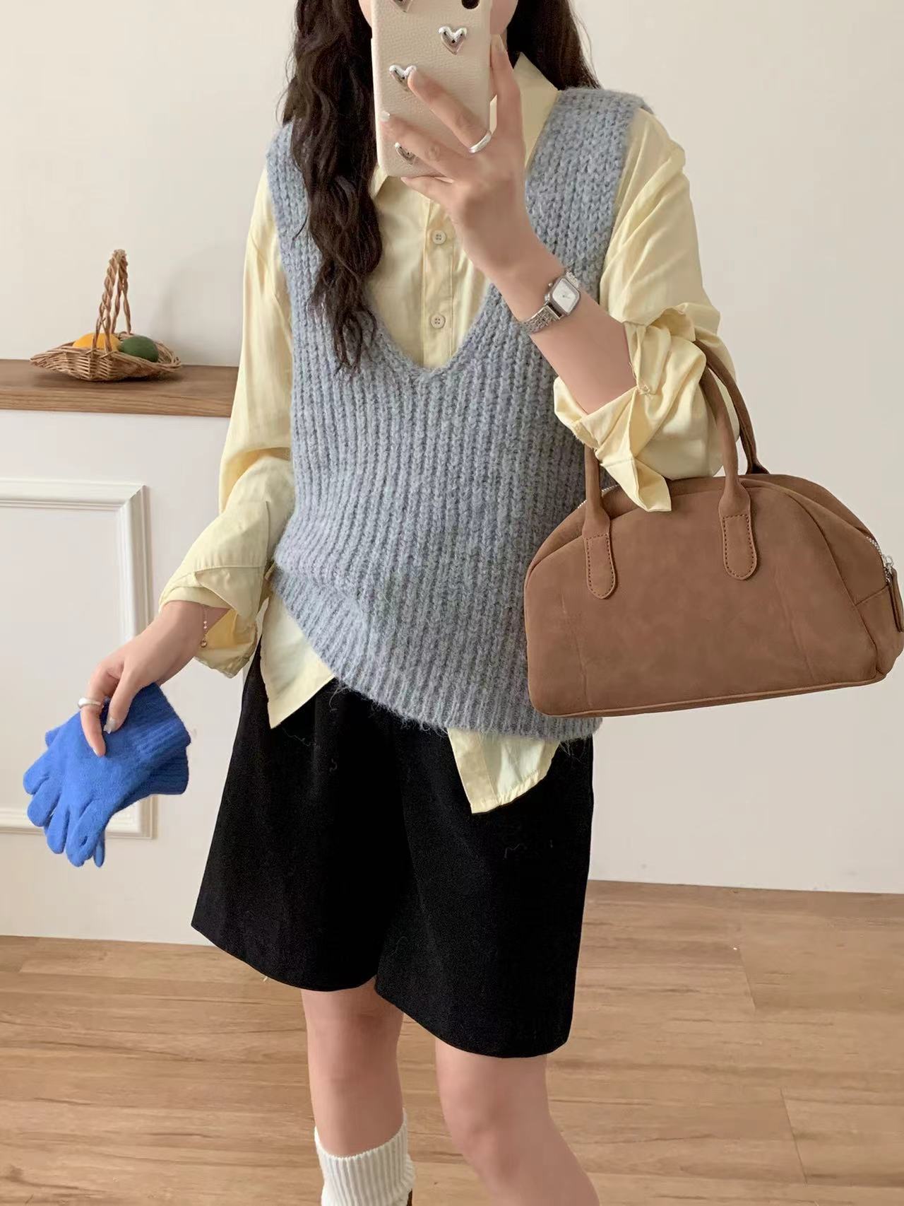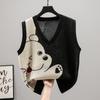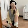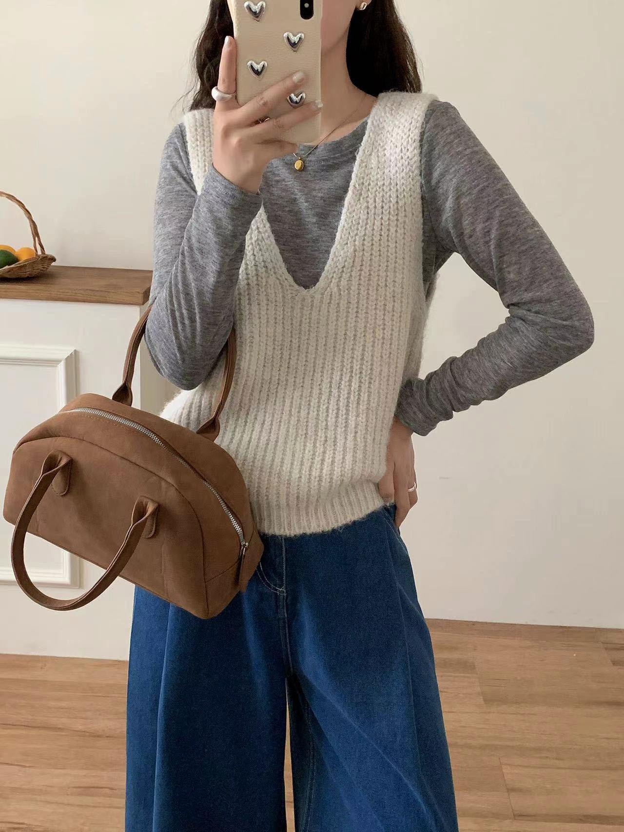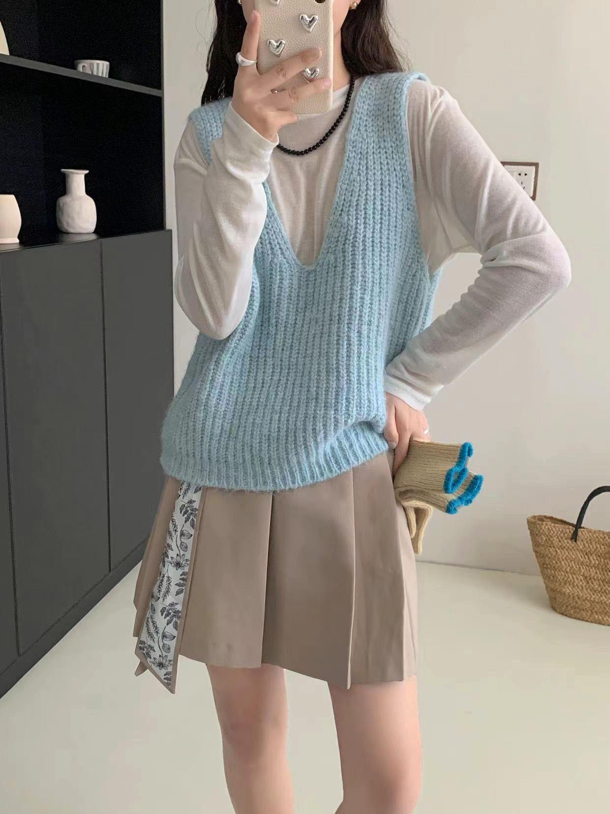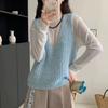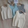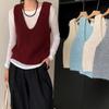 Chaleco de punto con cuello en V para mujer, jersey de color liso para principios de primavera, suave, informal, combinable, holgado, estilo coreano
