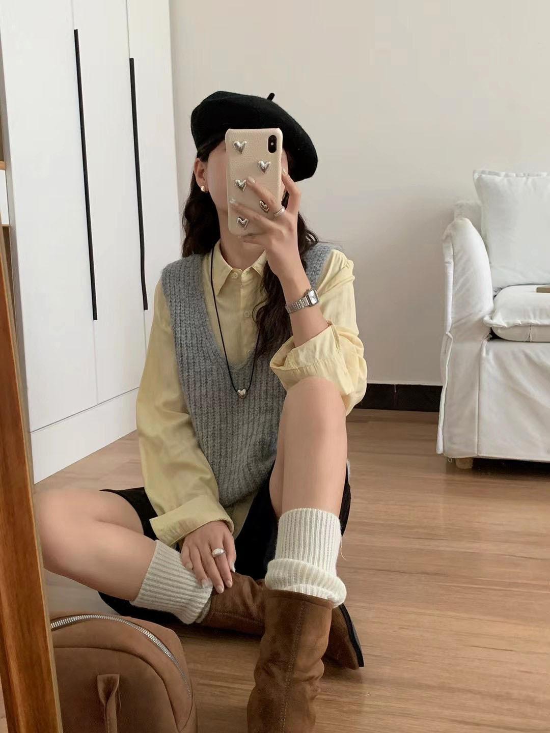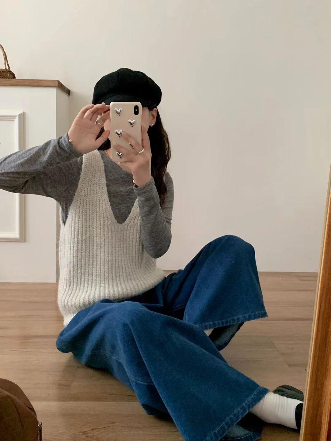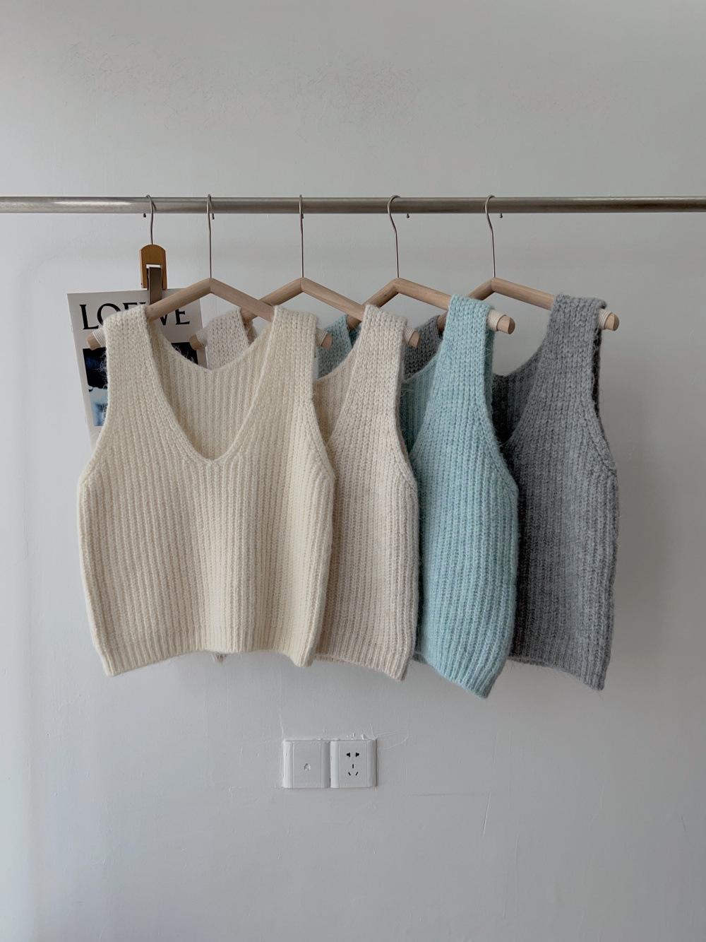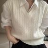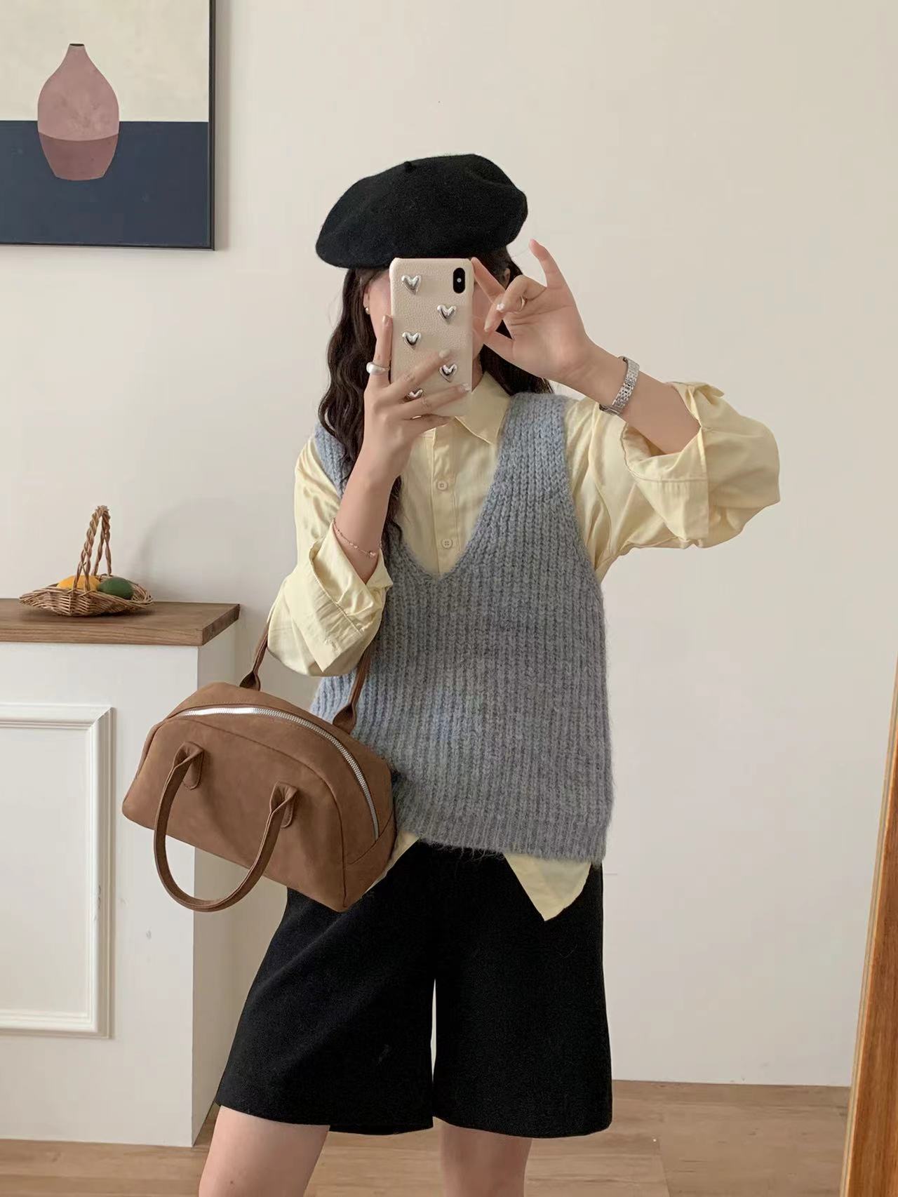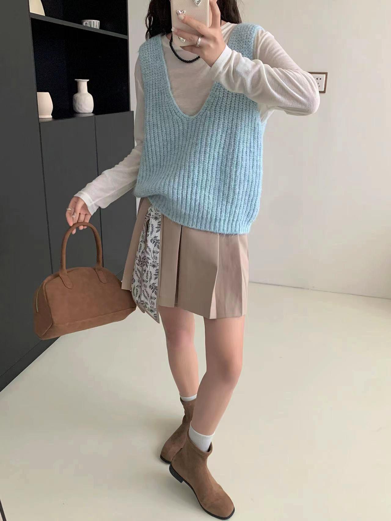 Chaleco de punto con cuello en V para mujer, jersey de color liso para principios de primavera, suave, informal, combinable, holgado, estilo coreano