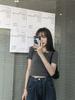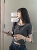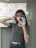Camiseta de verano 2024 con diseño de botones, cuello redondo, corte entallado y hombros descubiertos, estilo moderno y pequeño, Pure Desire.