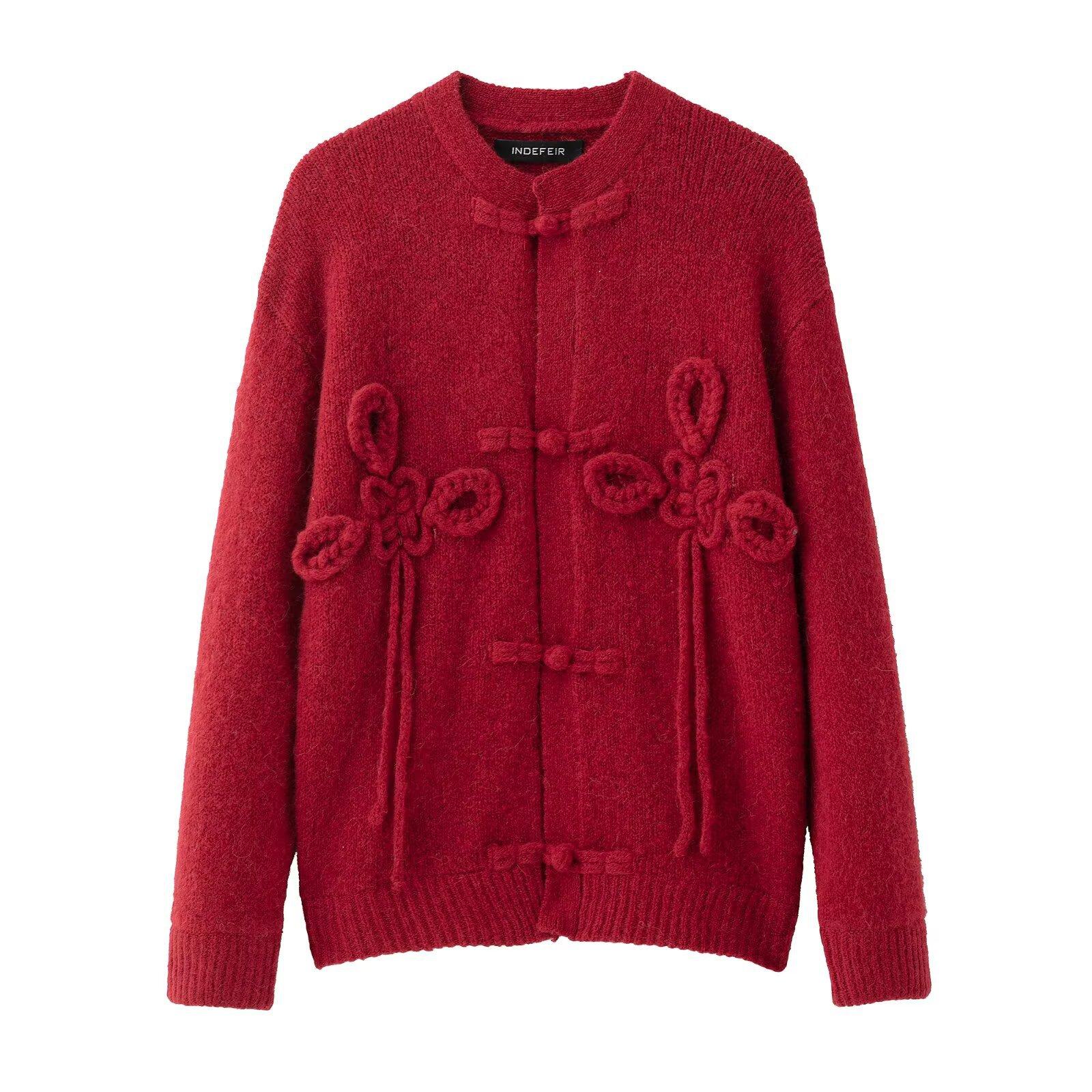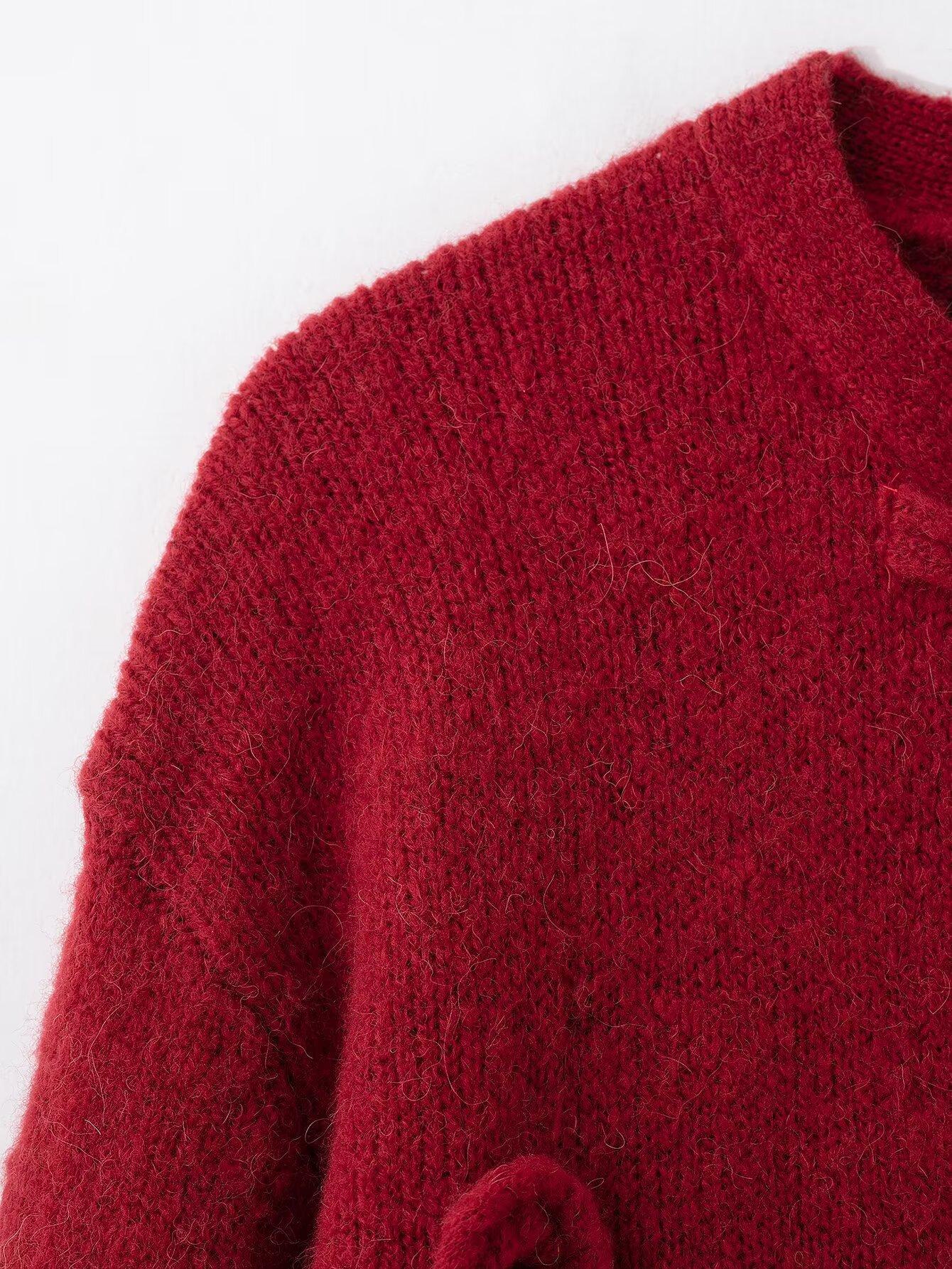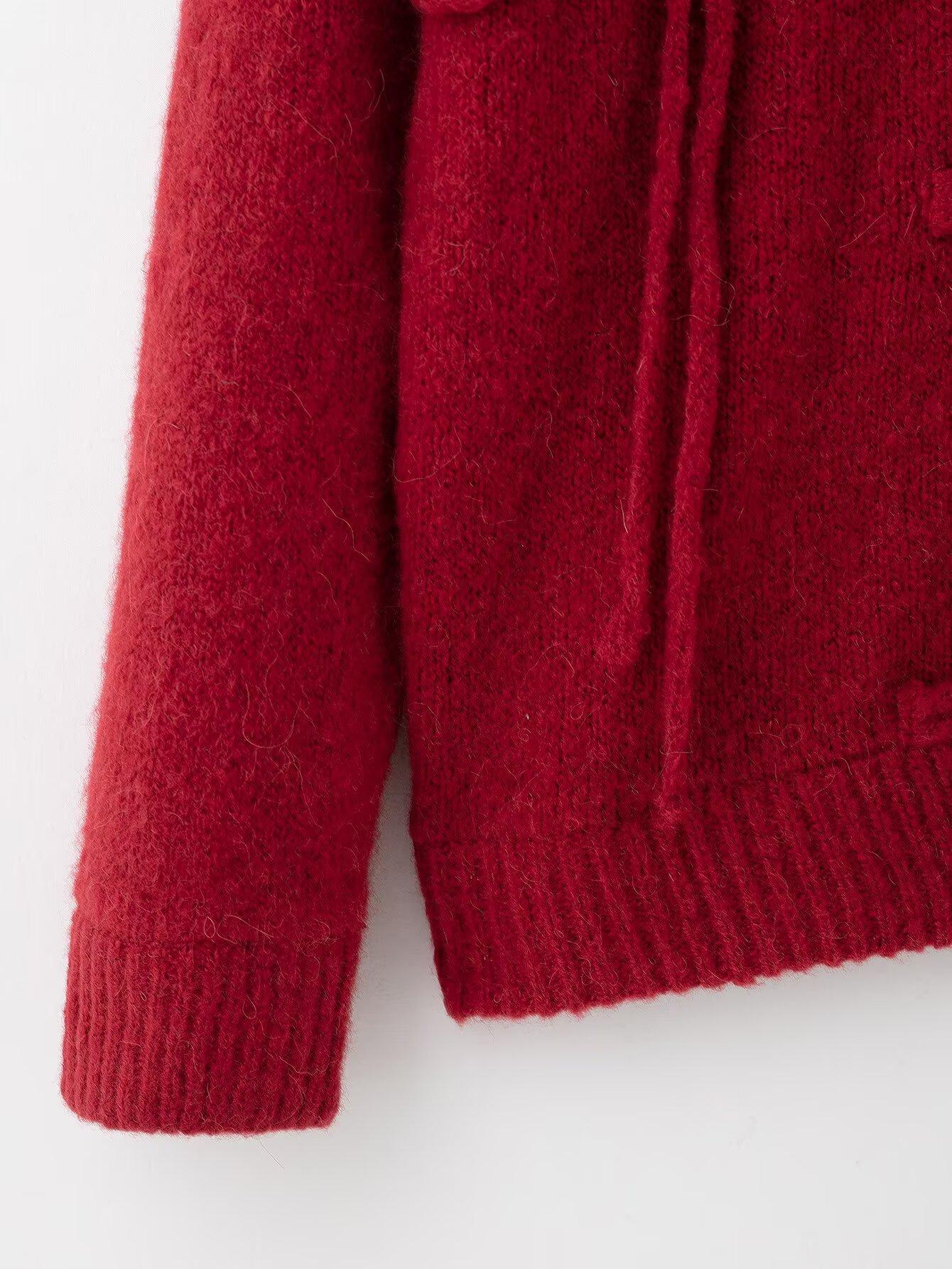 Comercio exterior al por mayor, estilo europeo y americano 2025, nuevo abrigo cárdigan de punto con cuello redondo y nudo de cuerda para mujer