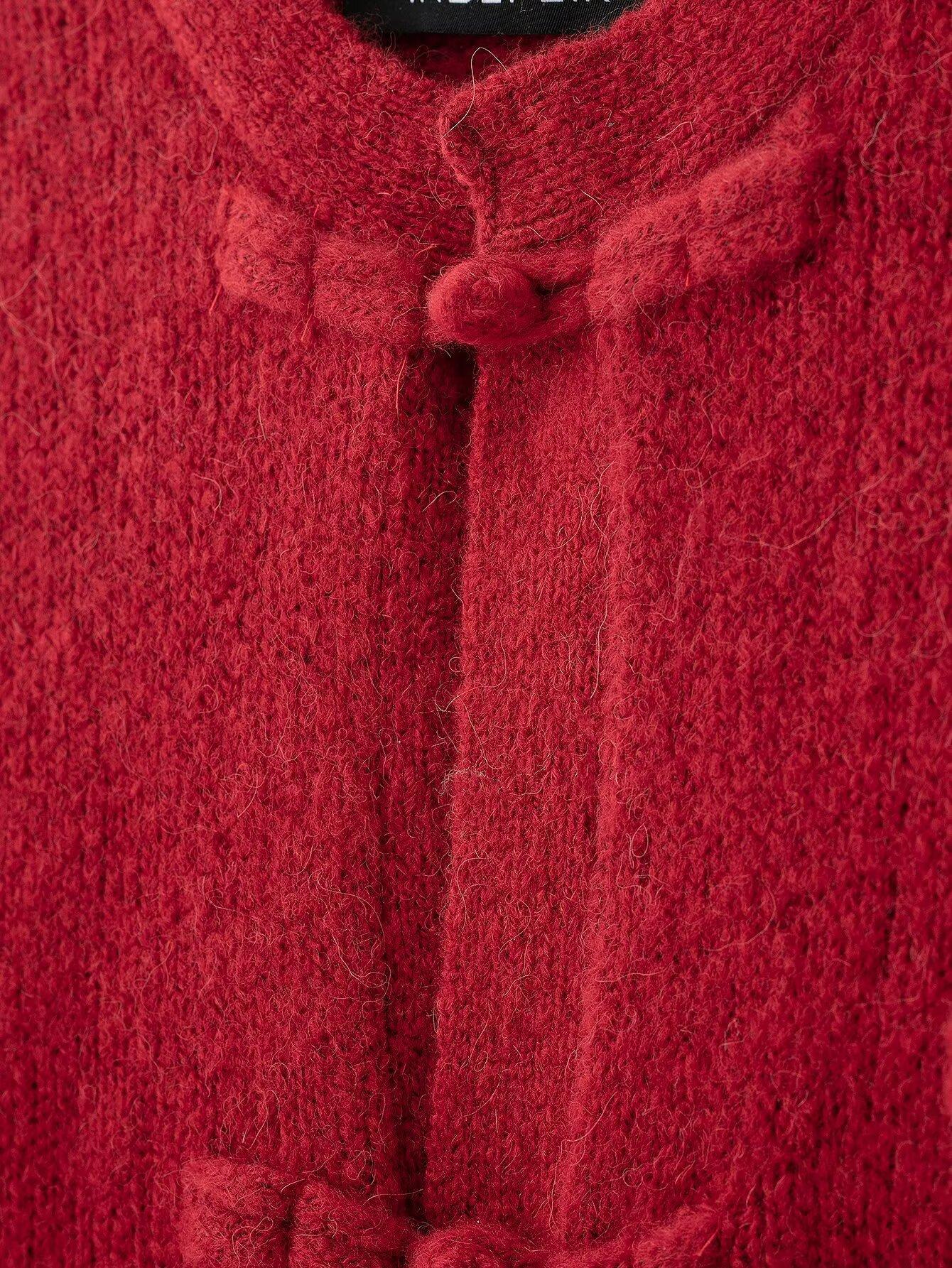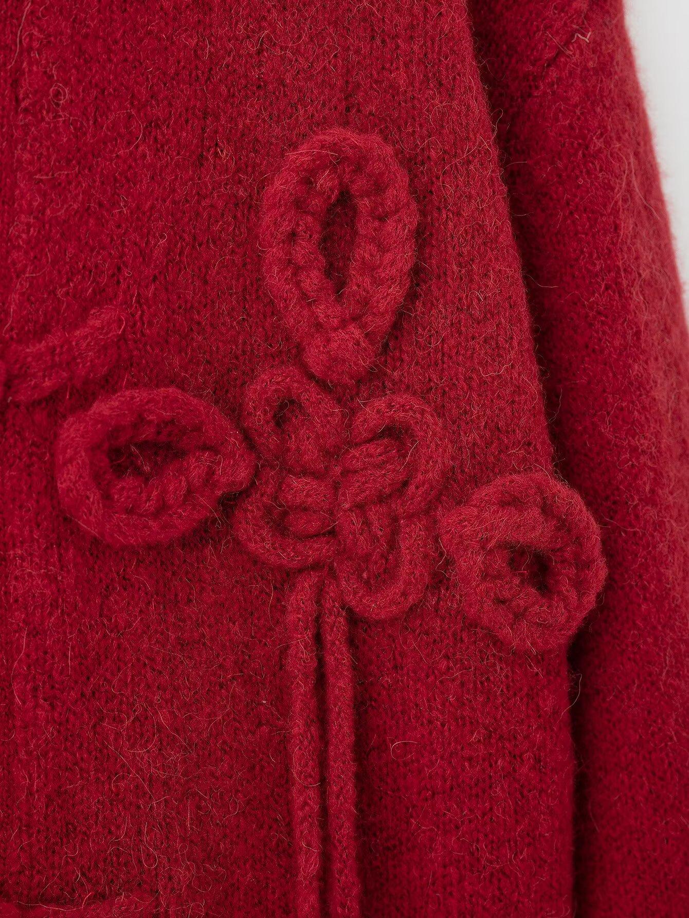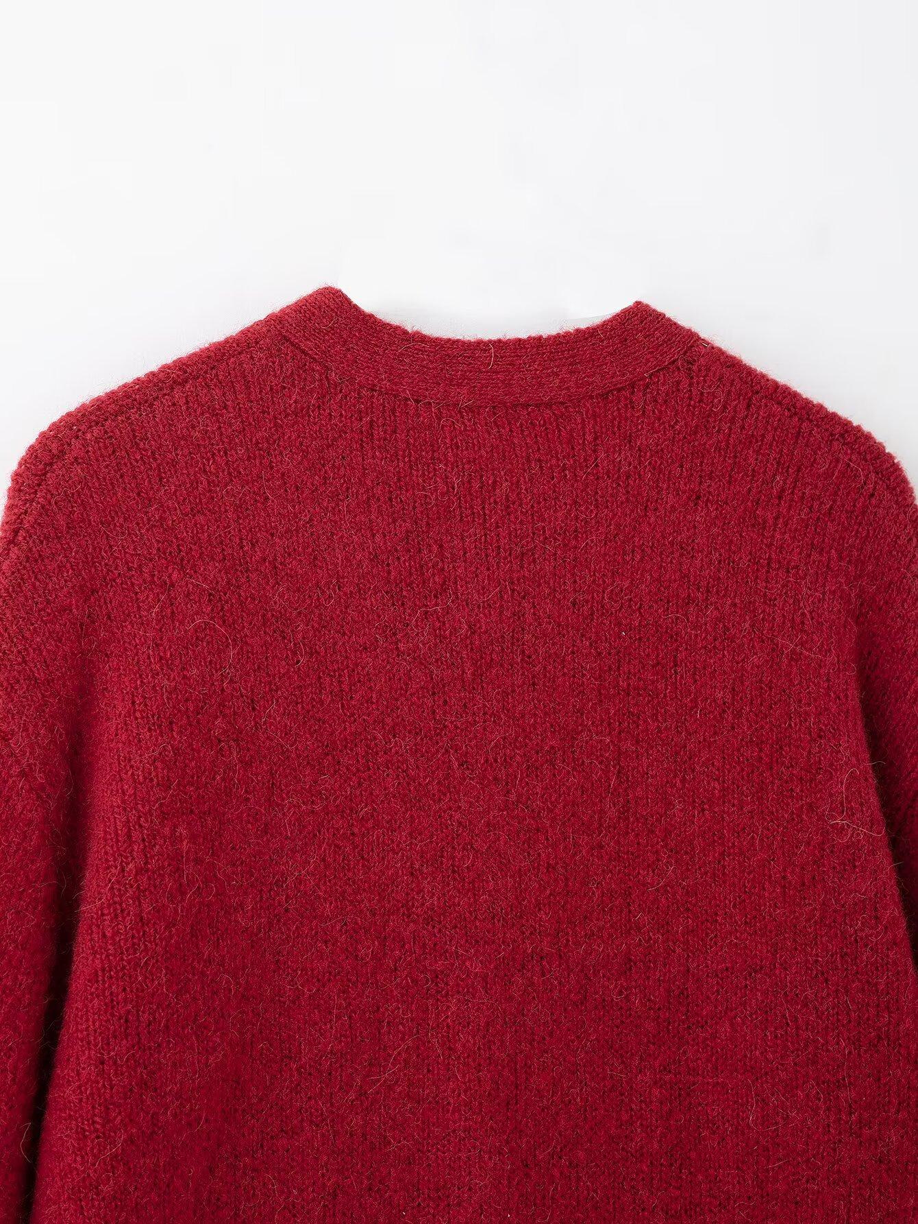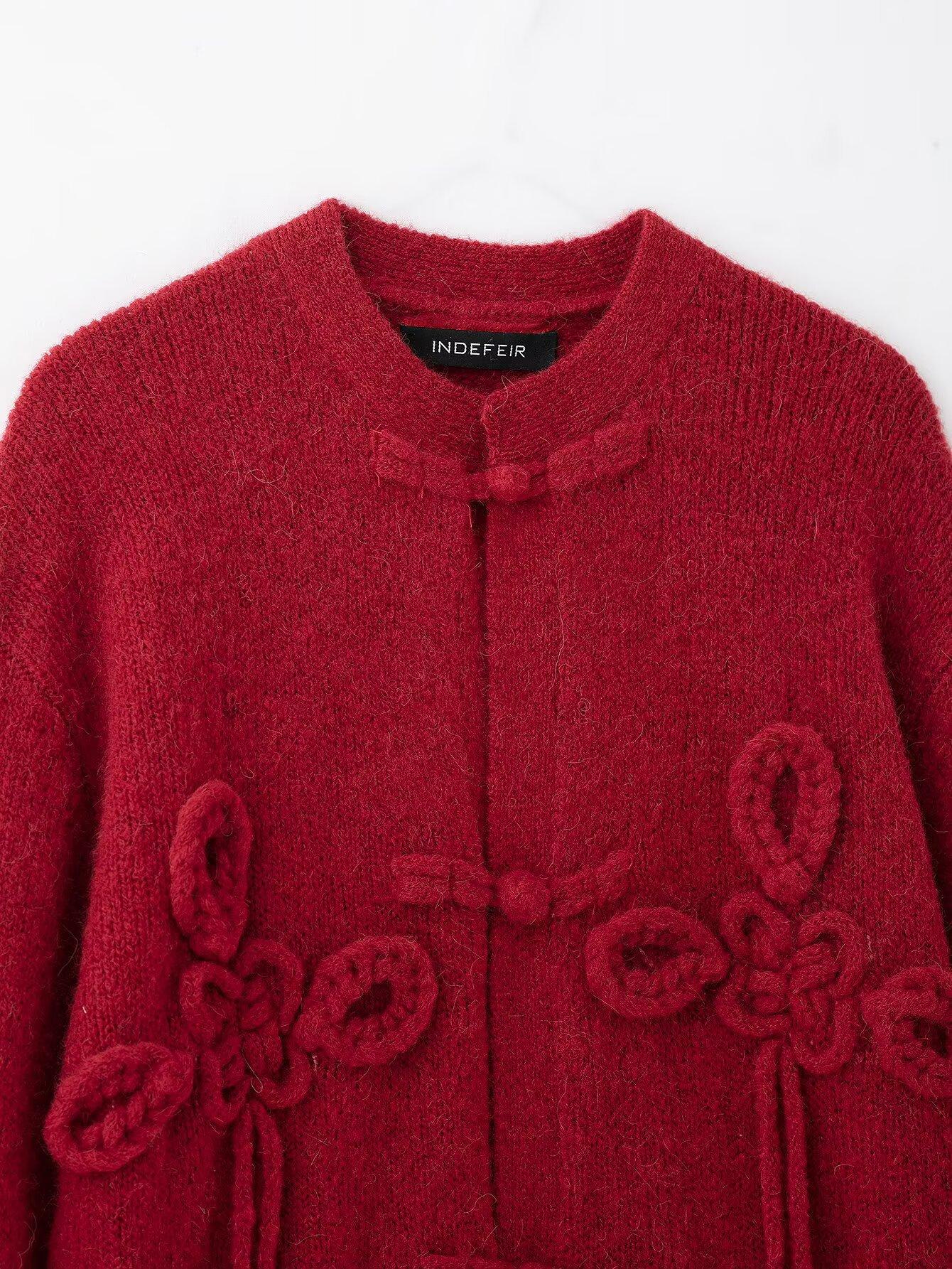 Comercio exterior al por mayor, estilo europeo y americano 2025, nuevo abrigo cárdigan de punto con cuello redondo y nudo de cuerda para mujer