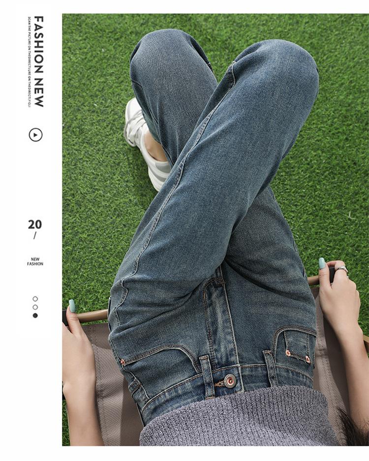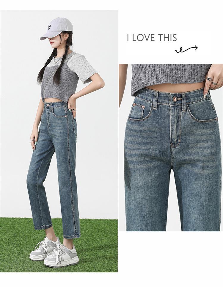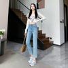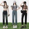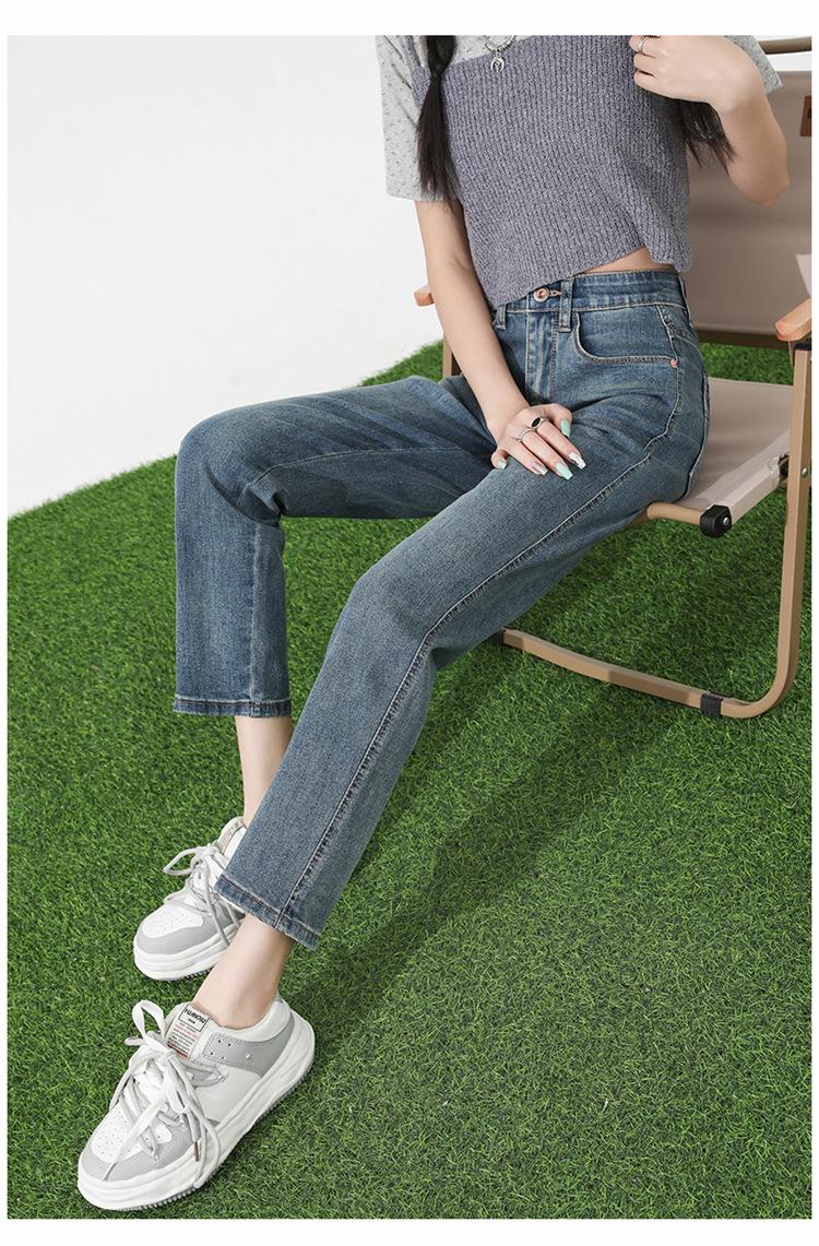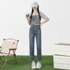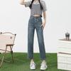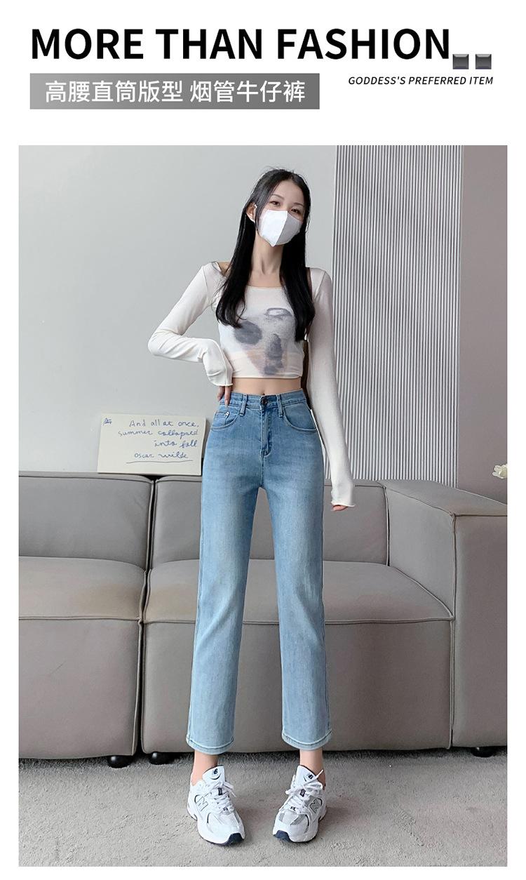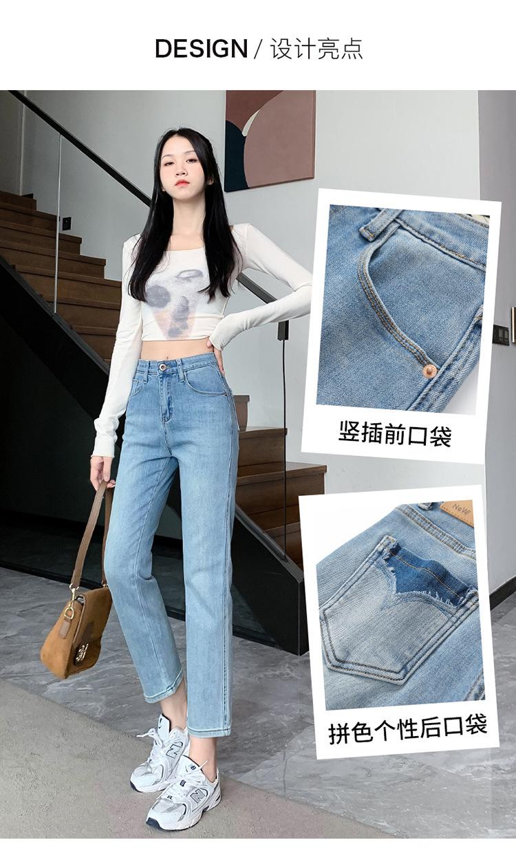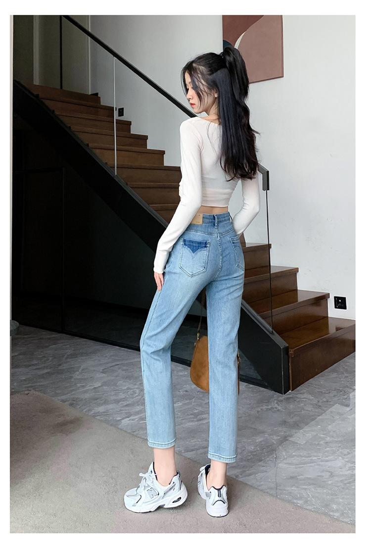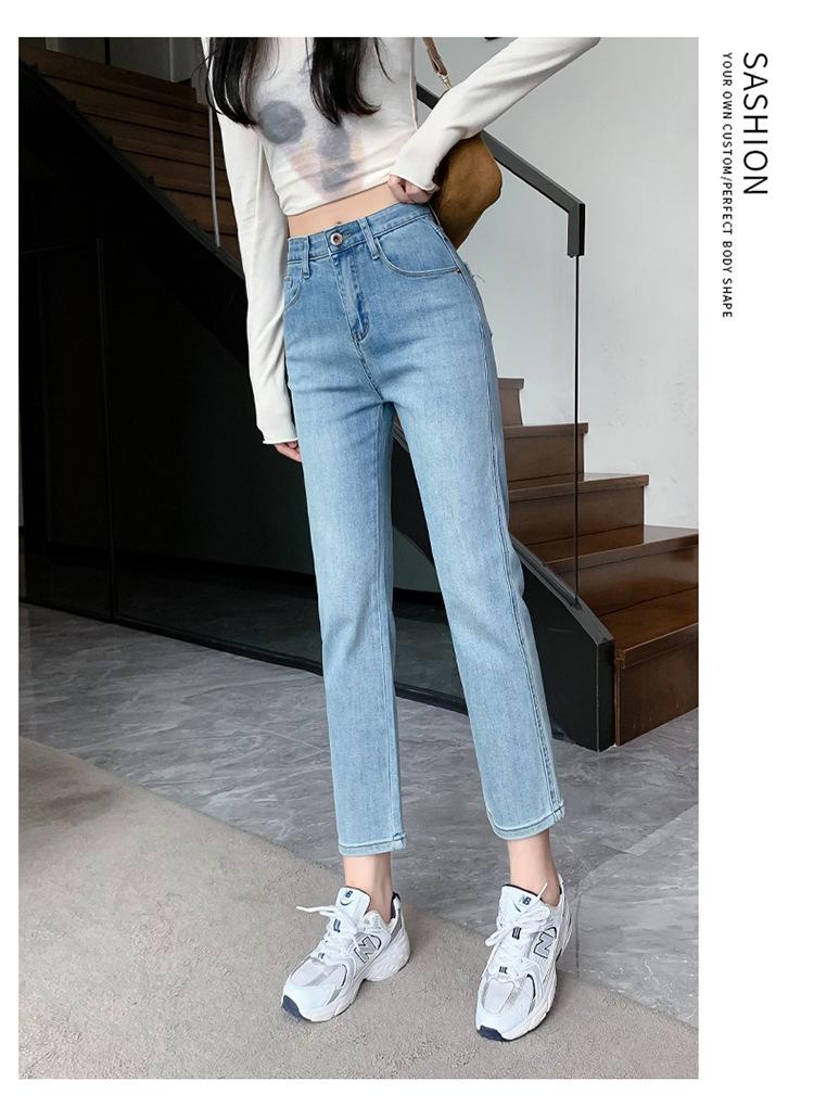 Pantalones vaqueros elásticos de cintura alta para mujer, de ocho y nueve puntos, de otoño, rectos y pequeños, color azul claro, 2025
