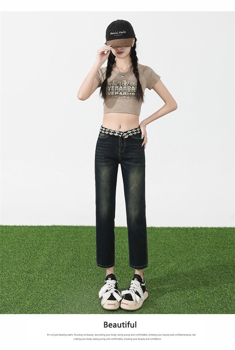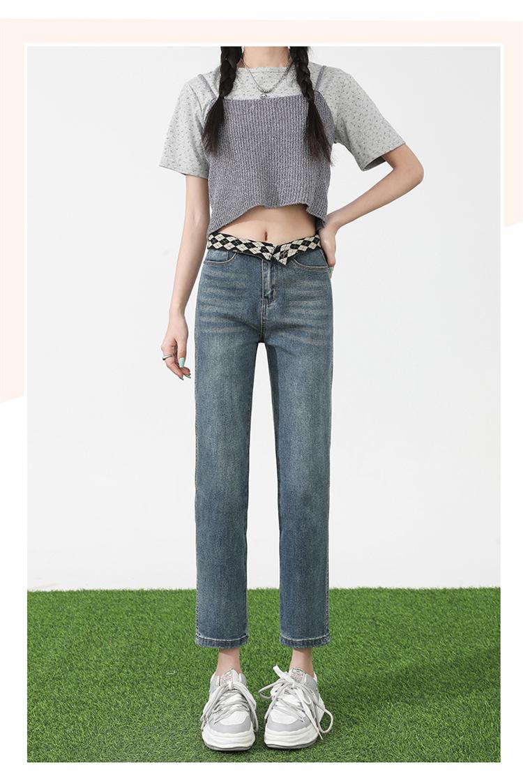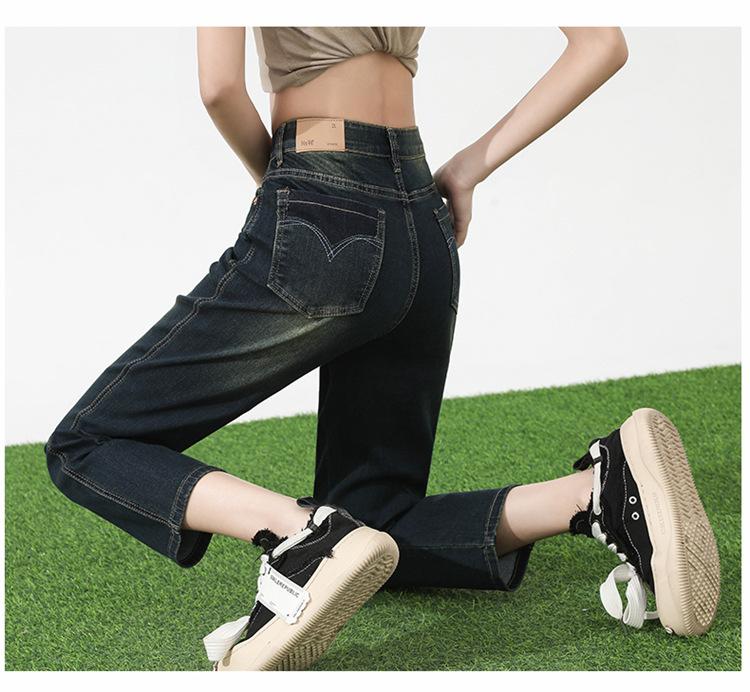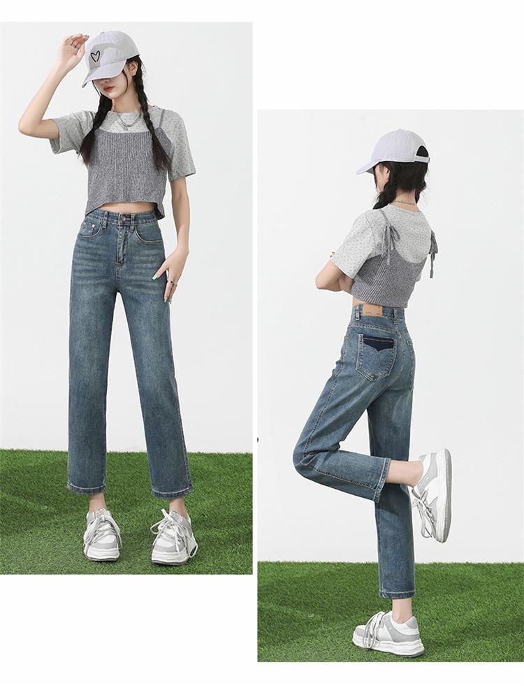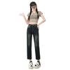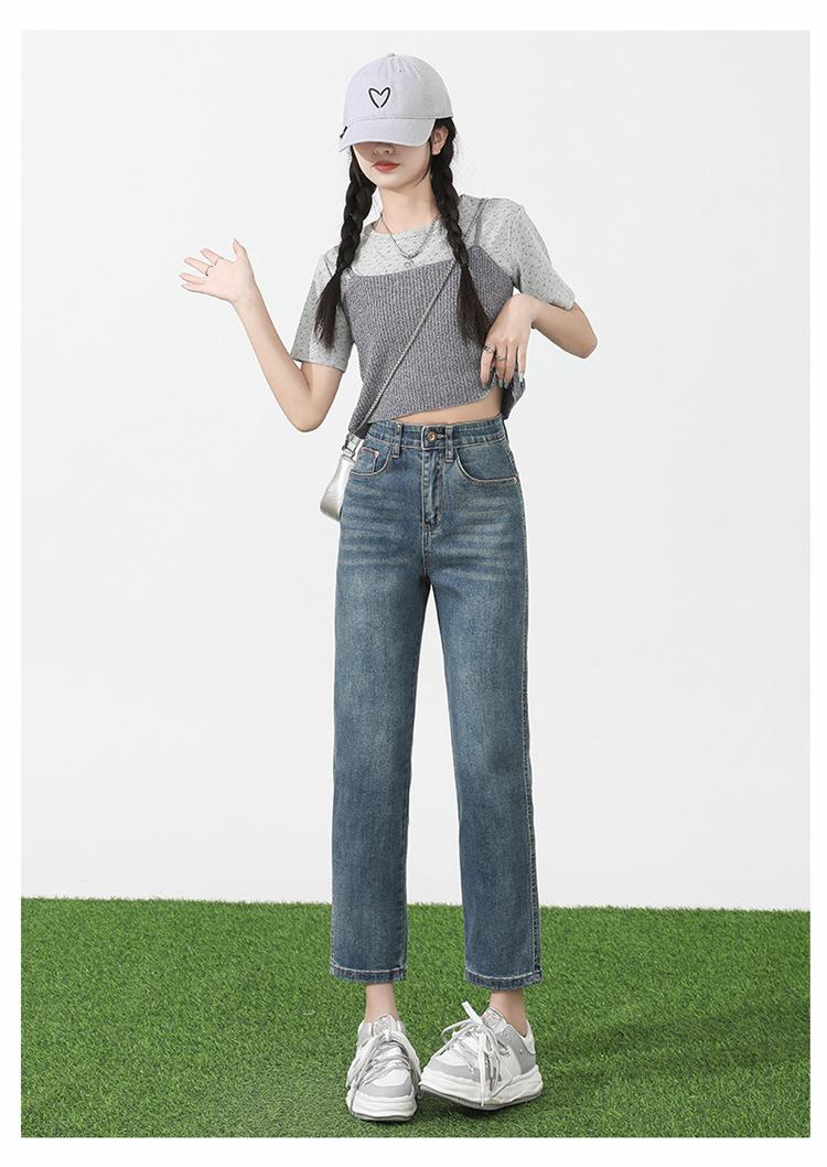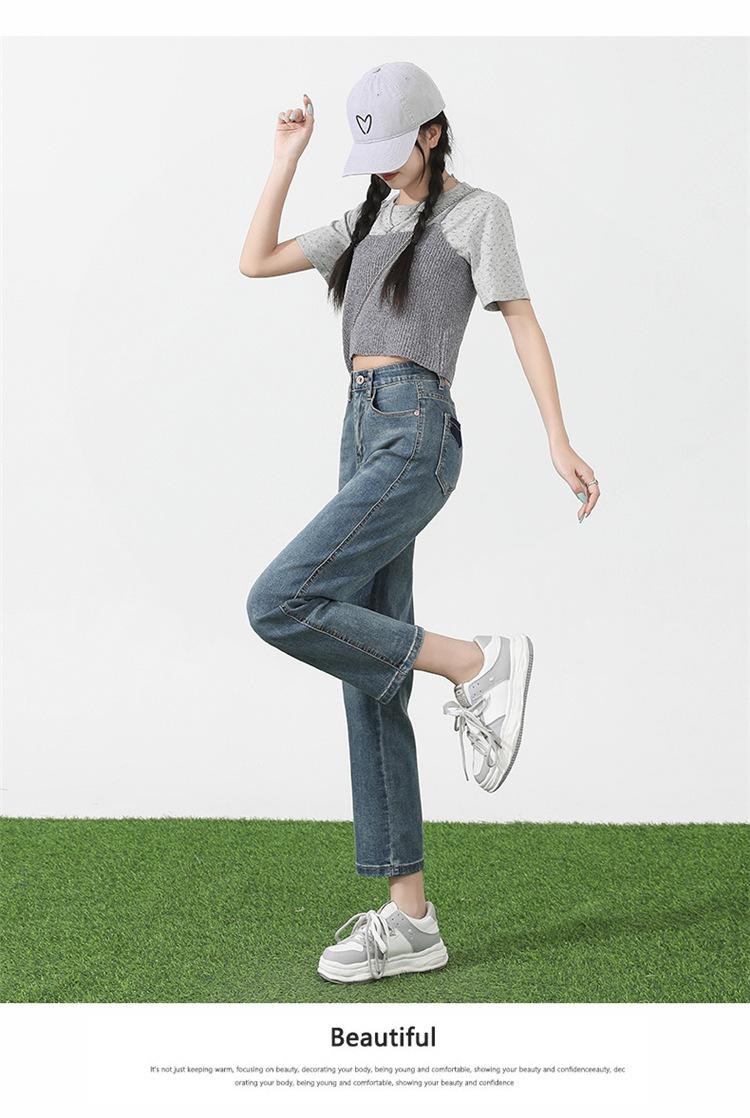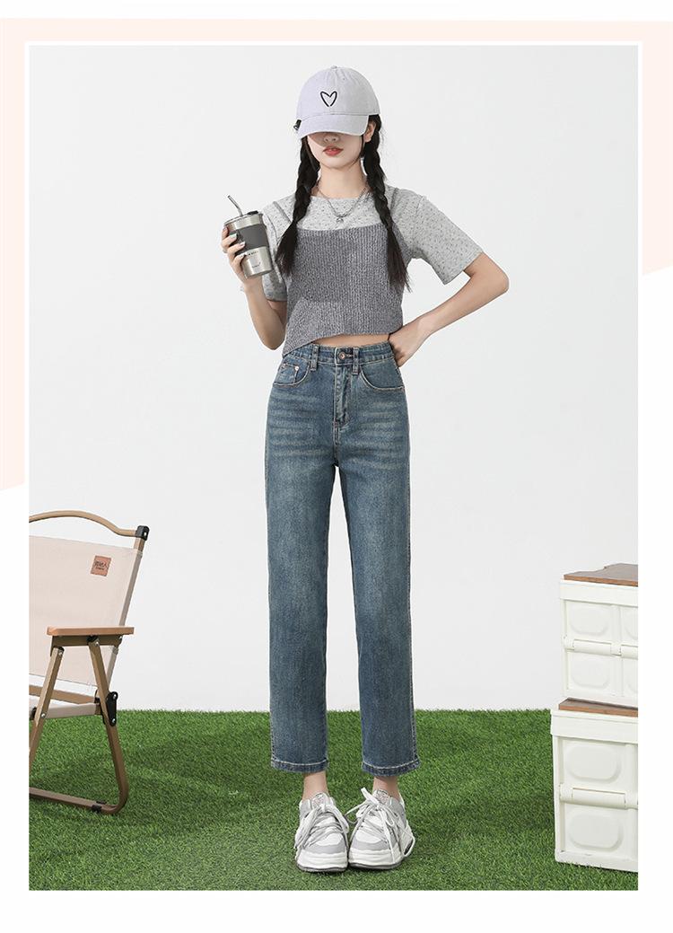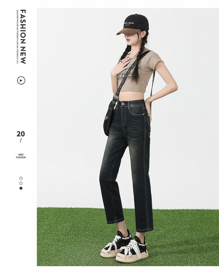 Pantalones vaqueros elásticos de cintura alta para mujer, de ocho y nueve puntos, de otoño, rectos y pequeños, color azul claro, 2025
