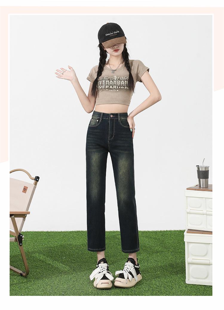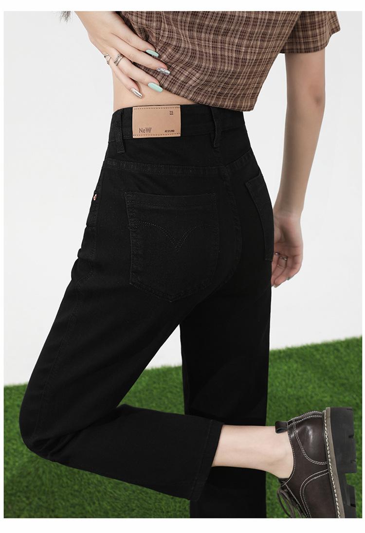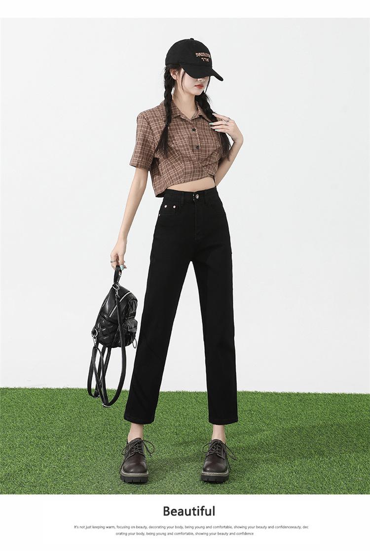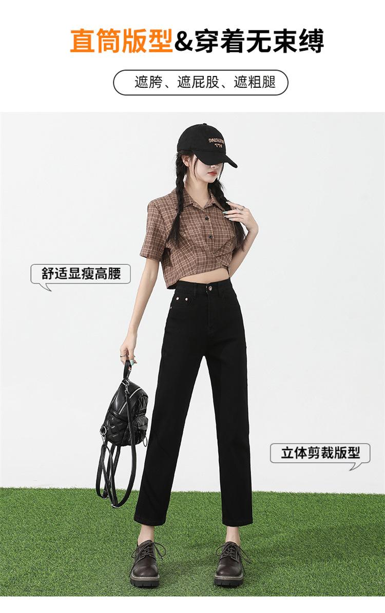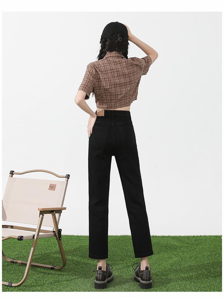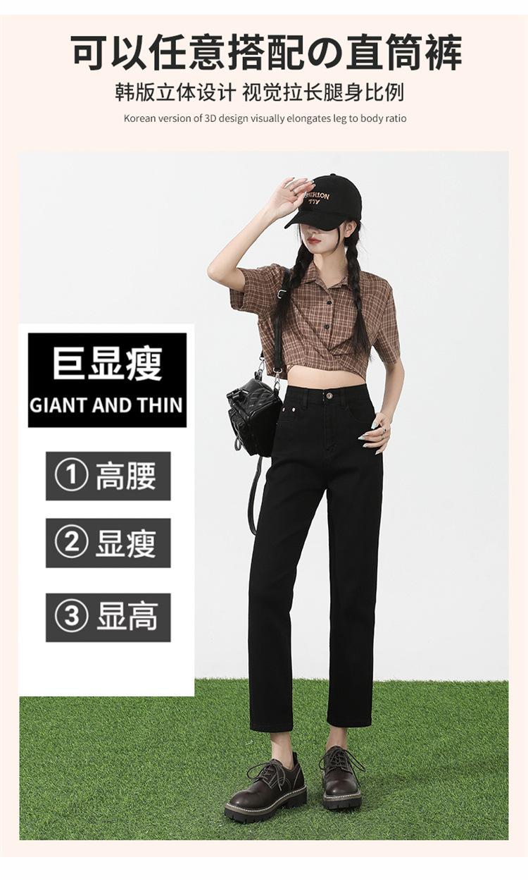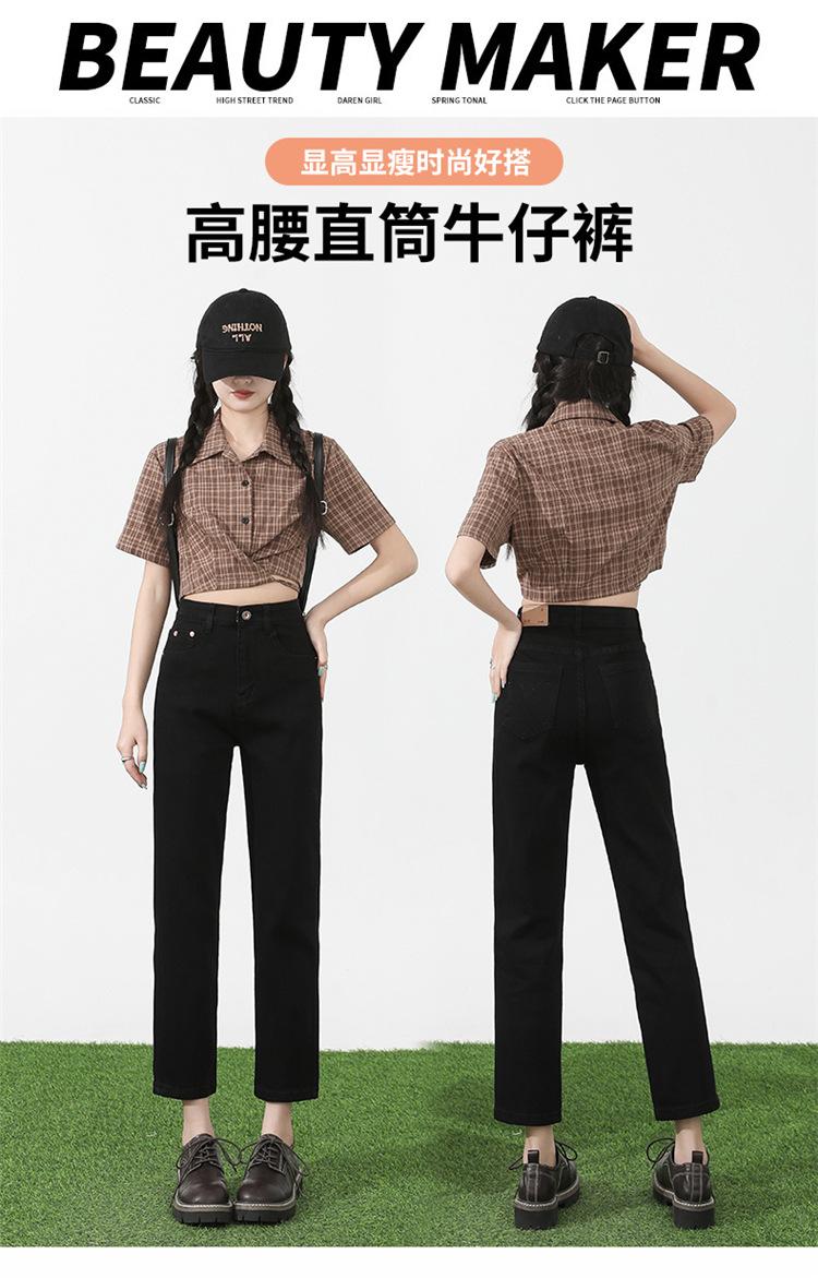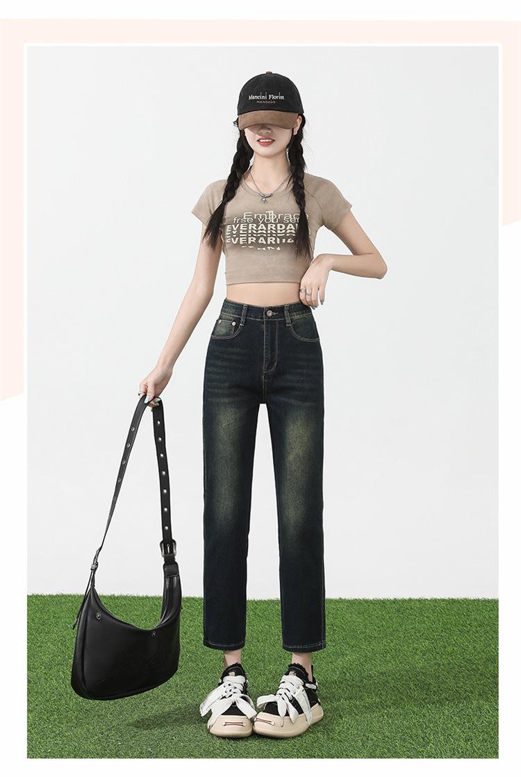 Pantalones vaqueros elásticos de cintura alta para mujer, de ocho y nueve puntos, de otoño, rectos y pequeños, color azul claro, 2025