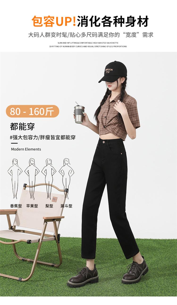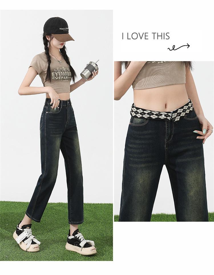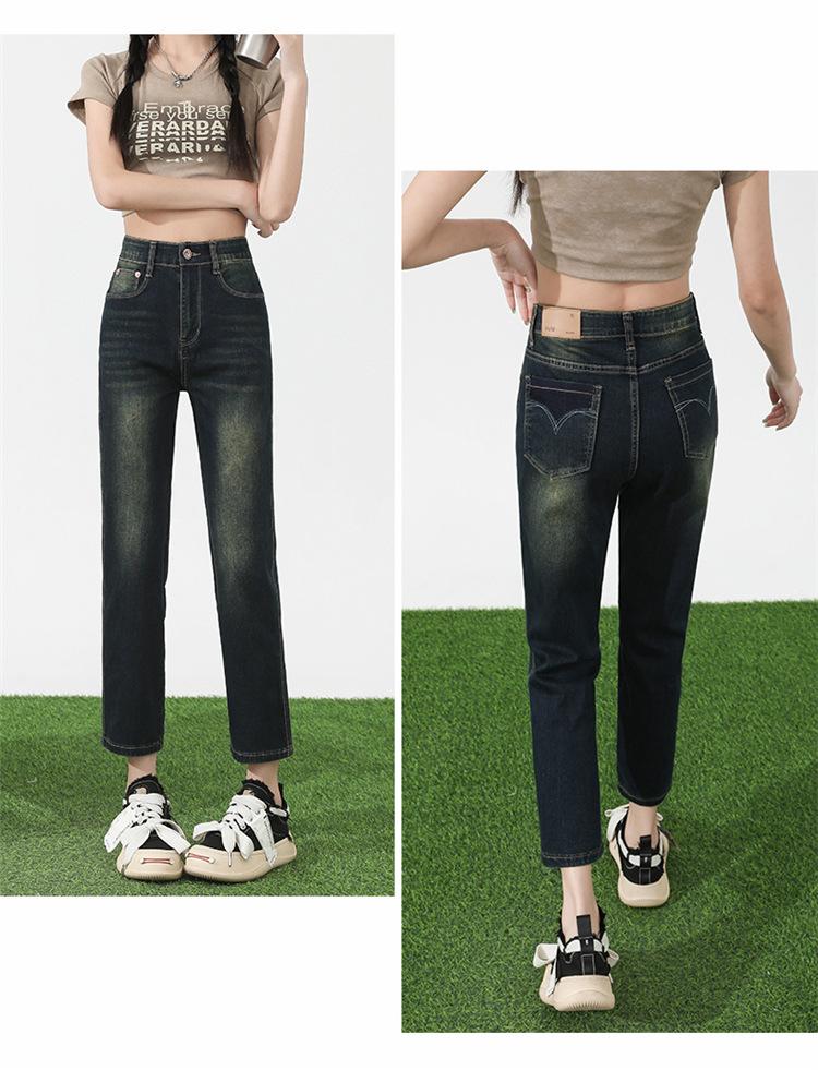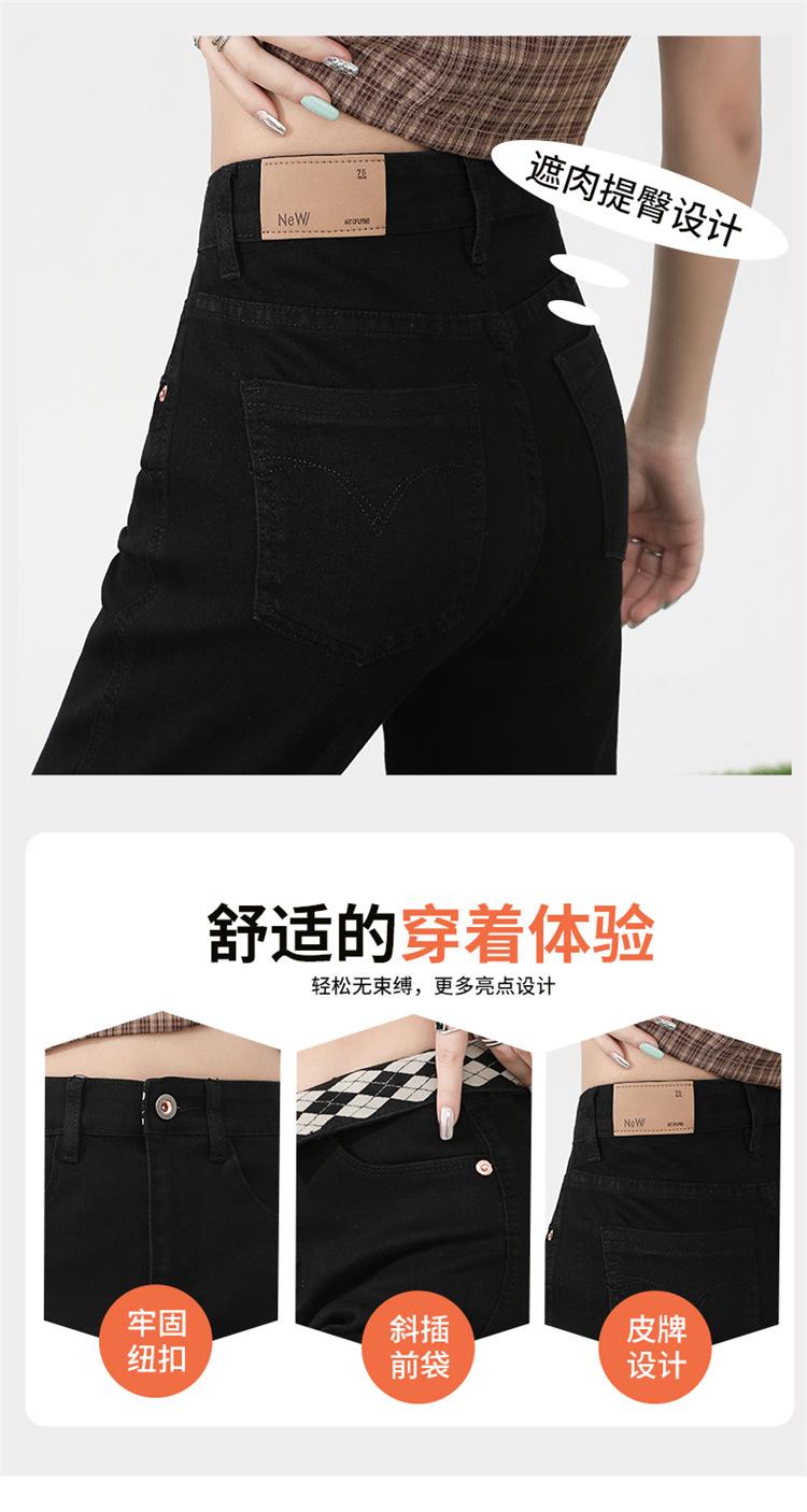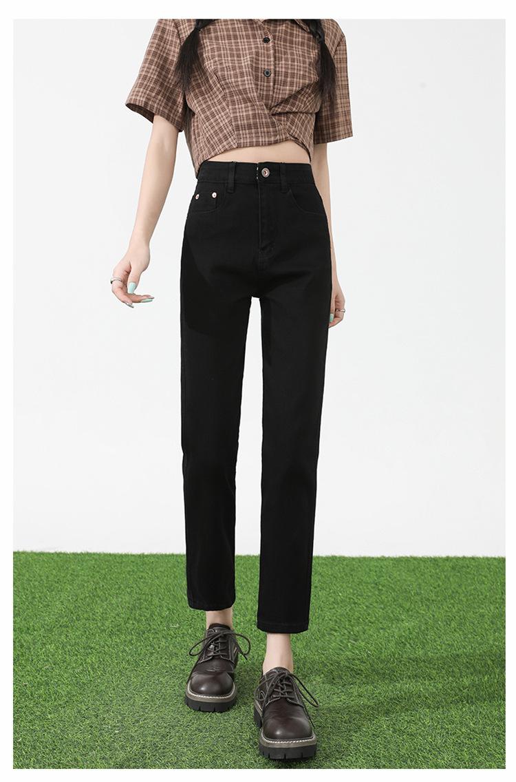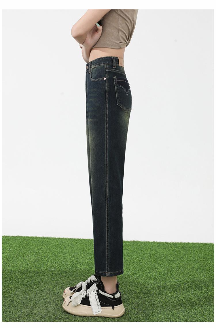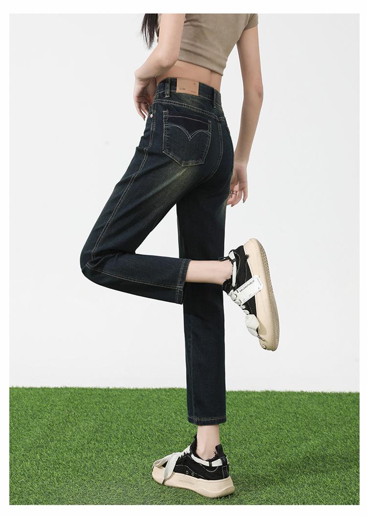 Pantalones vaqueros elásticos de cintura alta para mujer, de ocho y nueve puntos, de otoño, rectos y pequeños, color azul claro, 2025