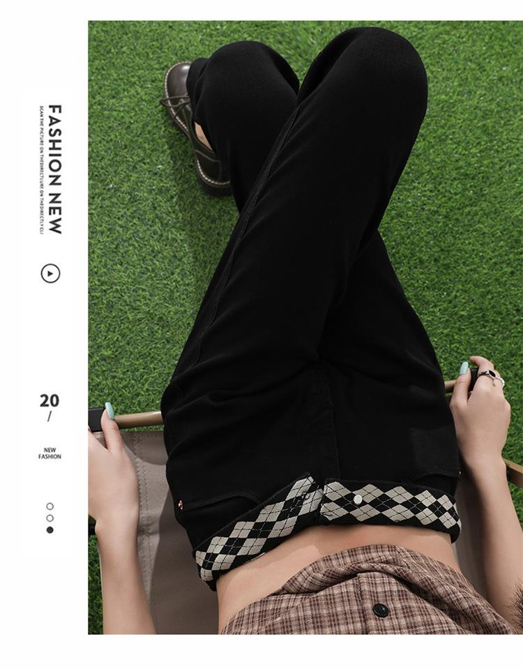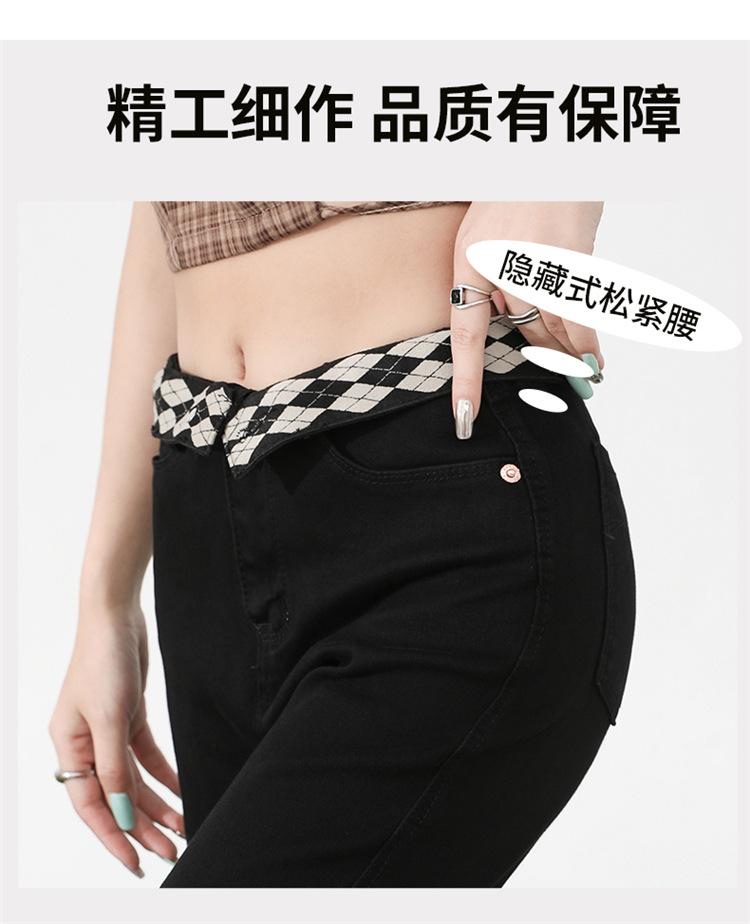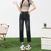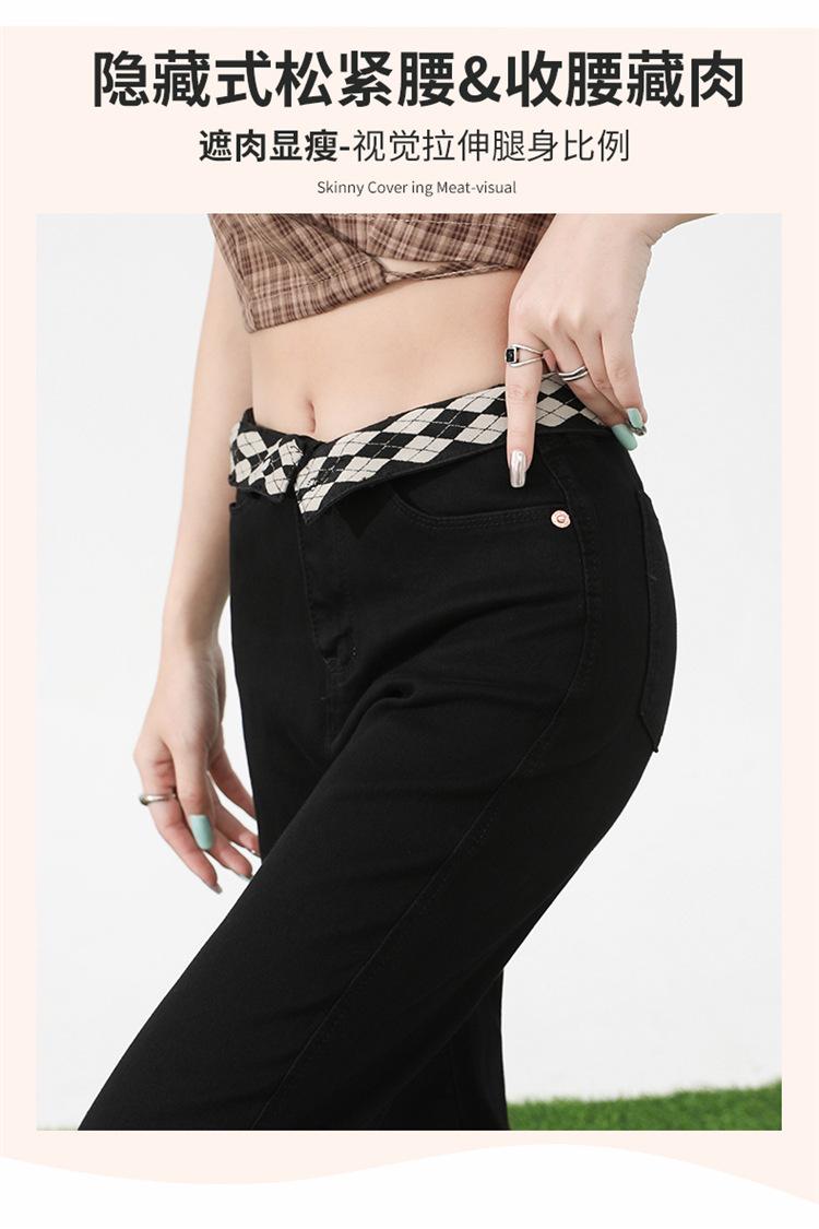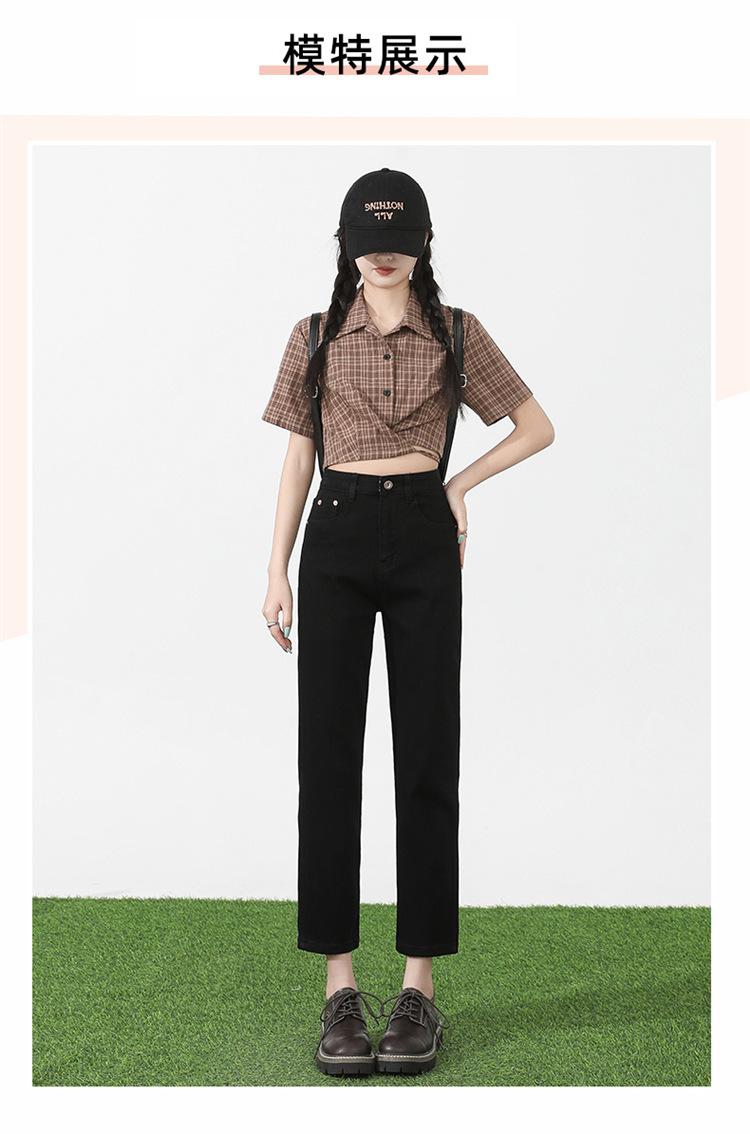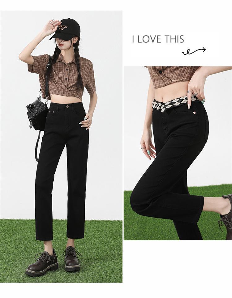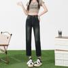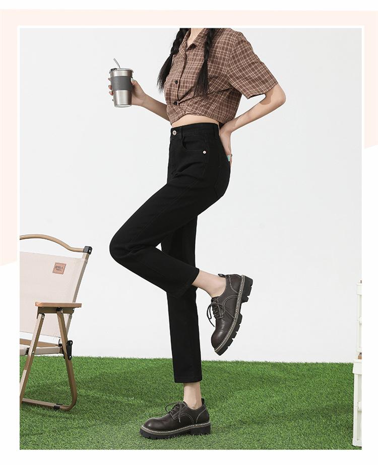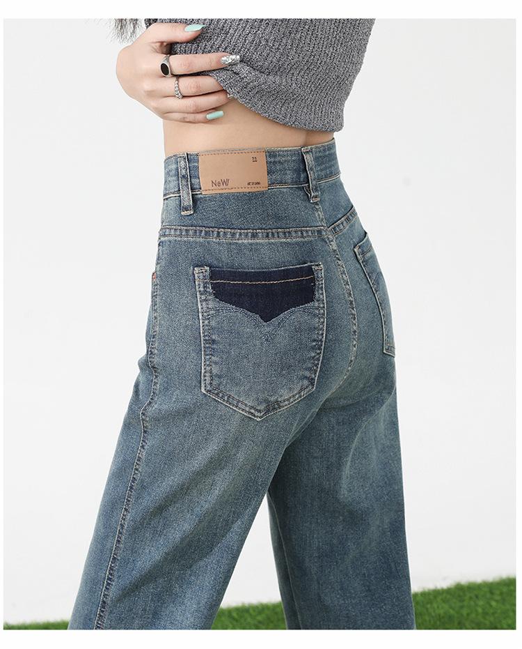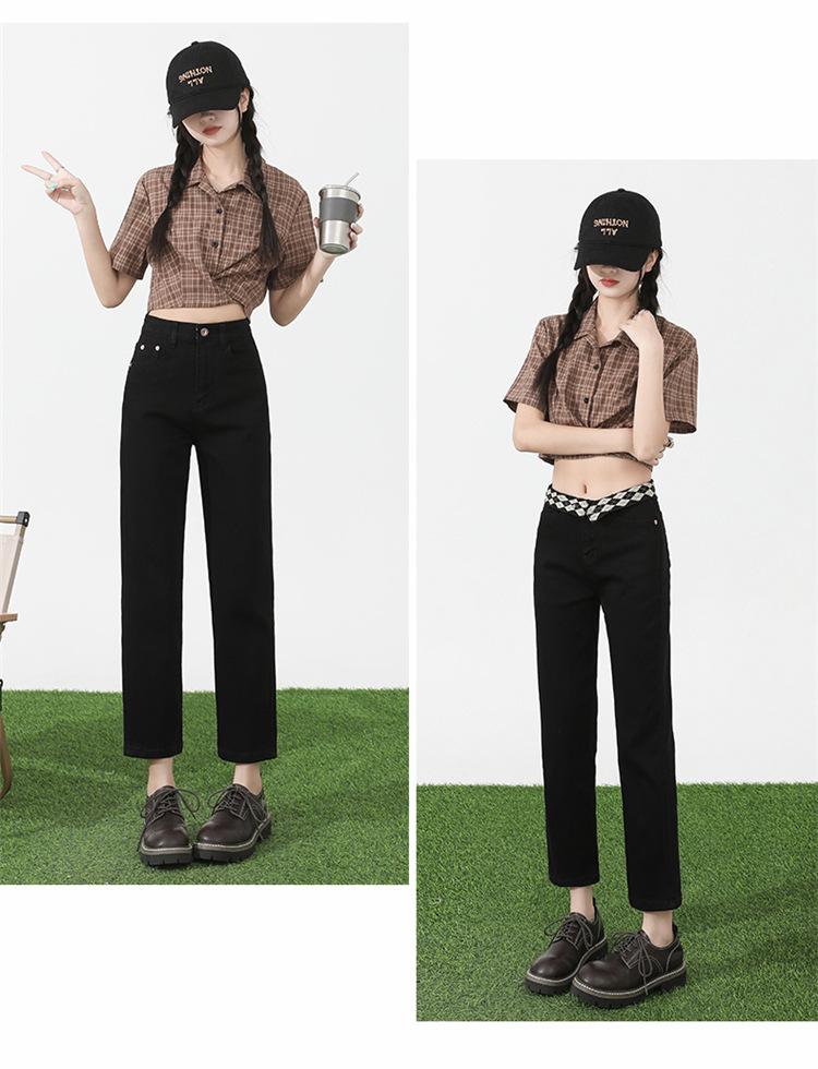 Pantalones vaqueros elásticos de cintura alta para mujer, de ocho y nueve puntos, de otoño, rectos y pequeños, color azul claro, 2025