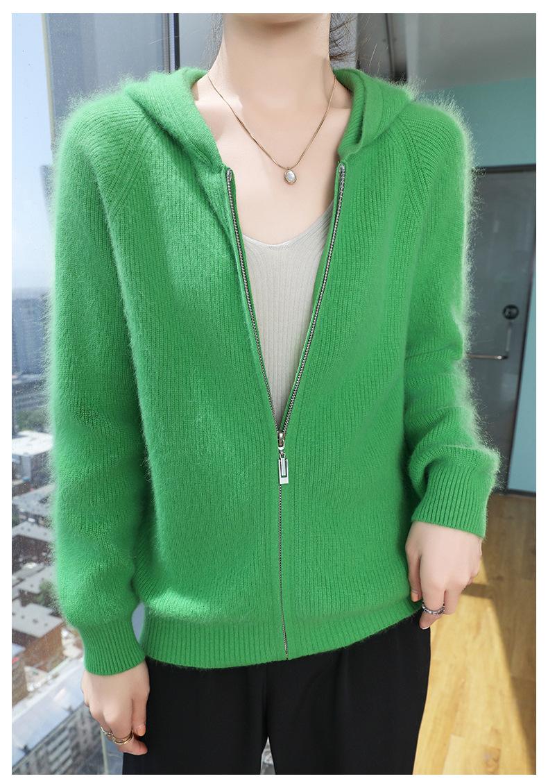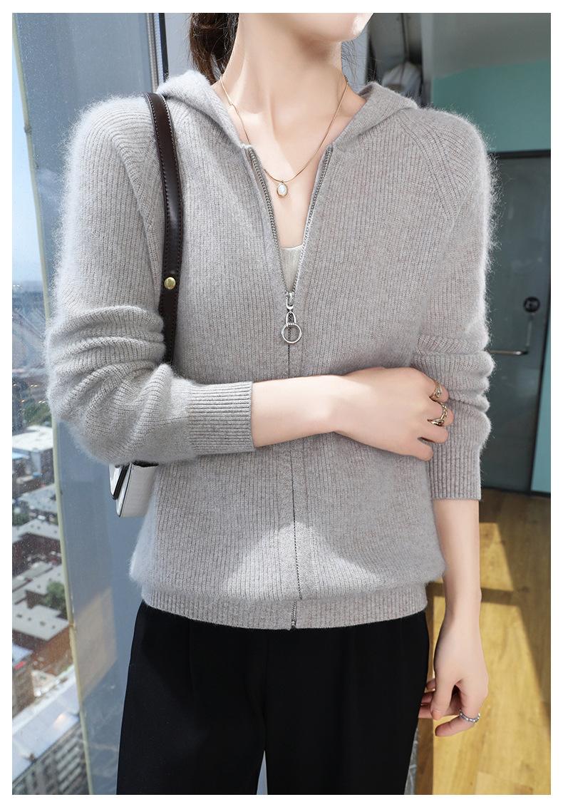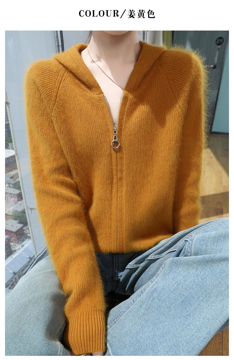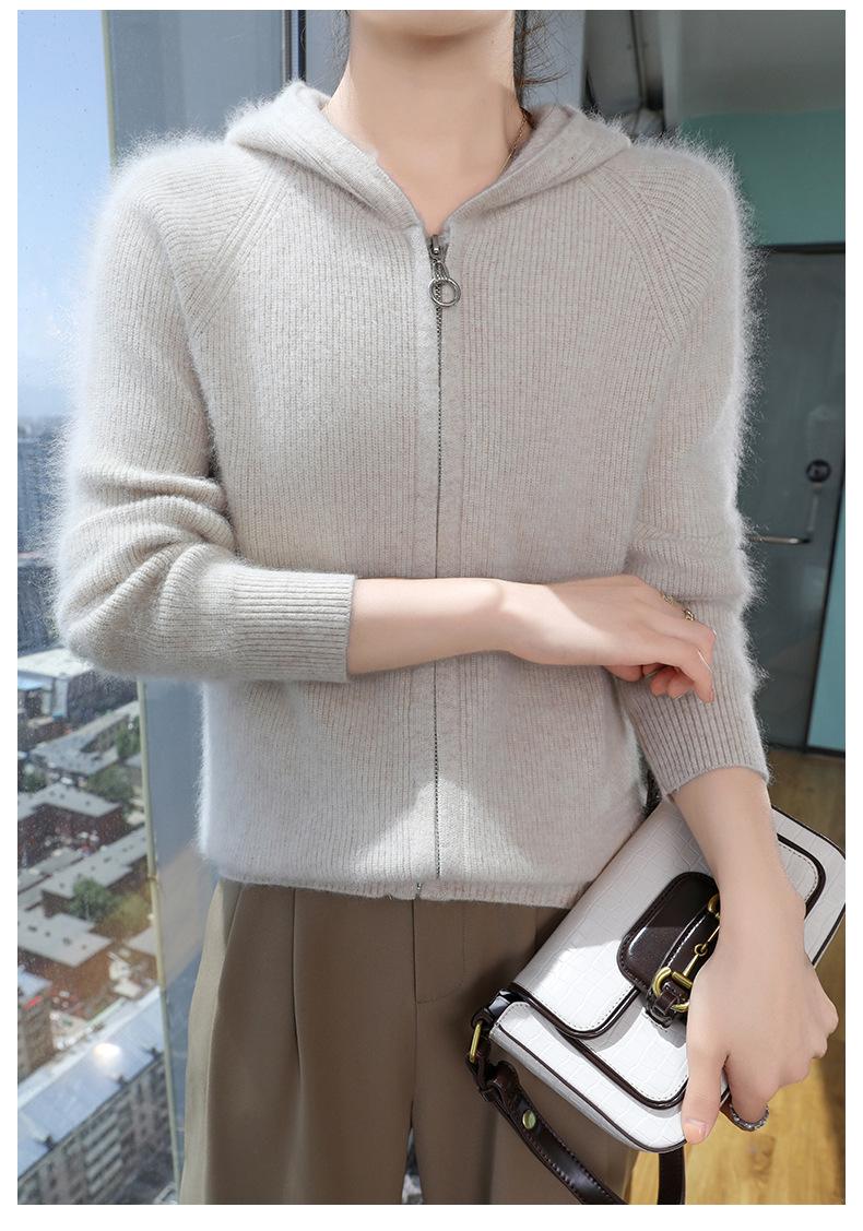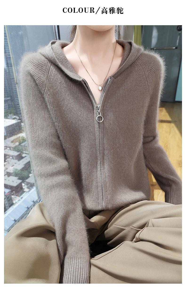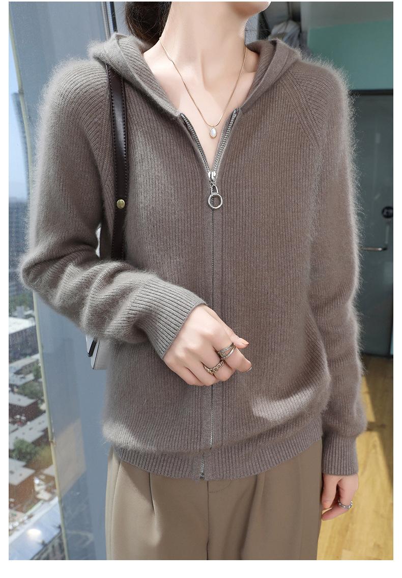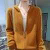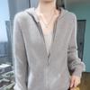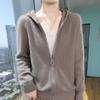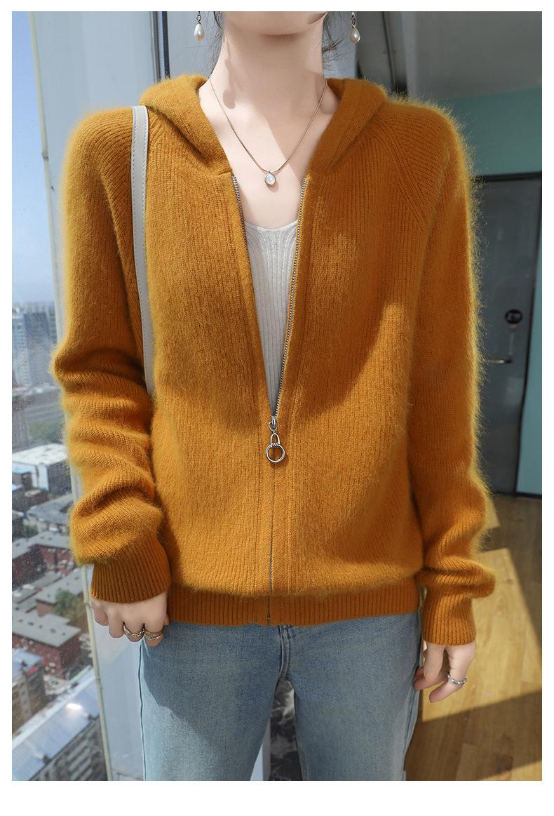 Suéter de Visón con Capucha Nuevo de Primavera y Otoño 2025 para Mujer, Color Sólido, Combinación con Todo, Adelgazante, Tejido de Lana, Cárdigan con Cremallera