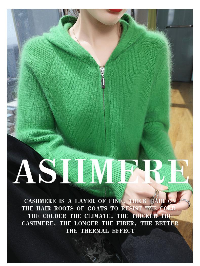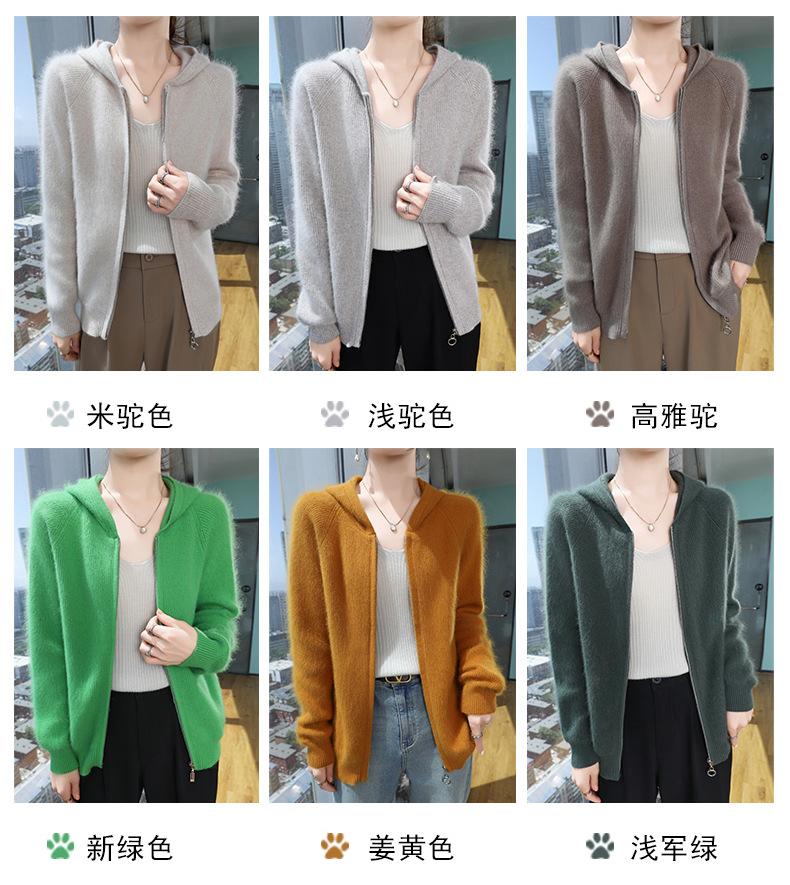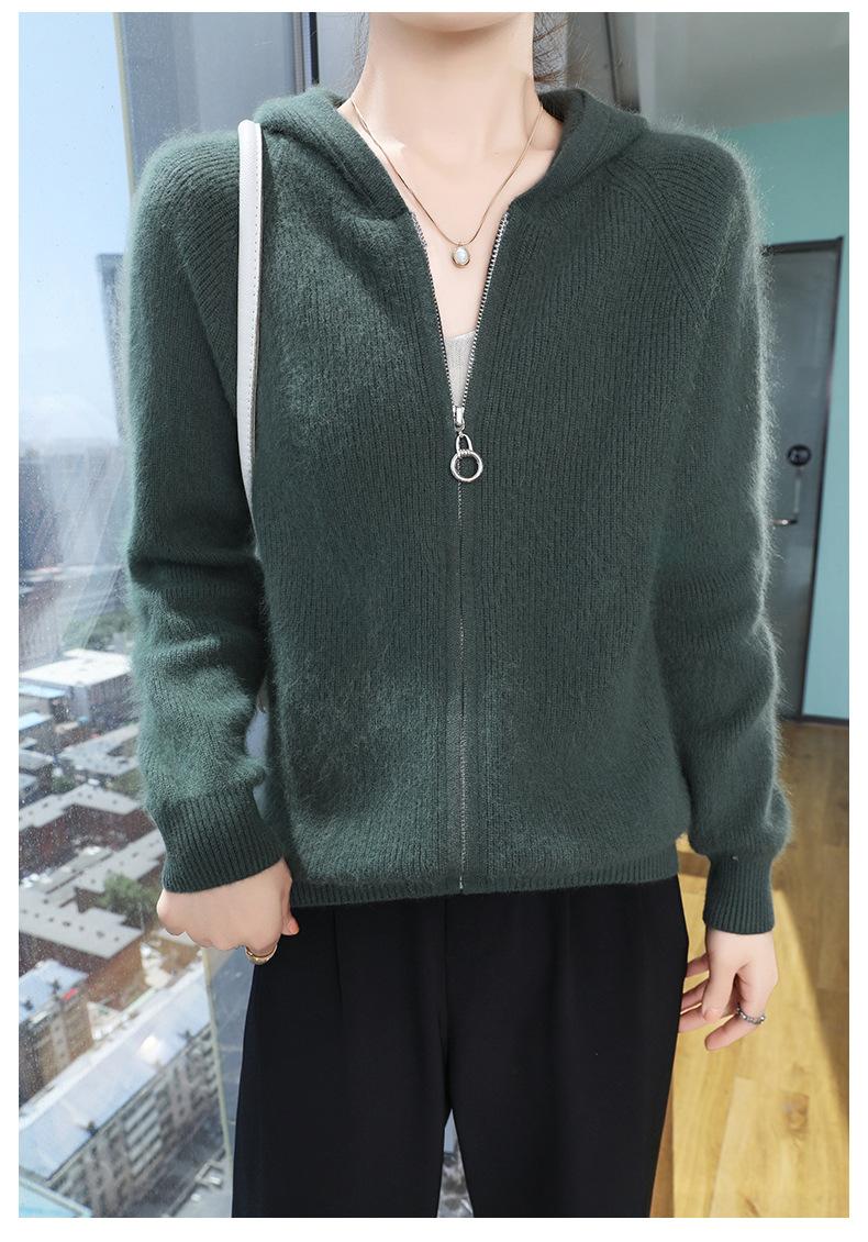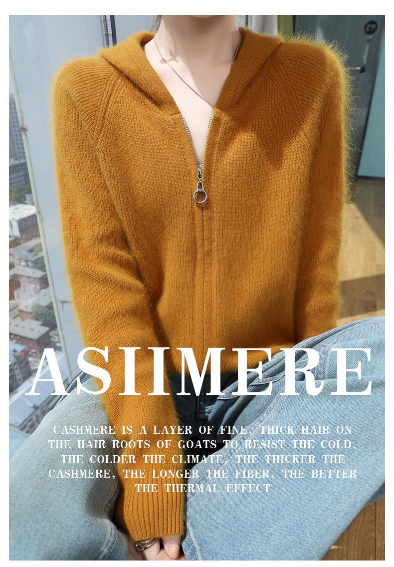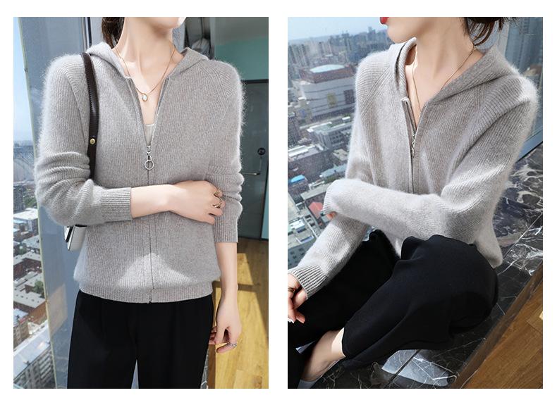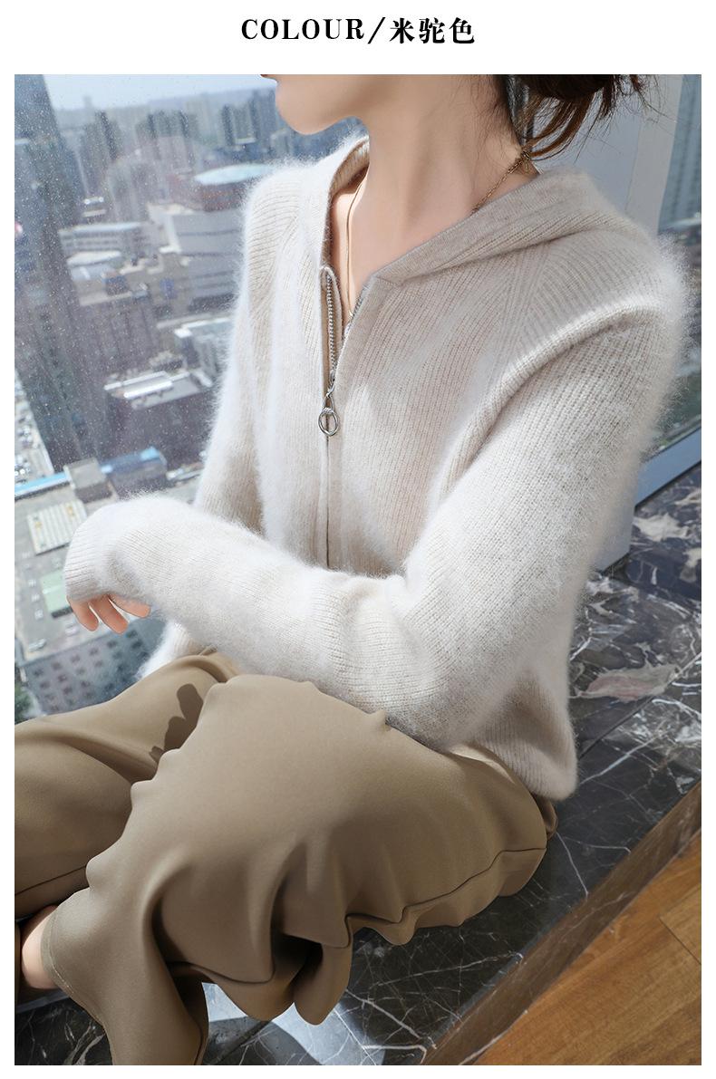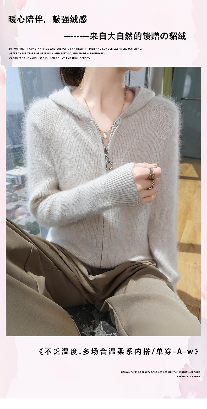 Suéter de Visón con Capucha Nuevo de Primavera y Otoño 2025 para Mujer, Color Sólido, Combinación con Todo, Adelgazante, Tejido de Lana, Cárdigan con Cremallera