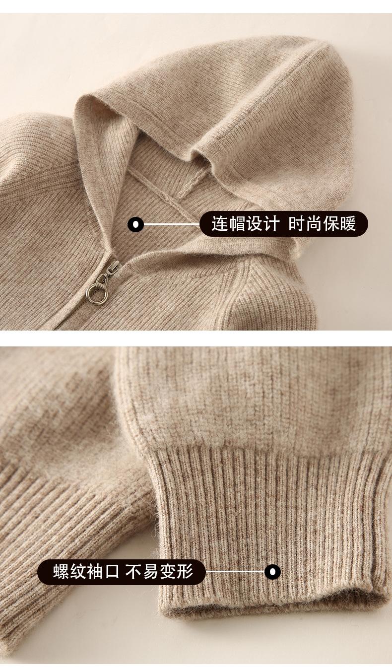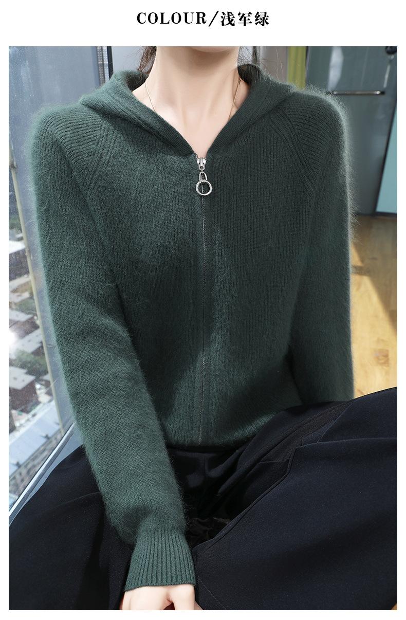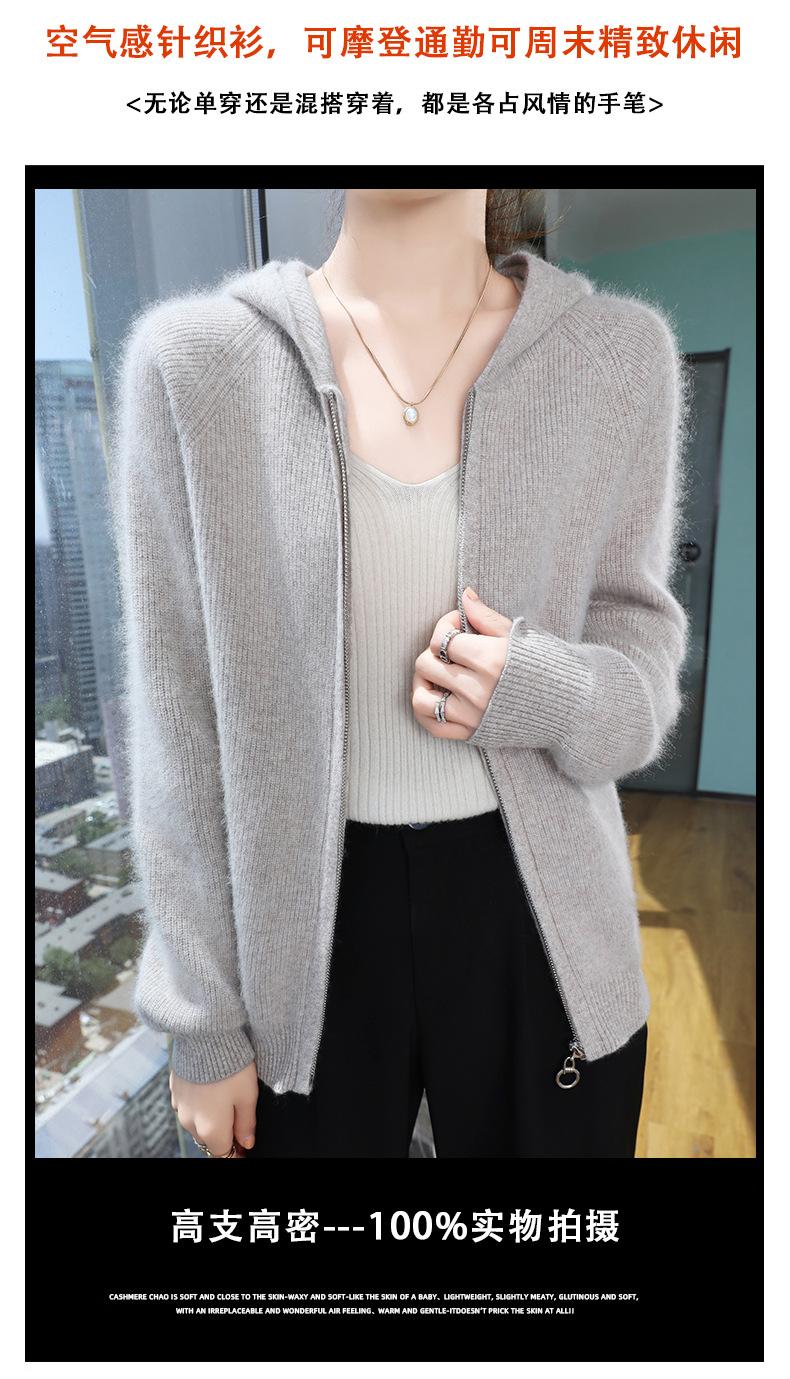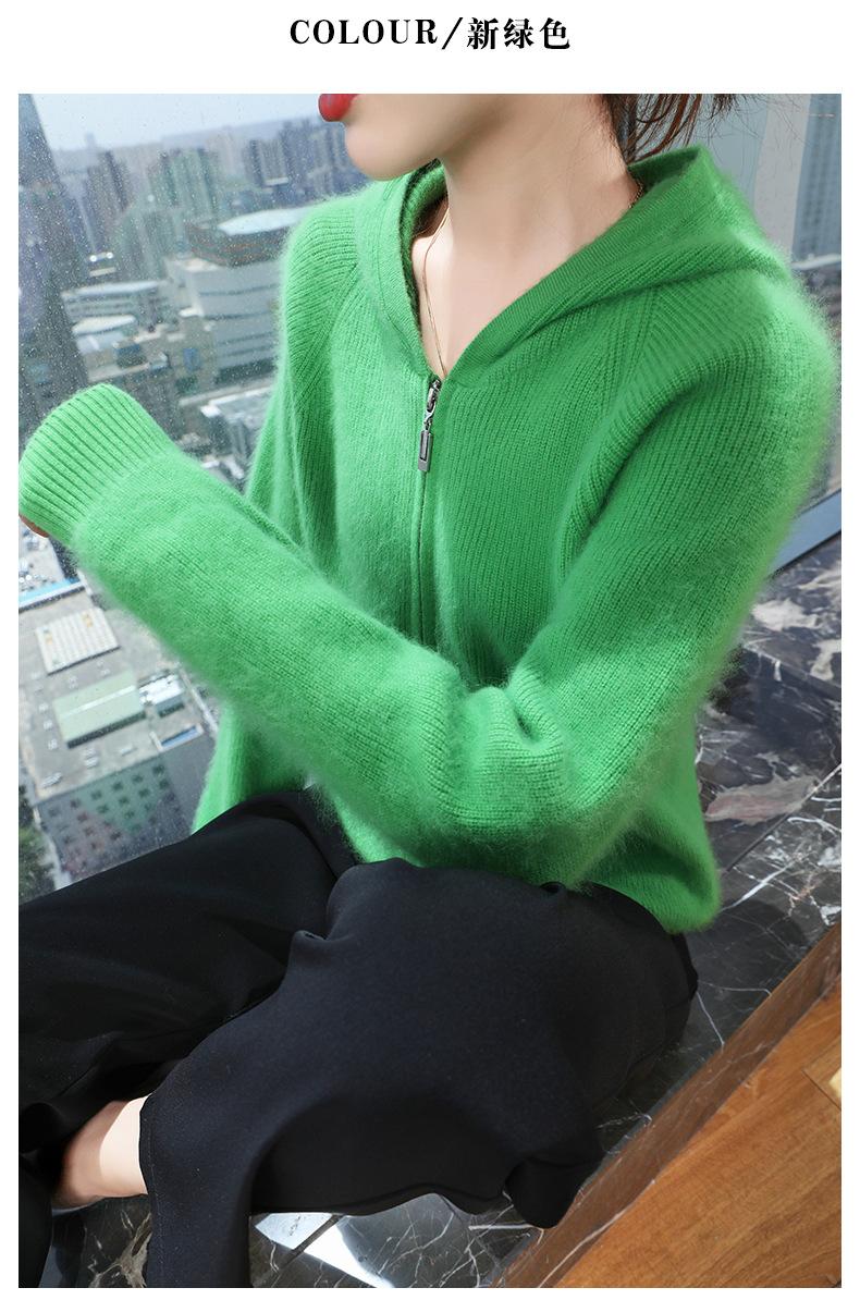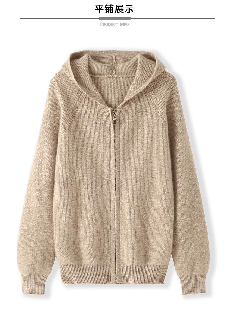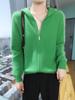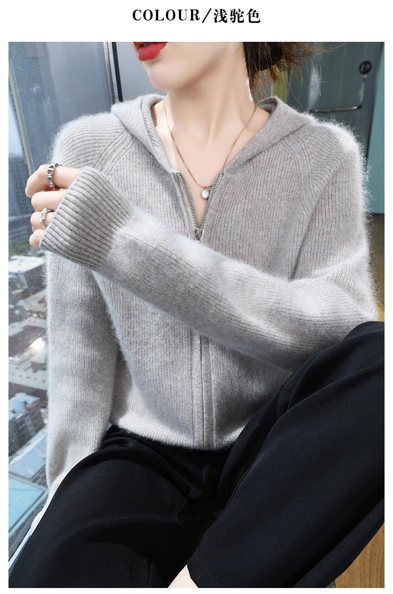 Suéter de Visón con Capucha Nuevo de Primavera y Otoño 2025 para Mujer, Color Sólido, Combinación con Todo, Adelgazante, Tejido de Lana, Cárdigan con Cremallera