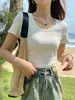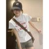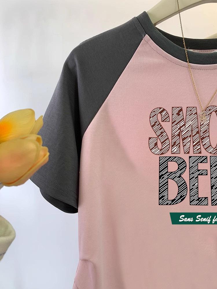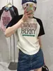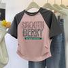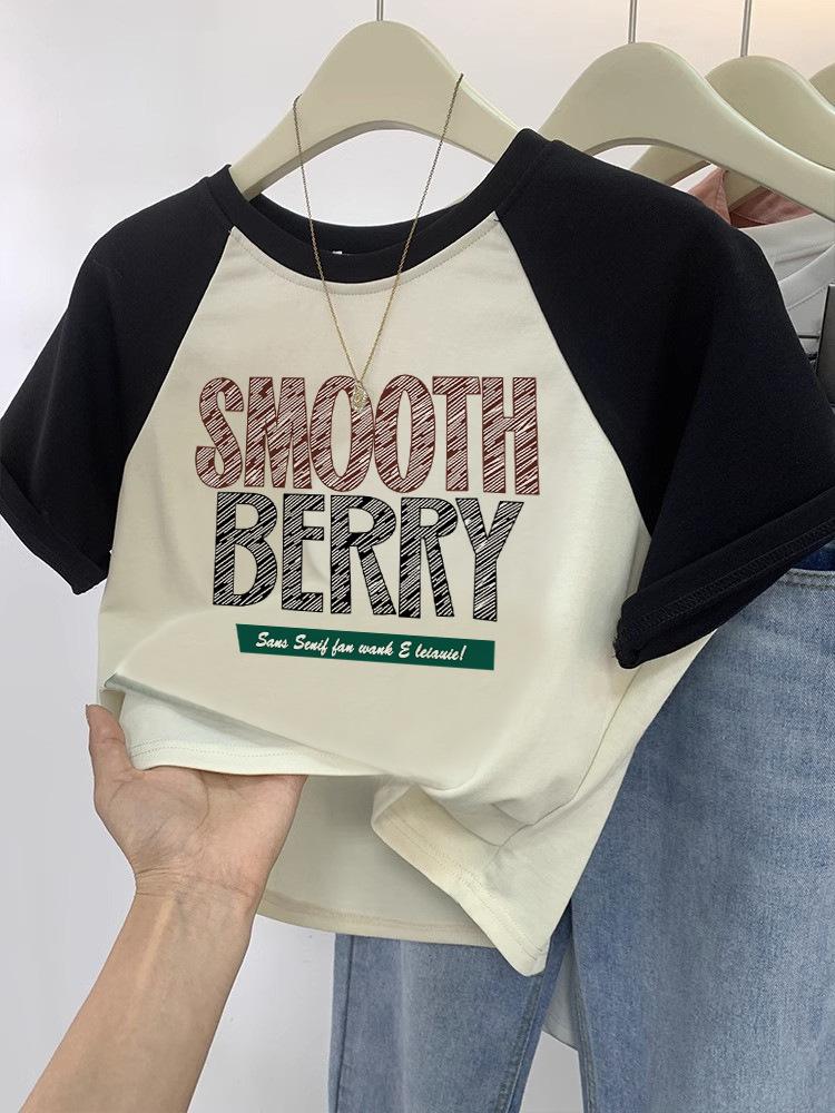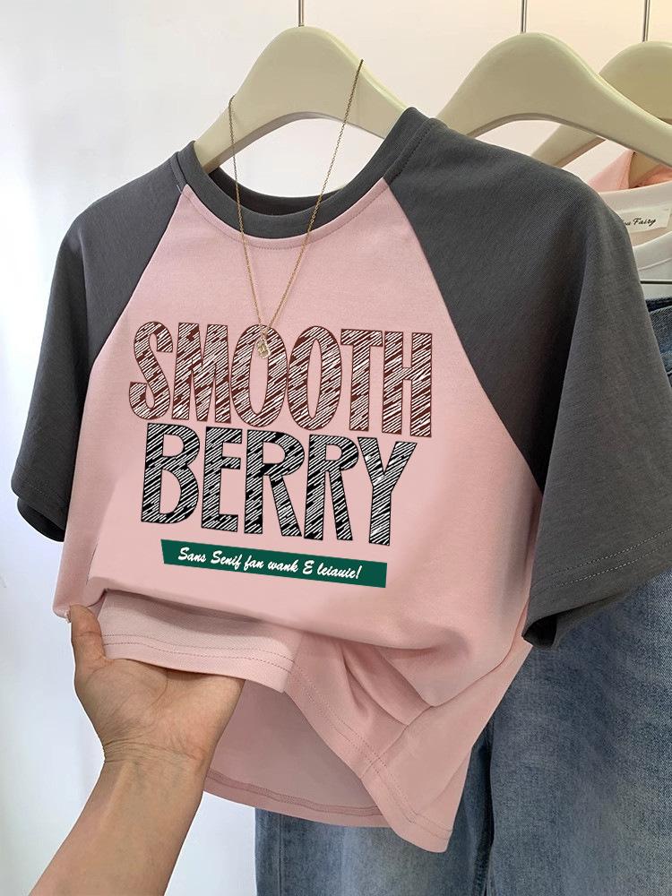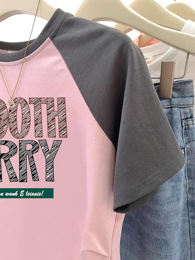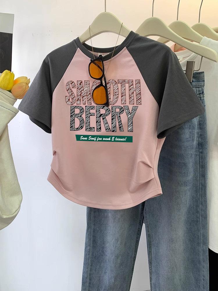 Camiseta de Manga Corta con Manga Raglán Diseñada para Mujer Verano 2025 Nueva Color Contrastante Estilo Nicho Hombro Derecho Top