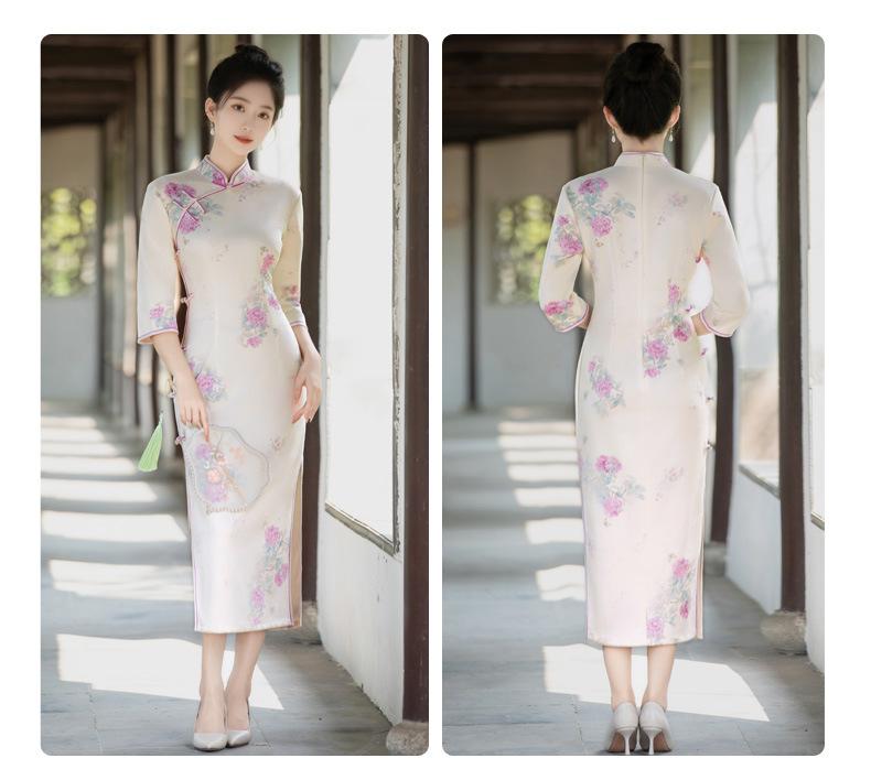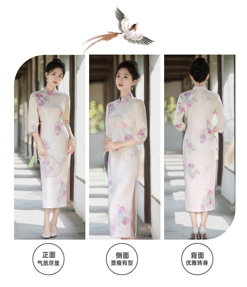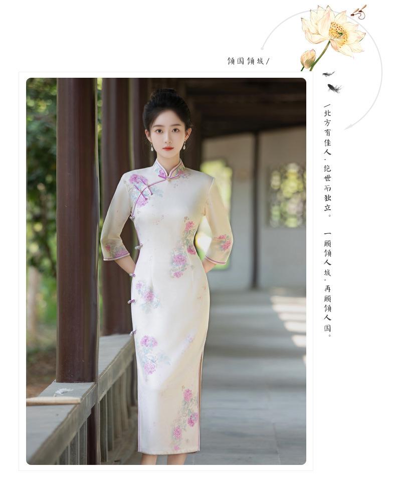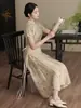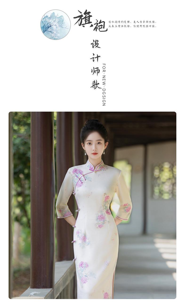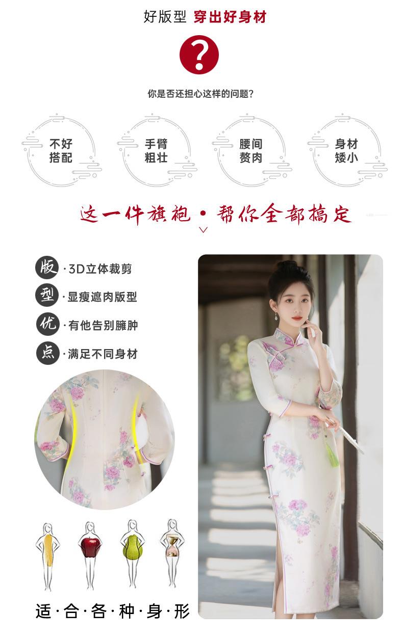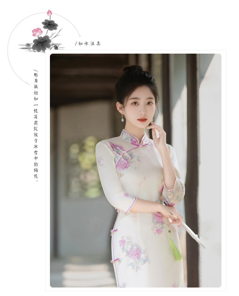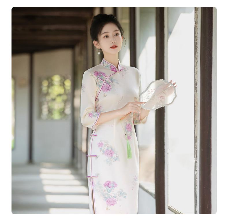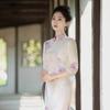 Cheongsam blanco 2024 Nuevo estilo chino mejorado Nuevo estilo nacional Vestido de color Otoño Joven Jacquard Manga de siete puntos