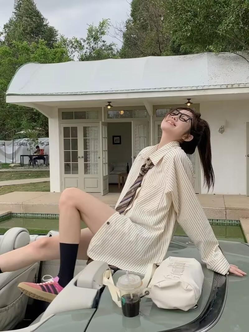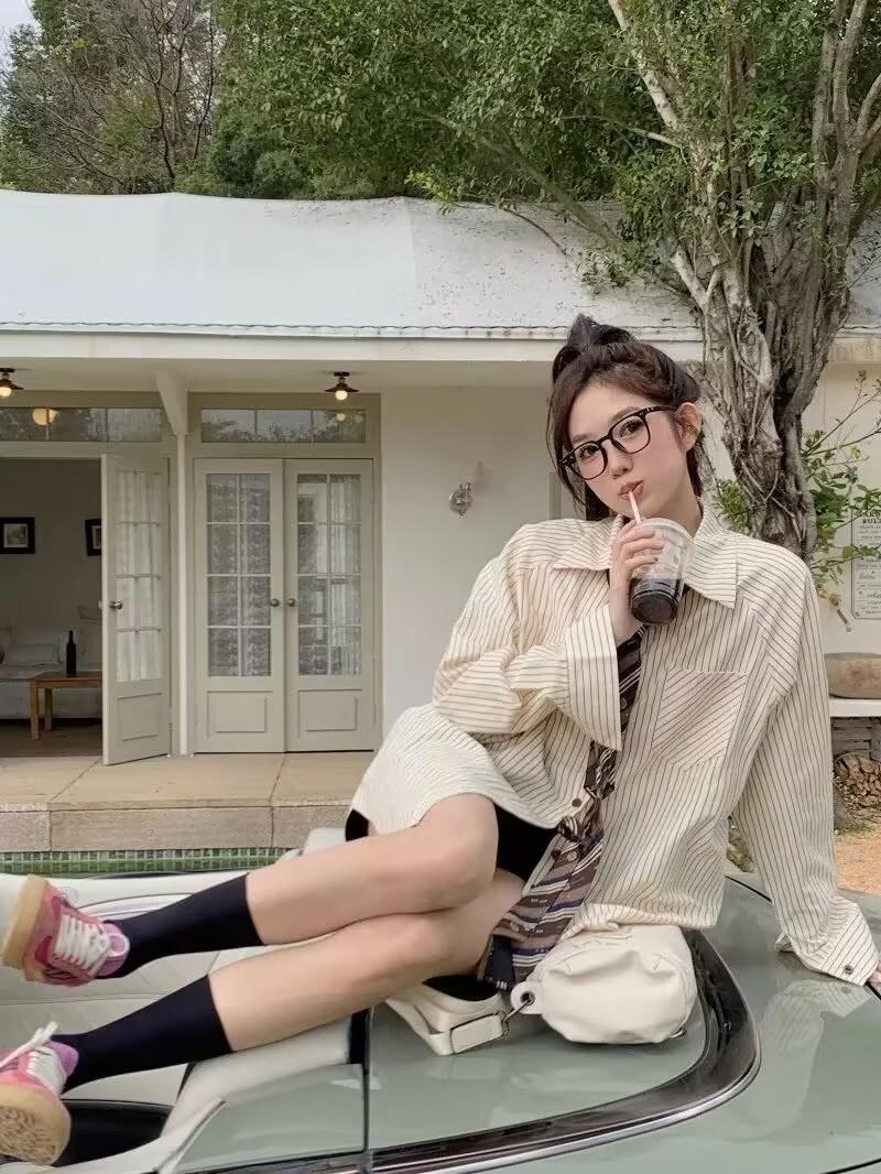 Camisa de rayas francesas para mujer, ropa de otoño de 2025, nuevo diseño, estilo coreano