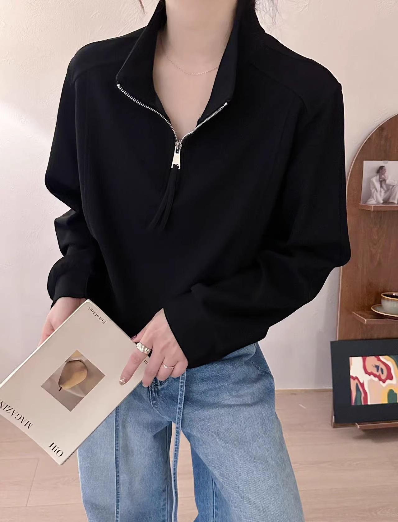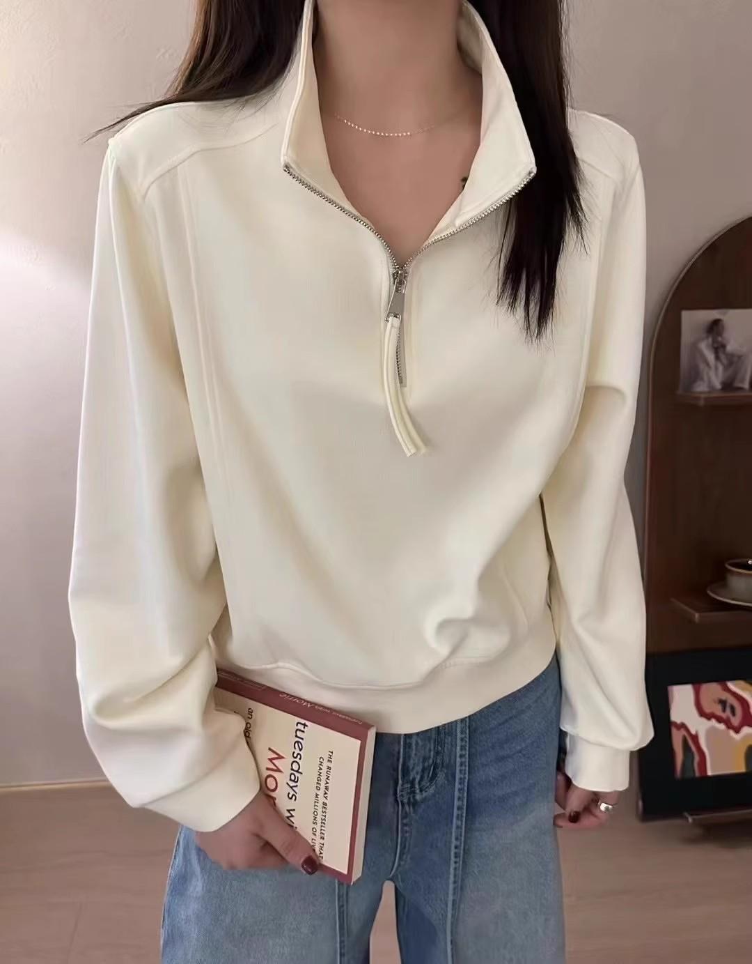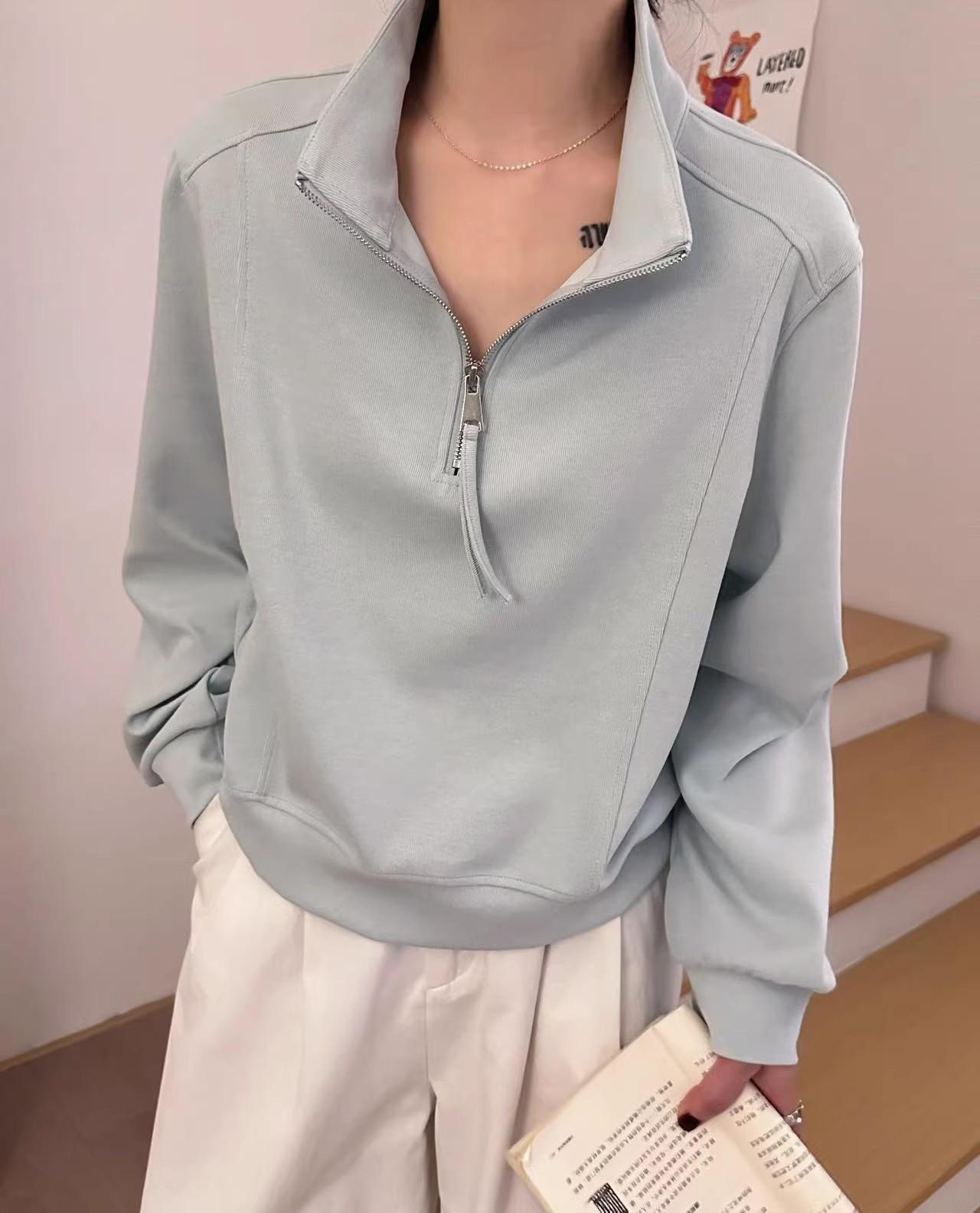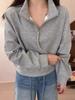 Sudadera Corta Holgada Estilo Lazy de Estilo Coreano con Media Cremallera para Mujer 2025 Nuevo Estilo Primavera Temprana Sencilla Combinable Top Deportivo