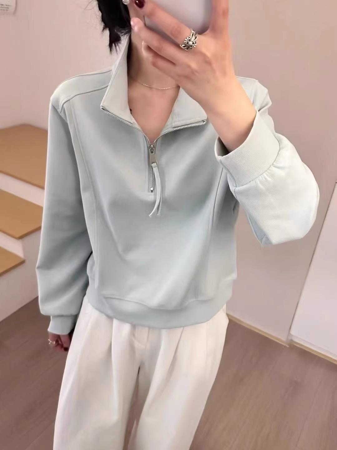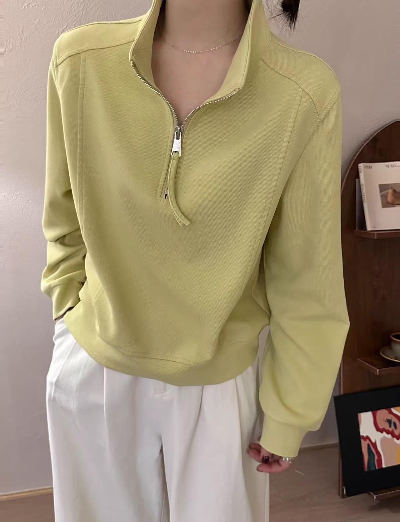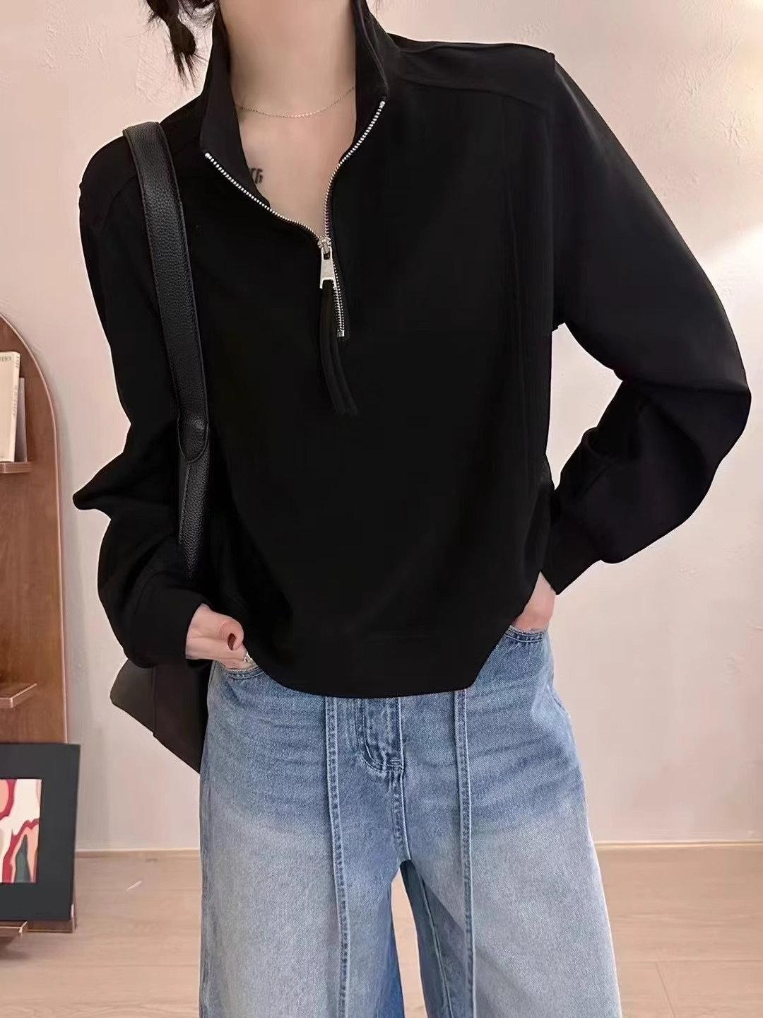 Sudadera Corta Holgada Estilo Lazy de Estilo Coreano con Media Cremallera para Mujer 2025 Nuevo Estilo Primavera Temprana Sencilla Combinable Top Deportivo