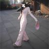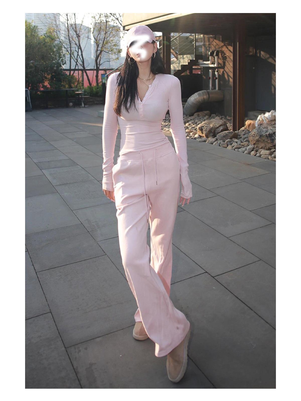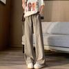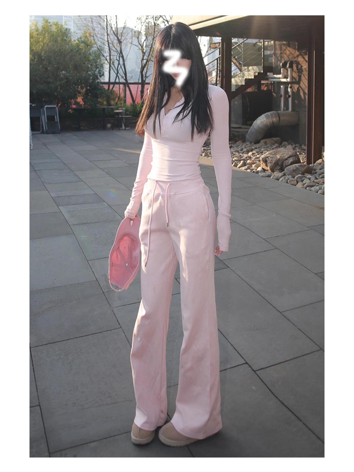Pantalones deportivos de estilo coreano, de cintura alta, color rosa y pierna ancha, para mujer, de primavera y otoño, estilo relajado, holgados e informales.