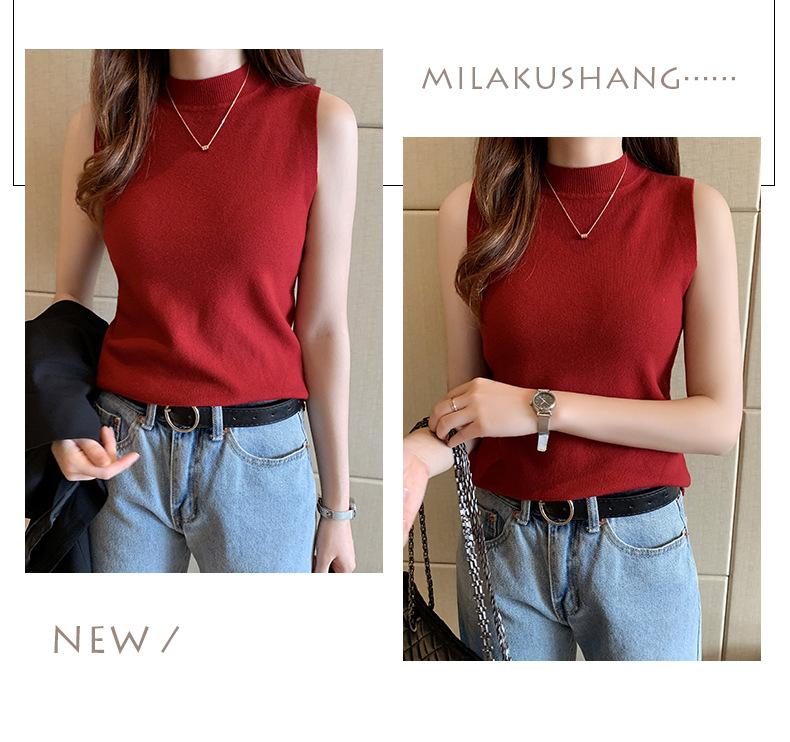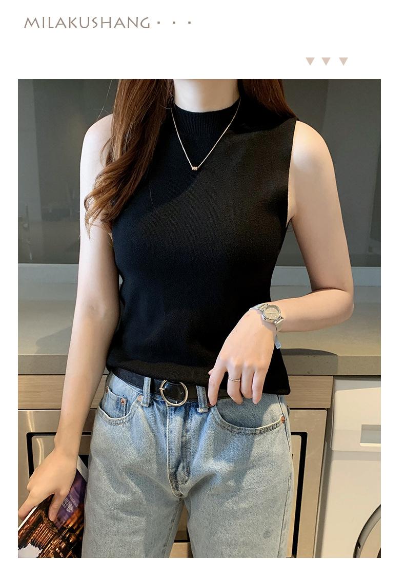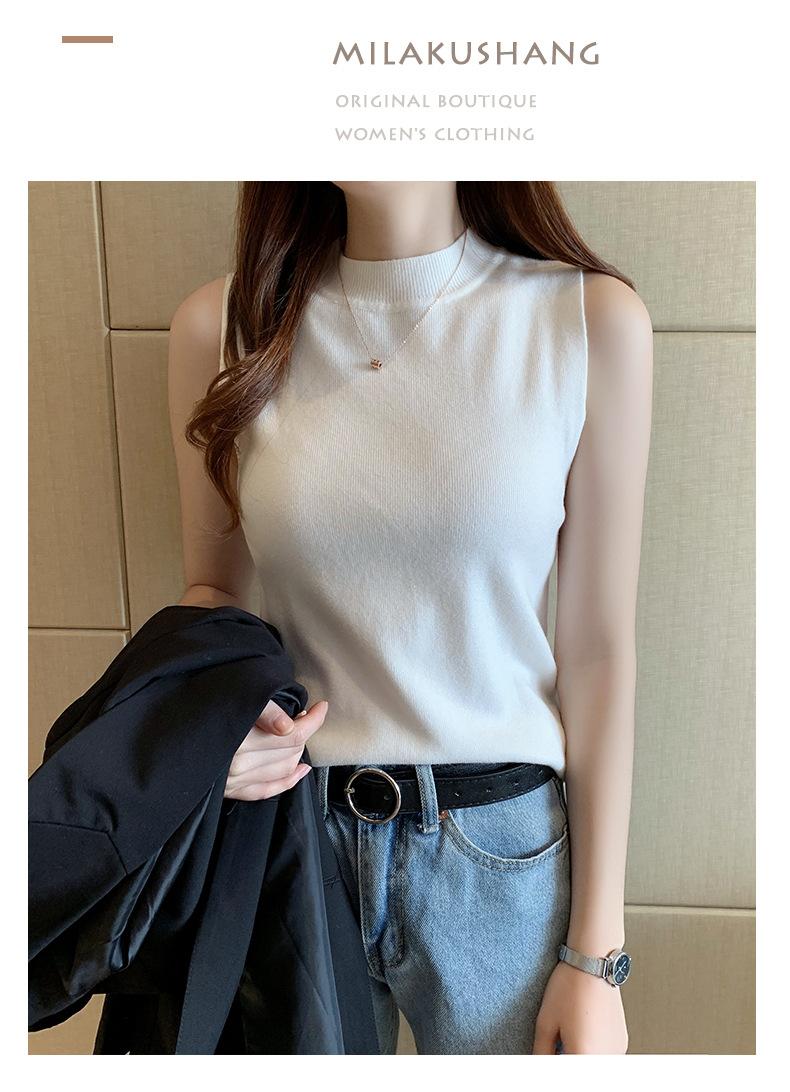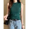 Chaleco de punto blanco para mujer, otoño e invierno, interior con tirantes pequeños, ropa exterior de verano, camisa básica de cuello medio alto, top corto sin mangas