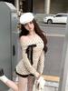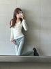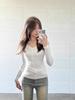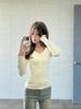 Camiseta de manga larga con escote en V y hombros descubiertos estilo Spice Girls, estilo americano, ajustada y adelgazante, estilo Pure Desire, sexy, combinable con todo, top único.