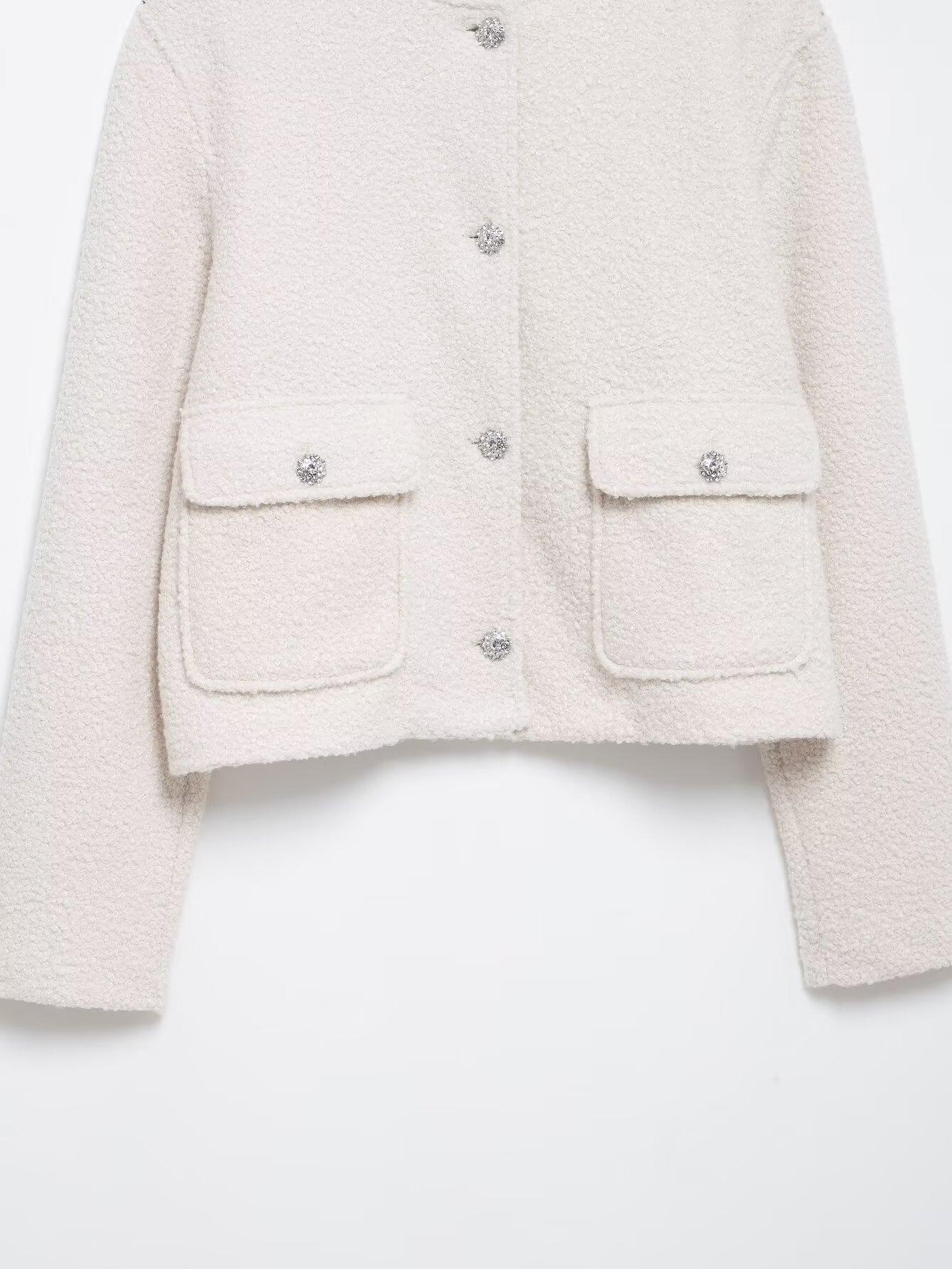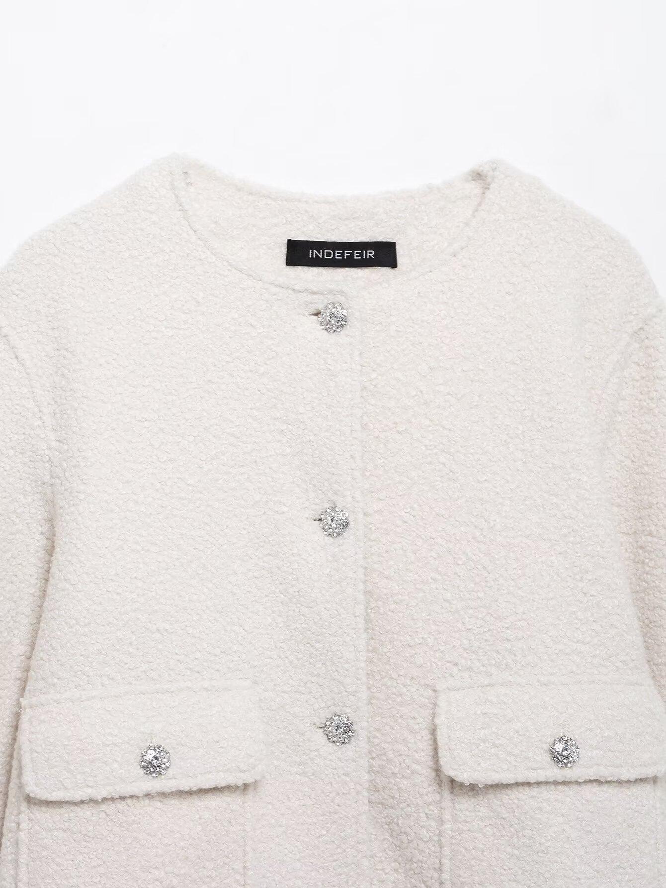 Abrigo de tela con cuentas y hebilla de fila de moda para mujer transfronteriza europea y americana de primavera 2025 w085 265206