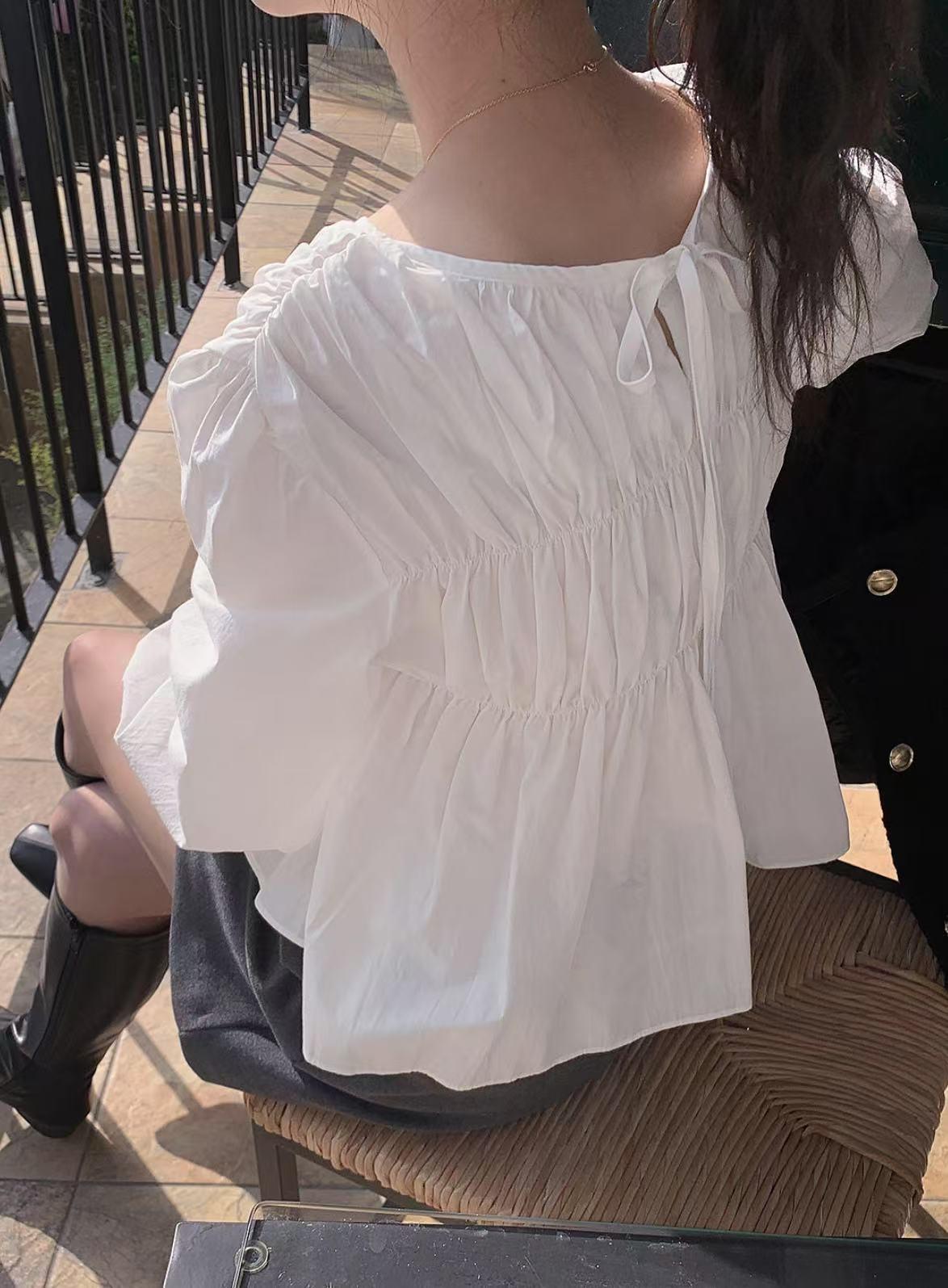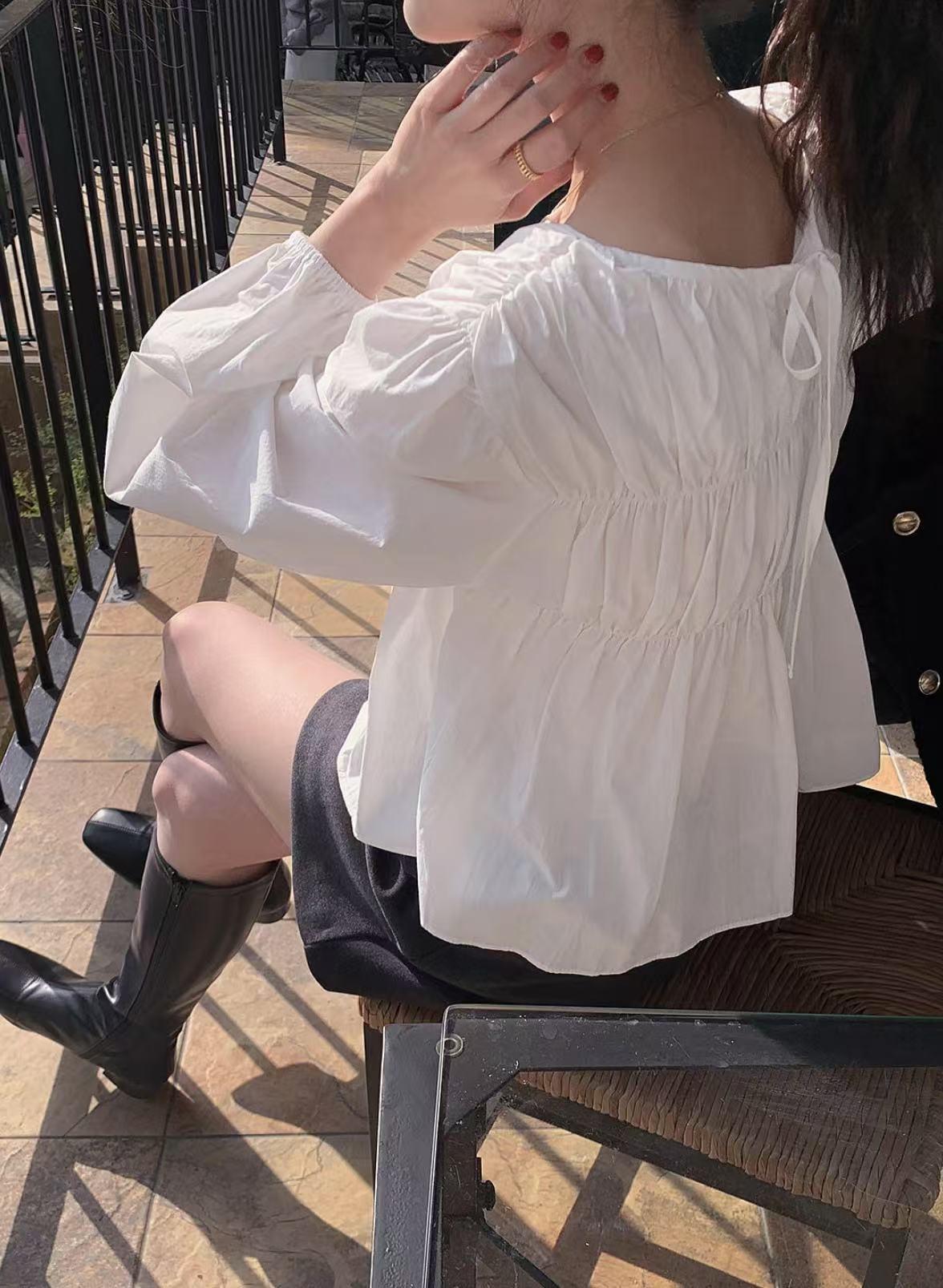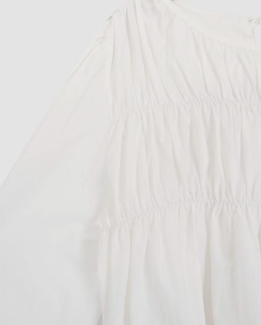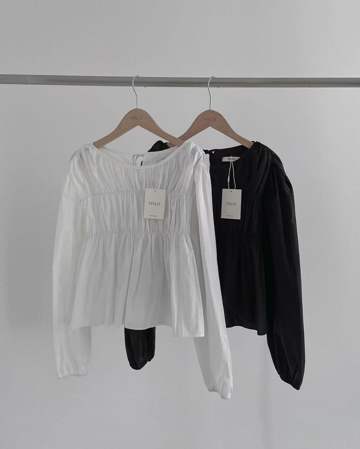 Camisa Chic de Cuello Redondo Plisada Holgada de Manga Larga para Mujer de Corea del Sur