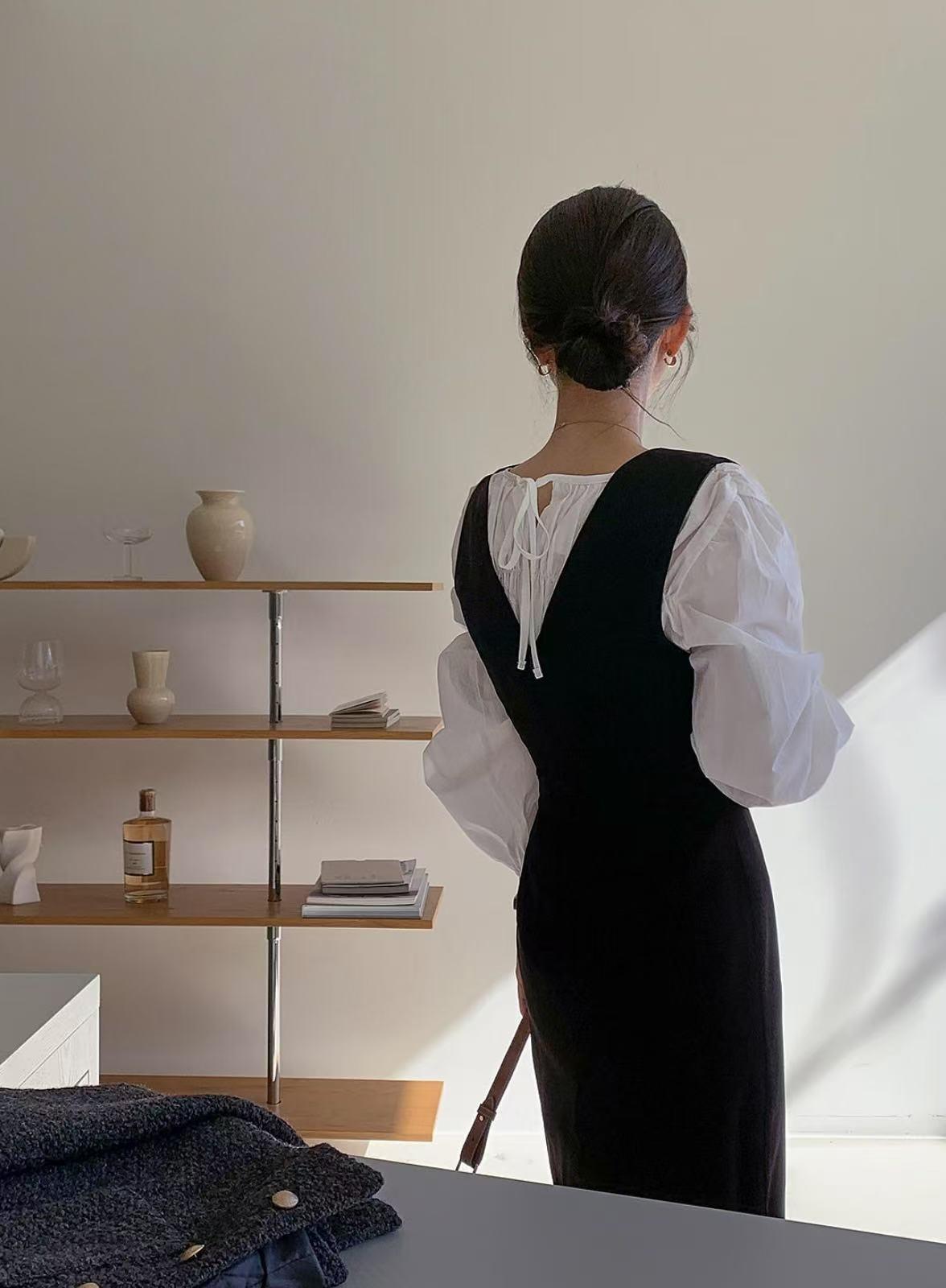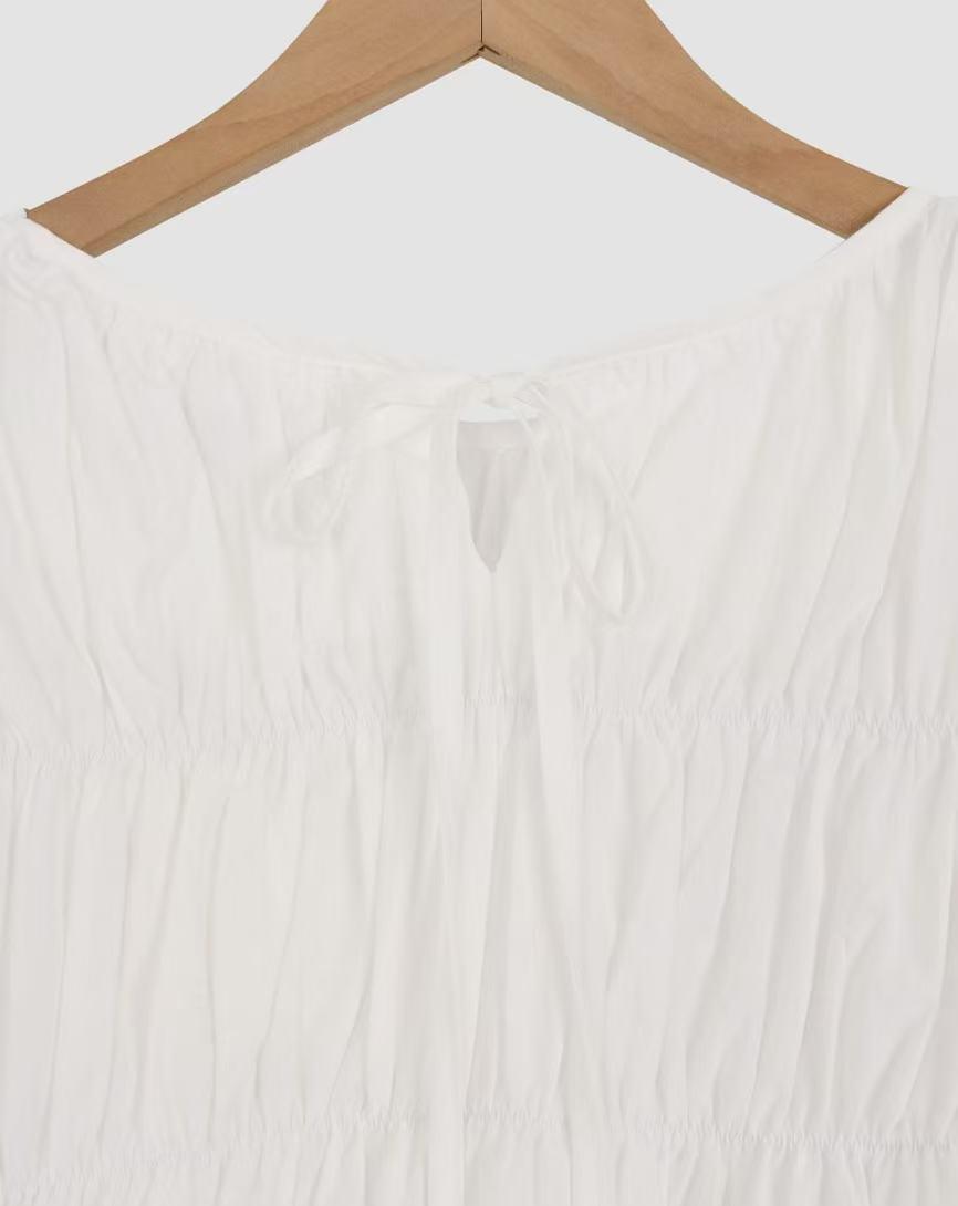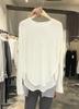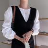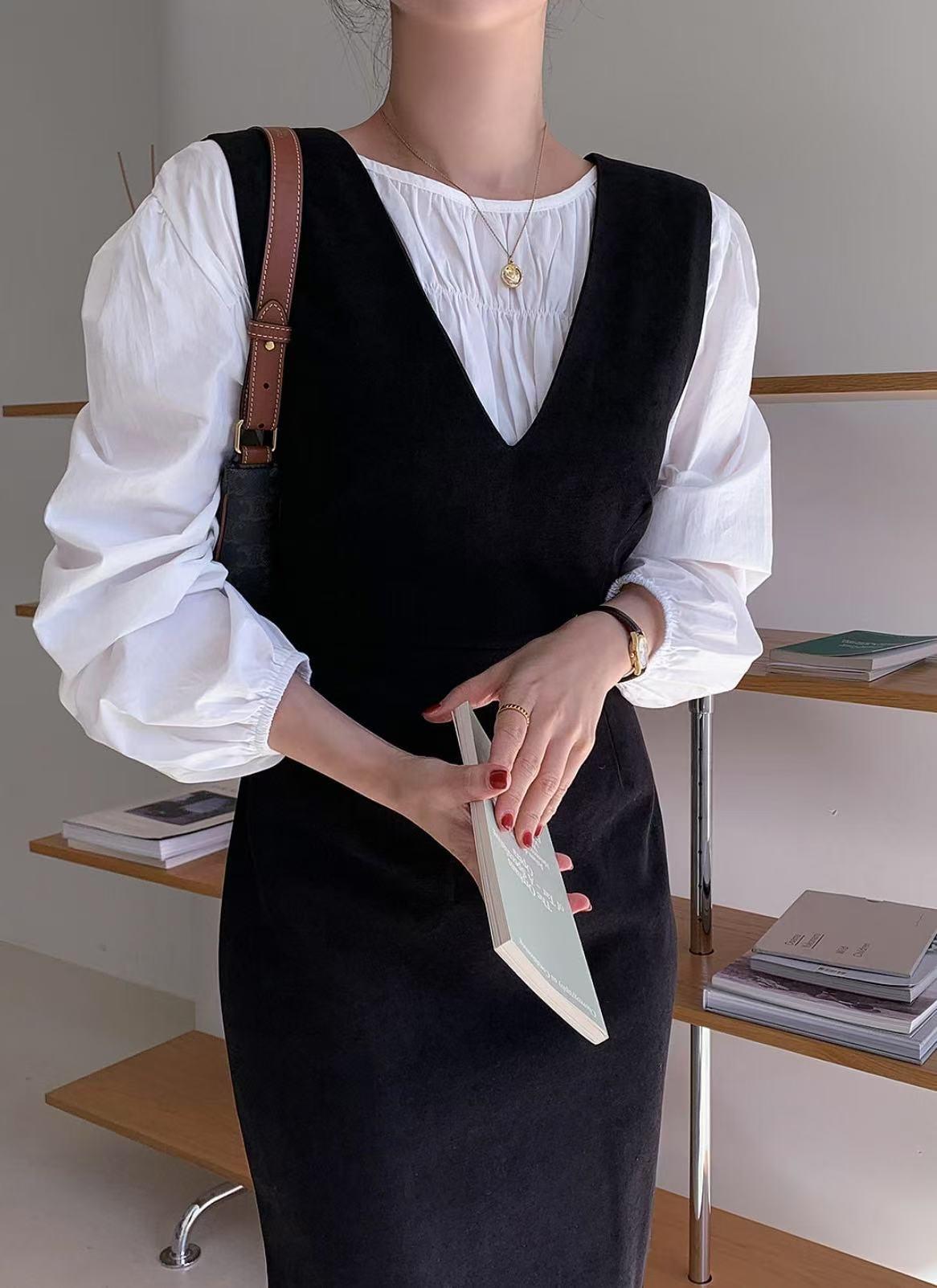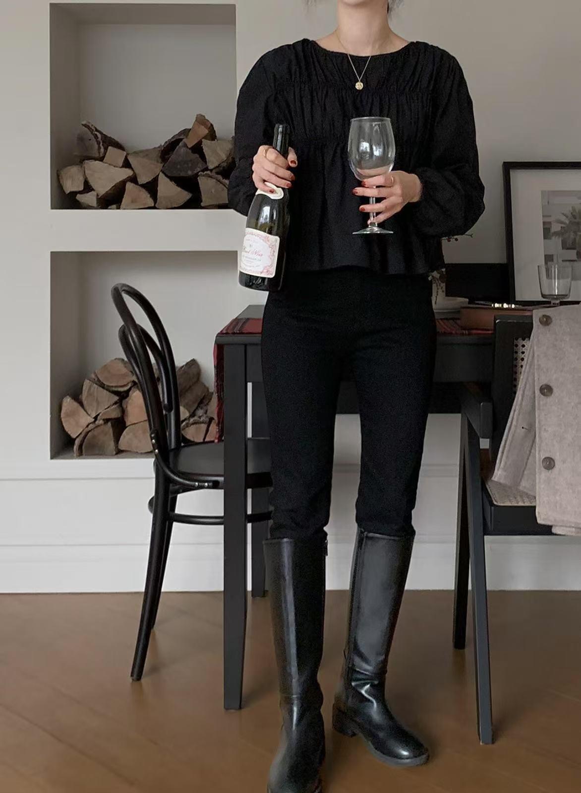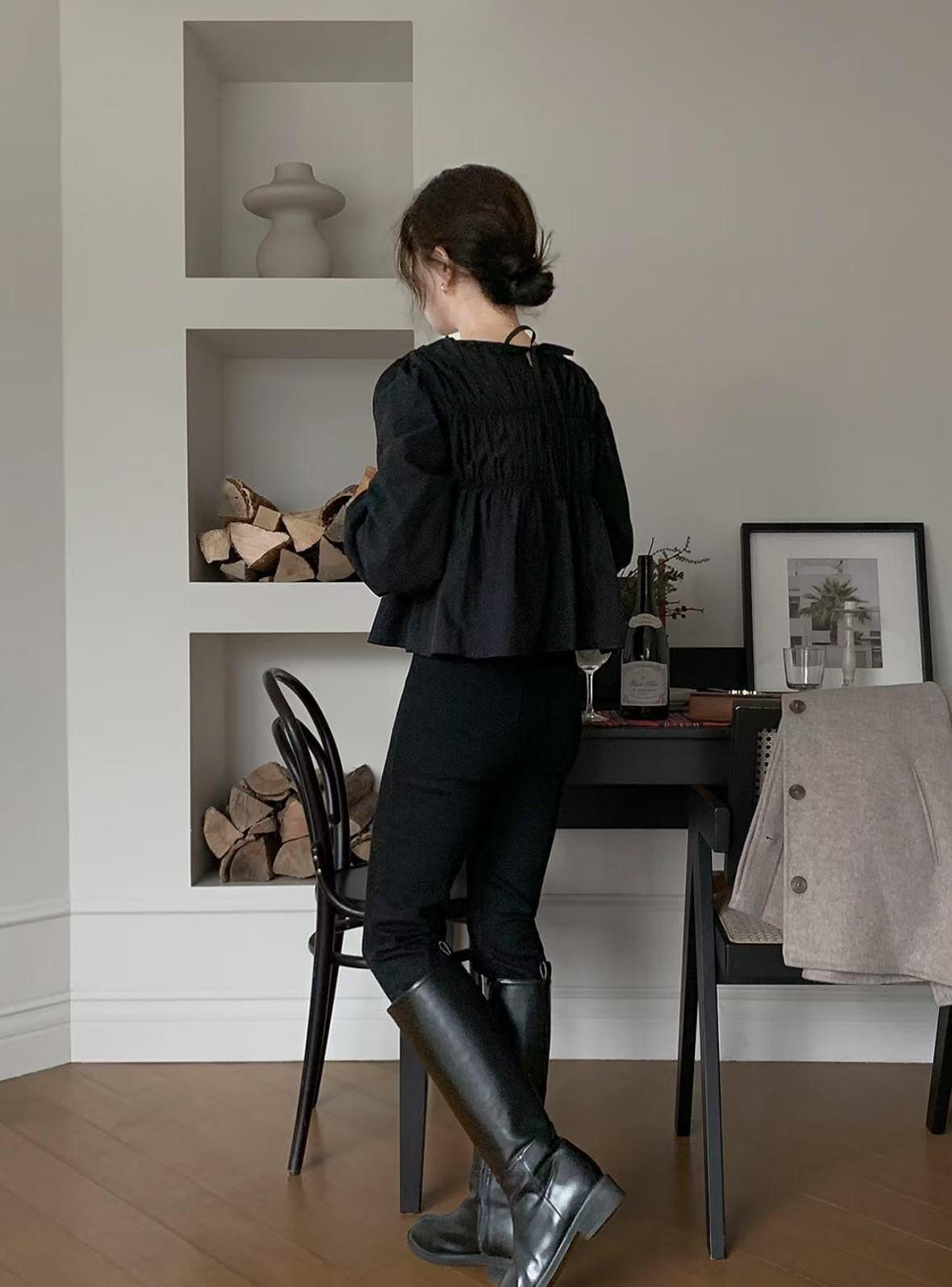 Camisa Chic de Cuello Redondo Plisada Holgada de Manga Larga para Mujer de Corea del Sur