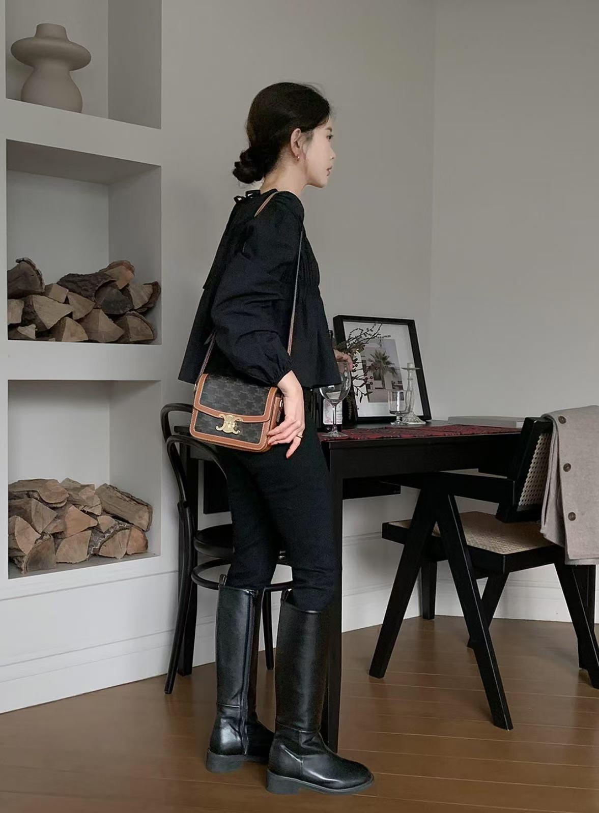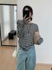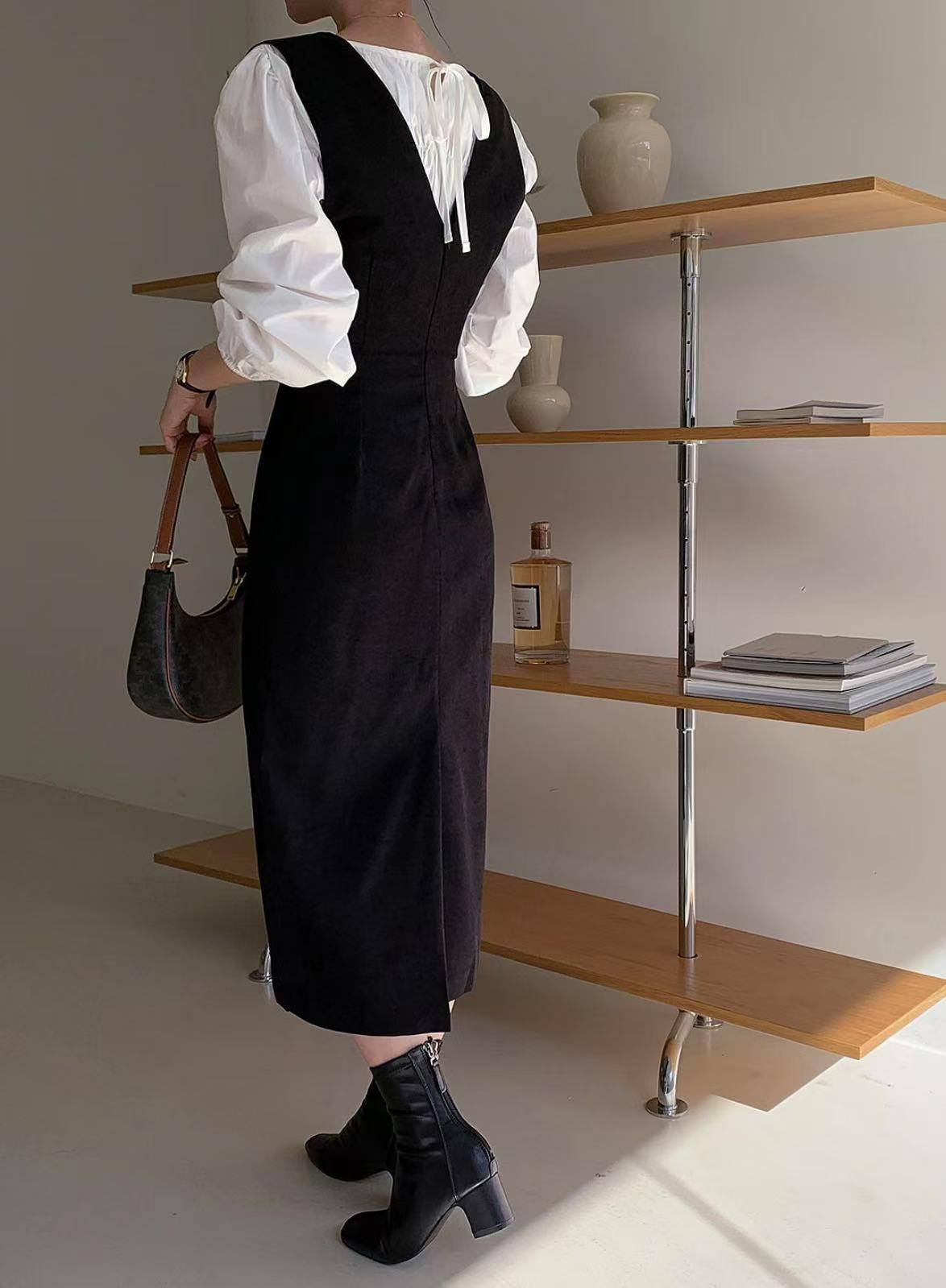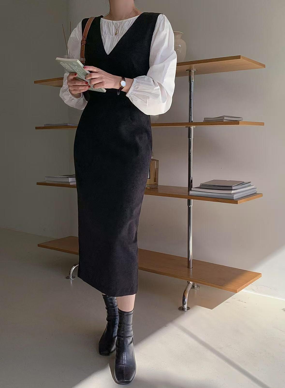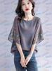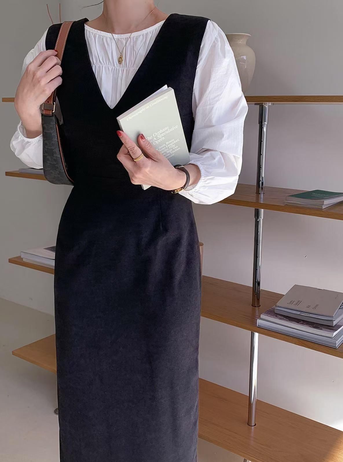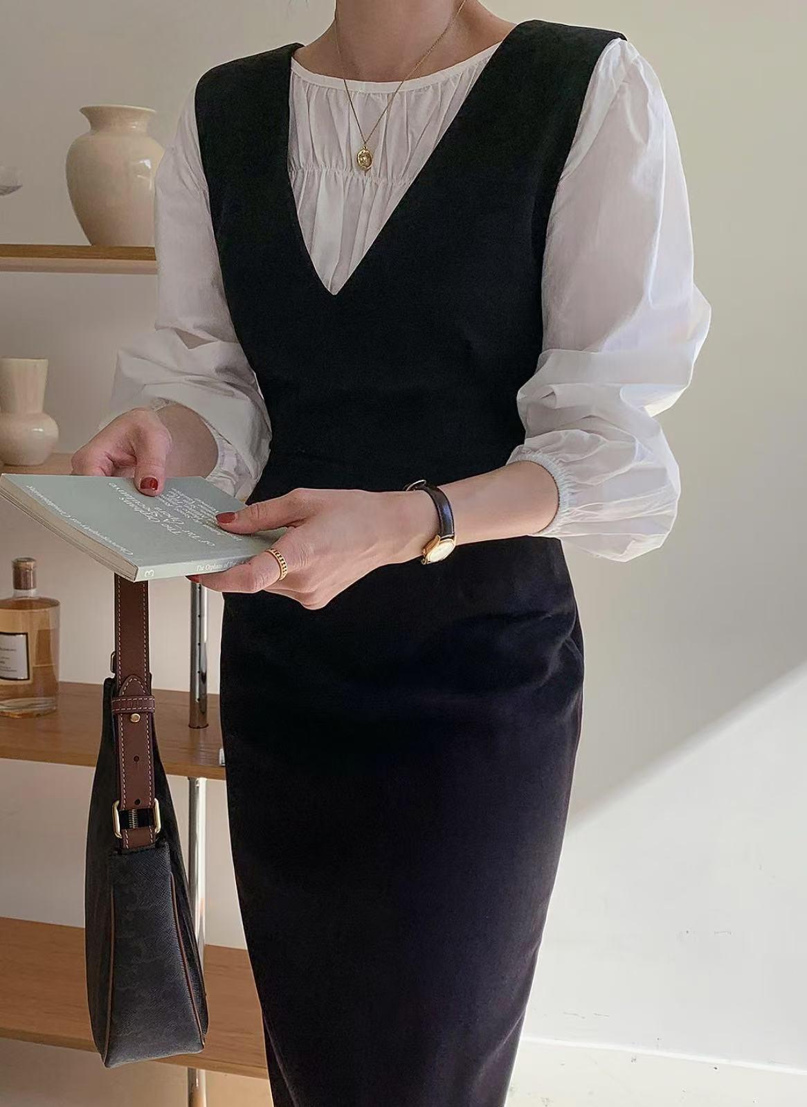 Camisa Chic de Cuello Redondo Plisada Holgada de Manga Larga para Mujer de Corea del Sur