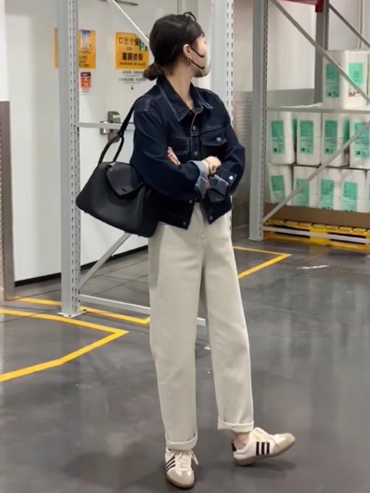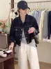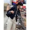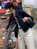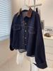 Chaqueta de mezclilla azul oscuro retro estilo coreano para mujer Otoño e Invierno 2025 Estilo holgazán Chaqueta corta suelta Top A2951
