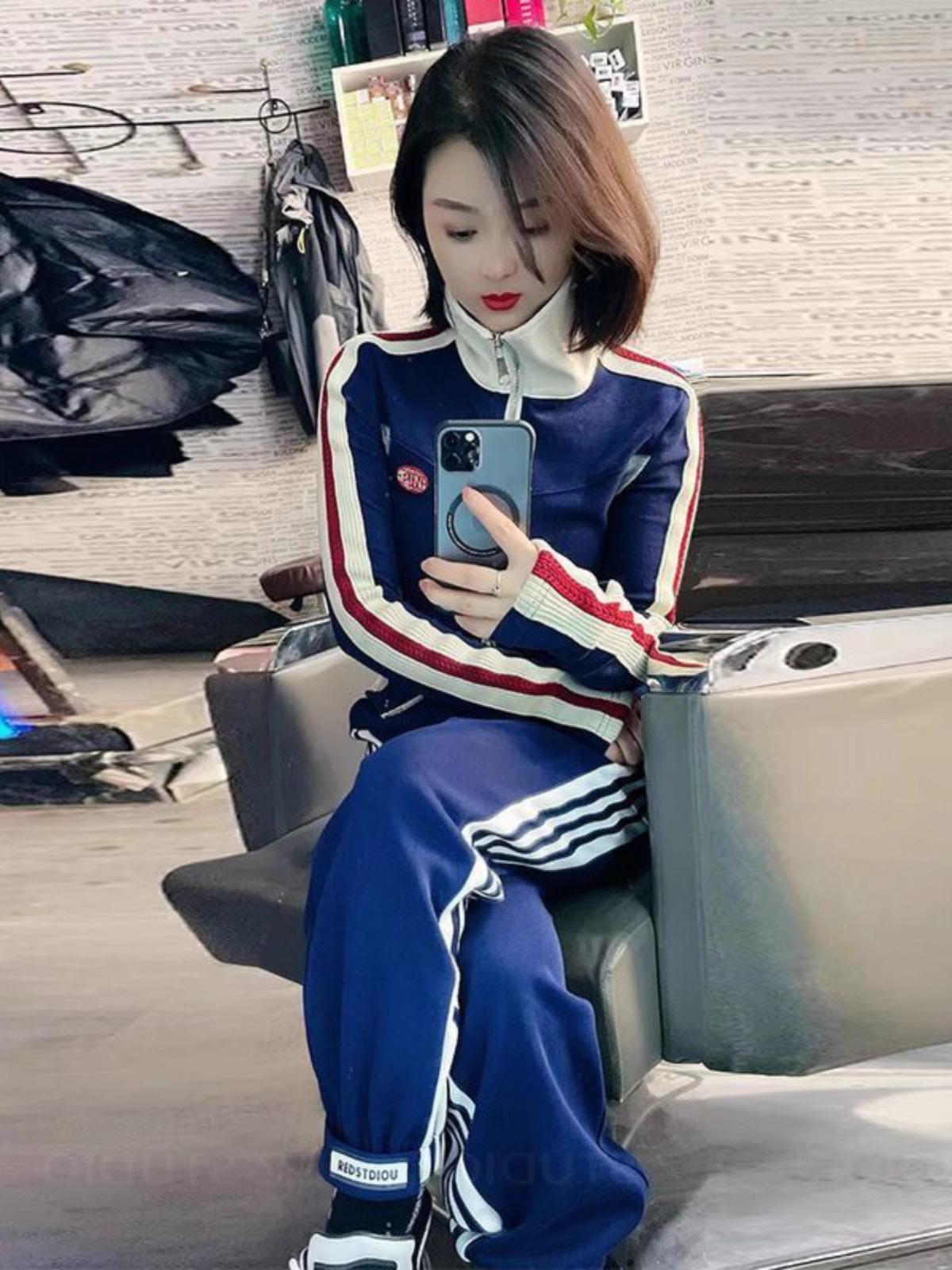 2025 Primavera y Otoño Nuevo Elegante Traje Casual Grueso con Forro Polar para Mujer Otoño e Invierno Deportes Sudadera de Manga Larga Pantalones Deportivos Conjunto de Dos Piezas