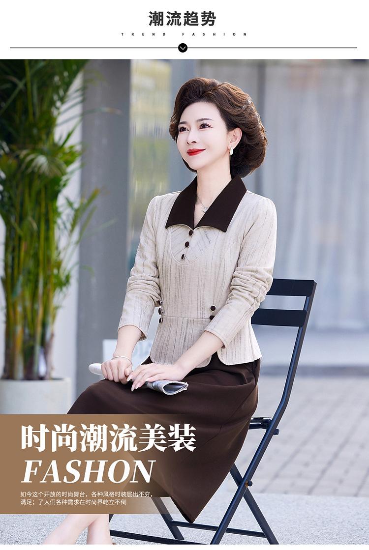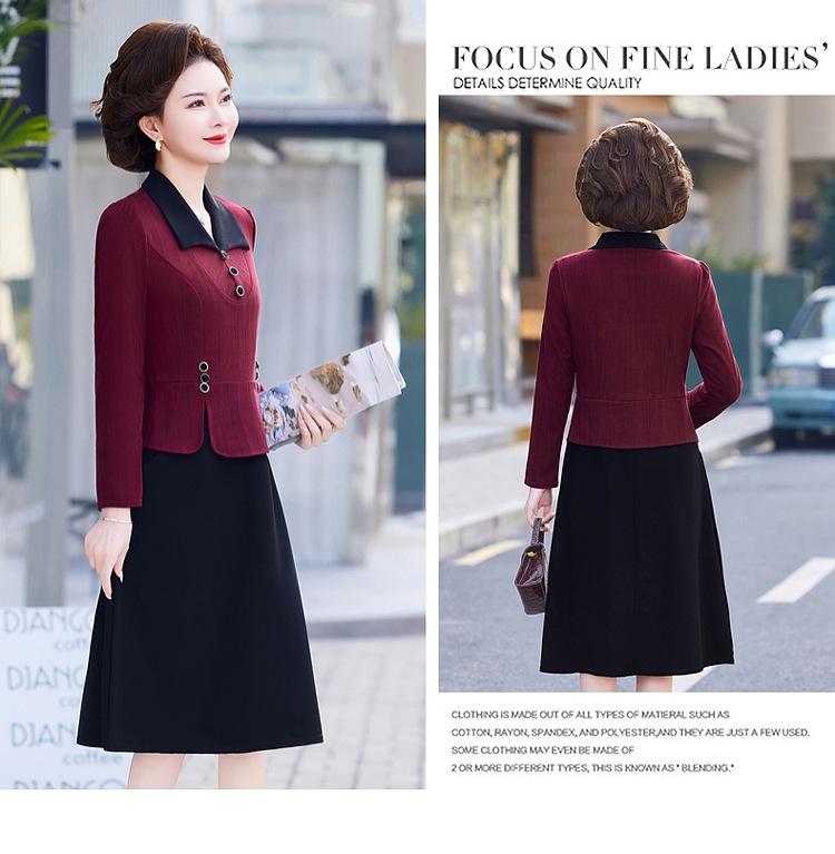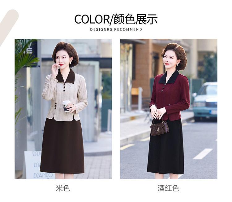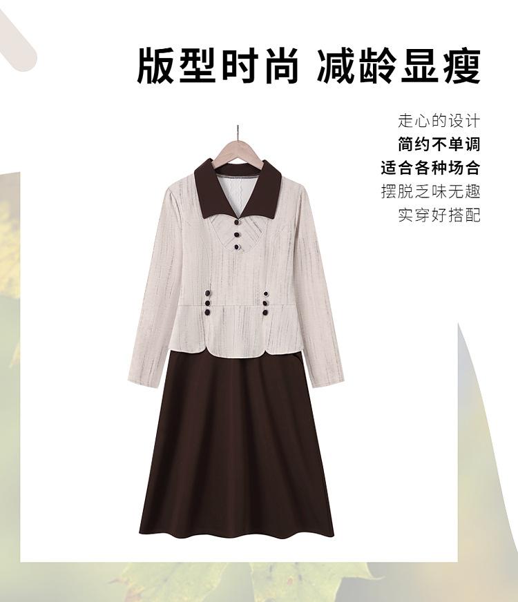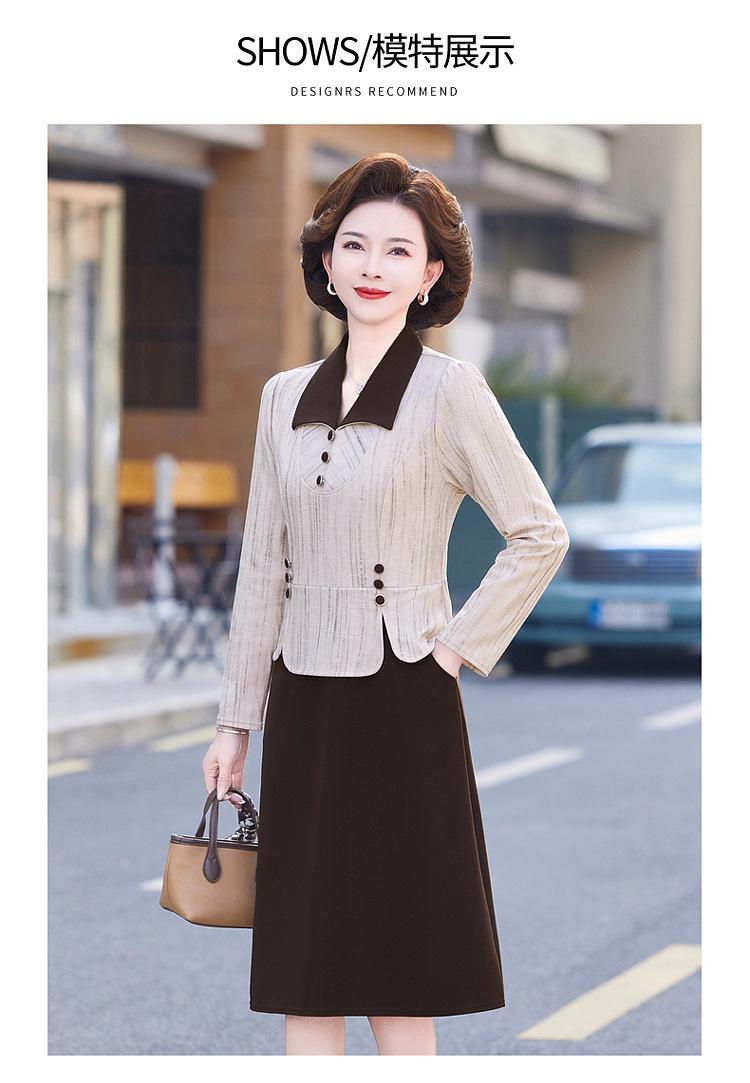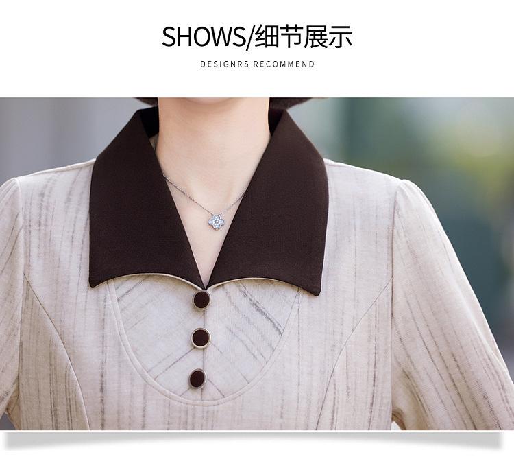 Vestido de primavera y otoño 2025 para madres primerizas, vestido para mujeres de mediana edad y mayores, falda de dos piezas falsa, vestido de primavera con cuello camisero corto para mujer