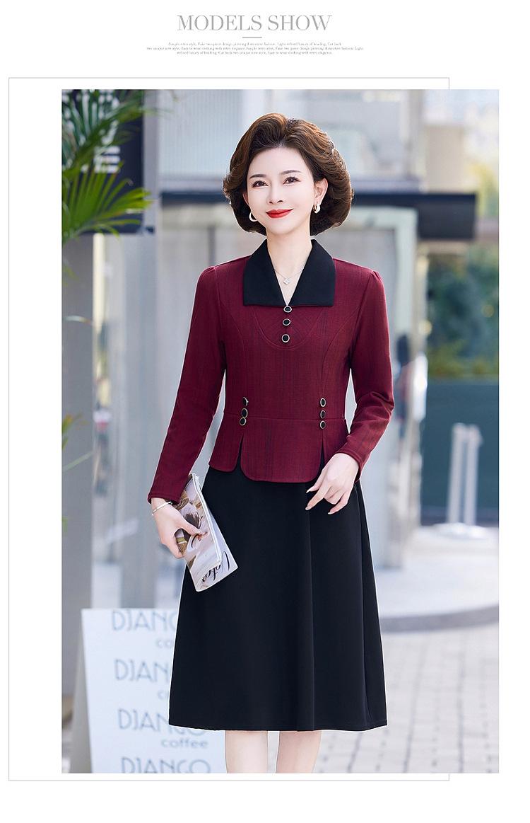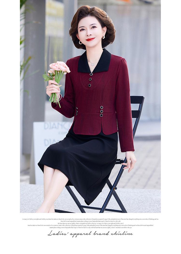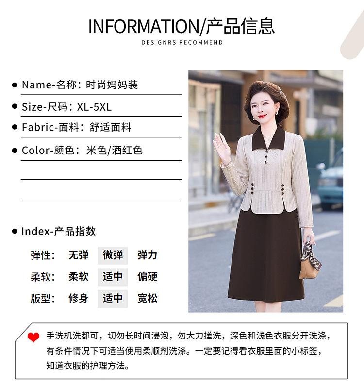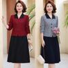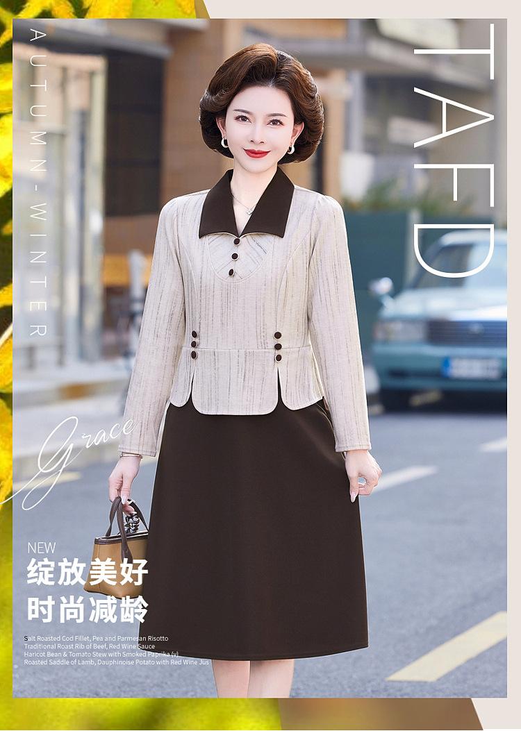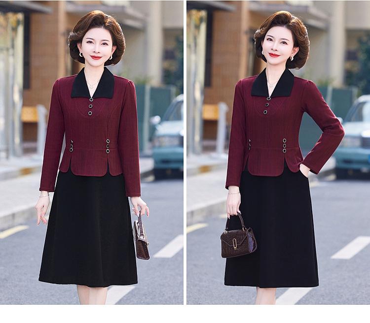 Vestido de primavera y otoño 2025 para madres primerizas, vestido para mujeres de mediana edad y mayores, falda de dos piezas falsa, vestido de primavera con cuello camisero corto para mujer