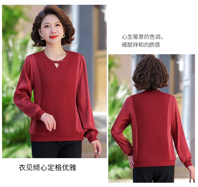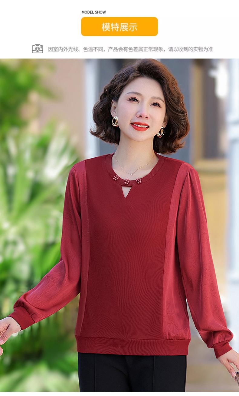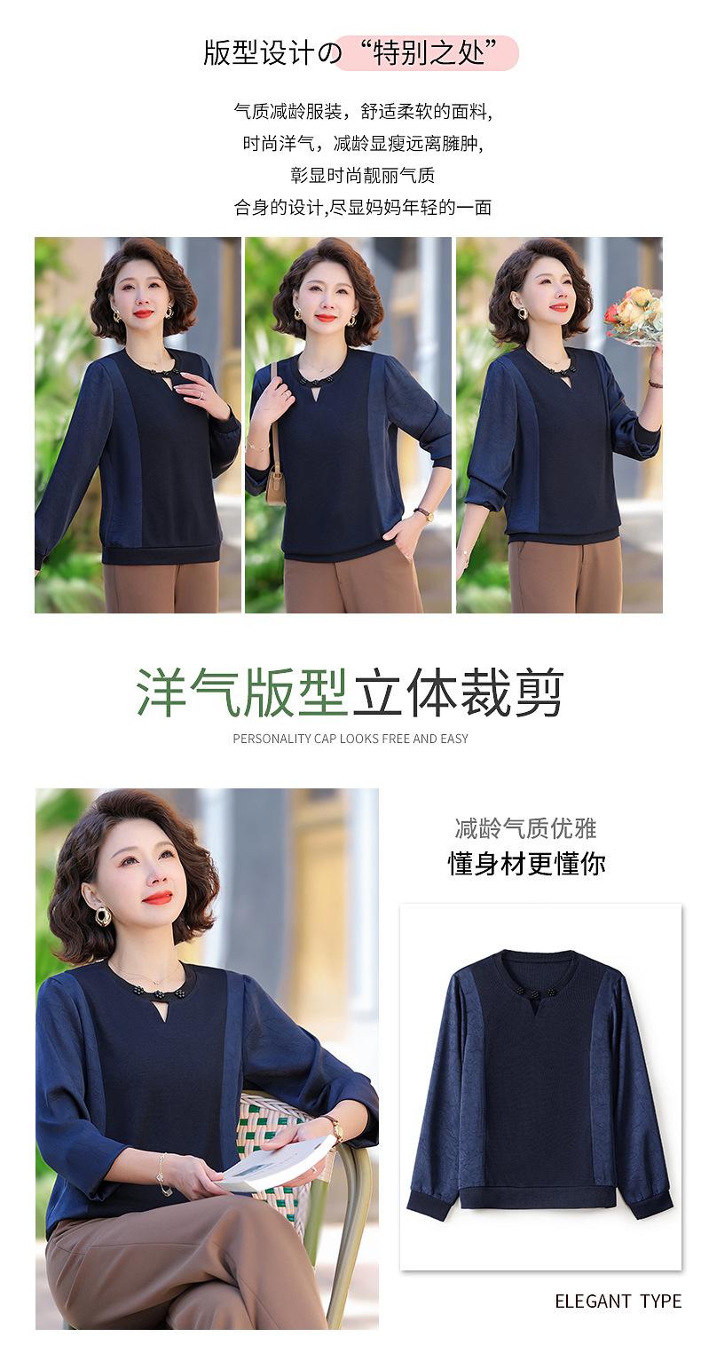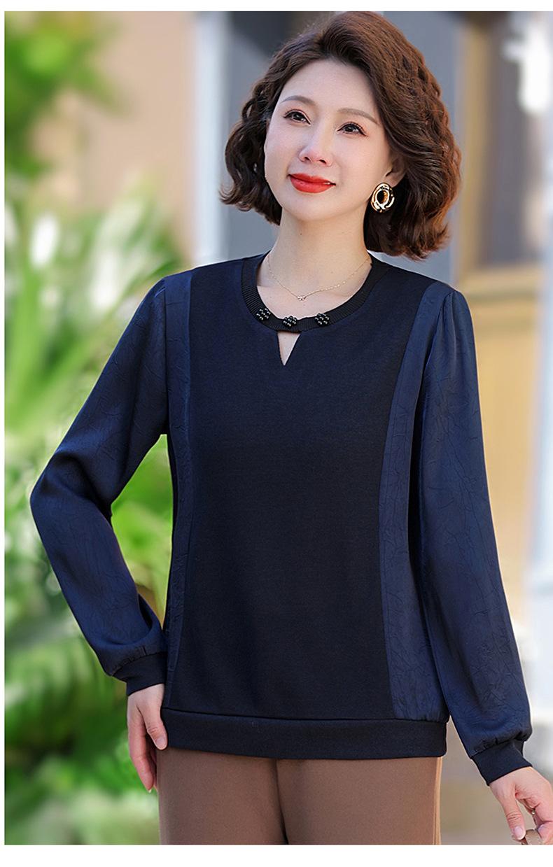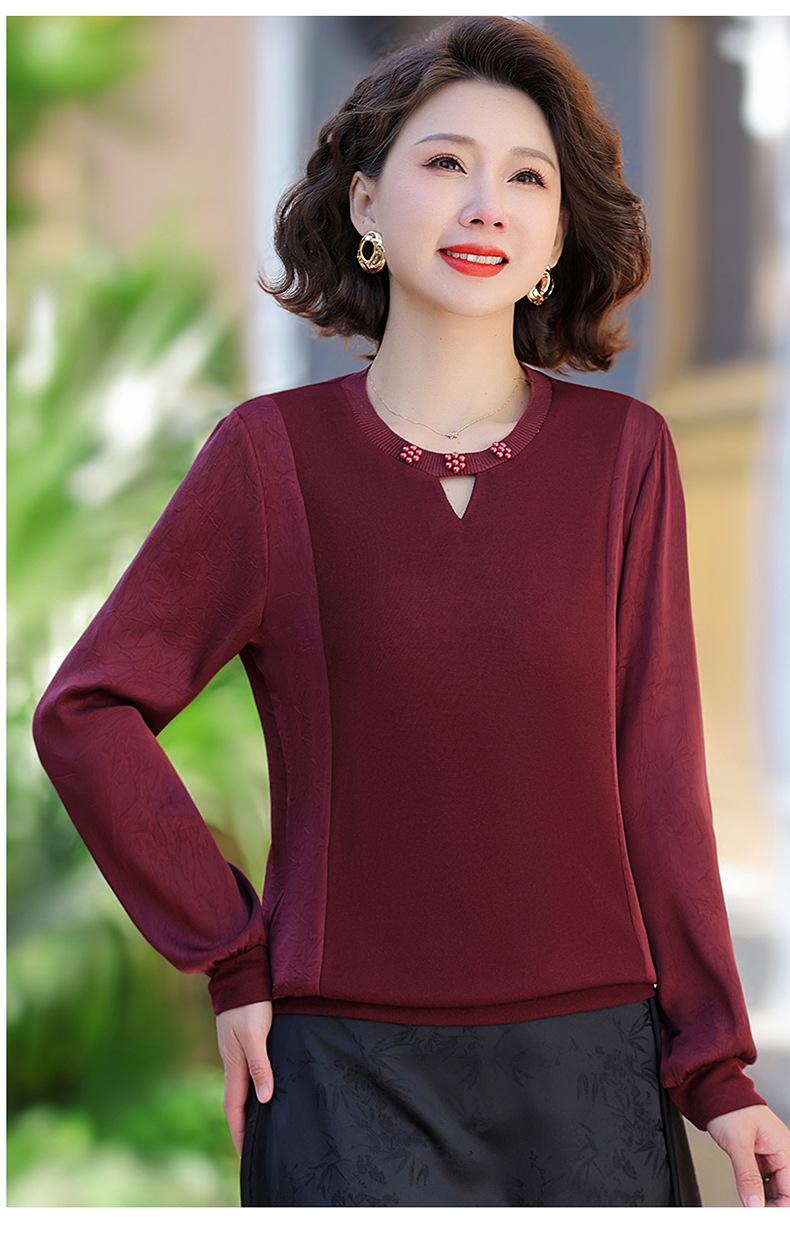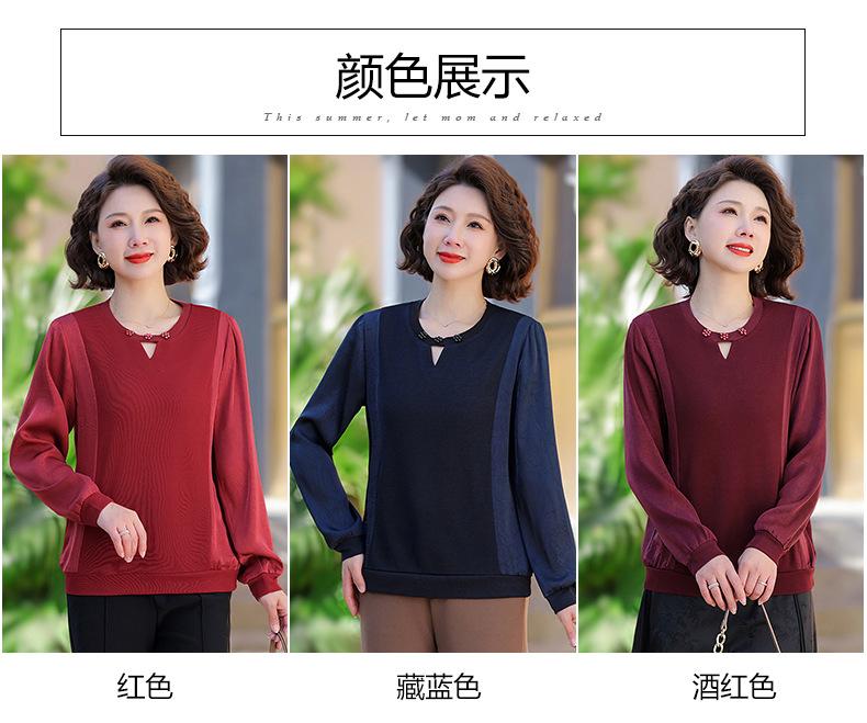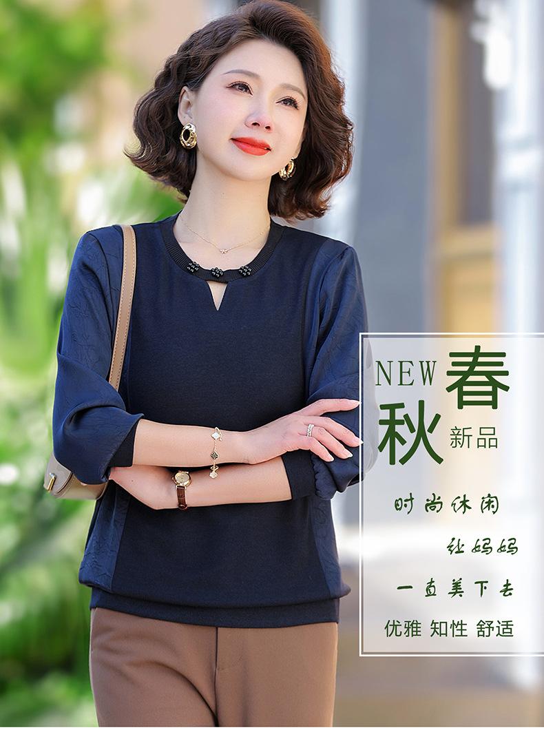 Camiseta de Cuello Redondo para Mamá Nueva de Primavera y Otoño para Mujer 2025 Nueva Camiseta Básica de Moda para Mujer de Mediana Edad al Por Mayor