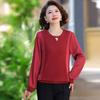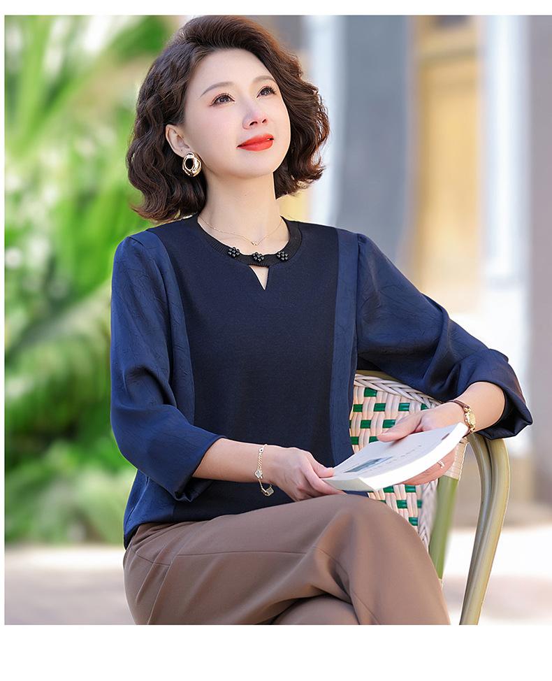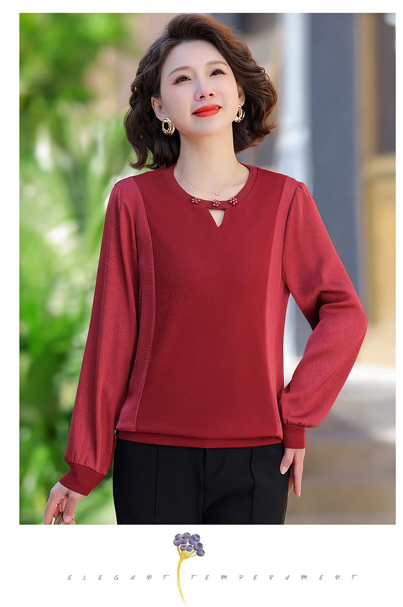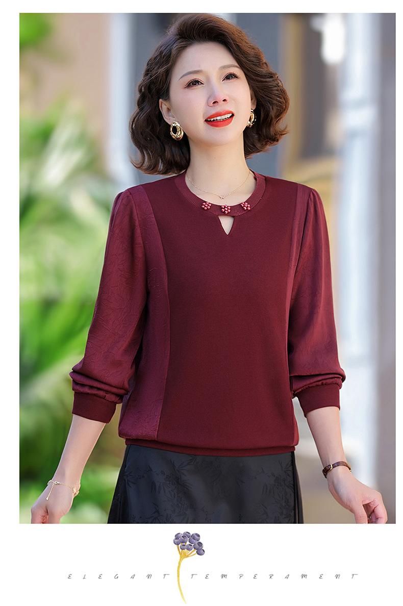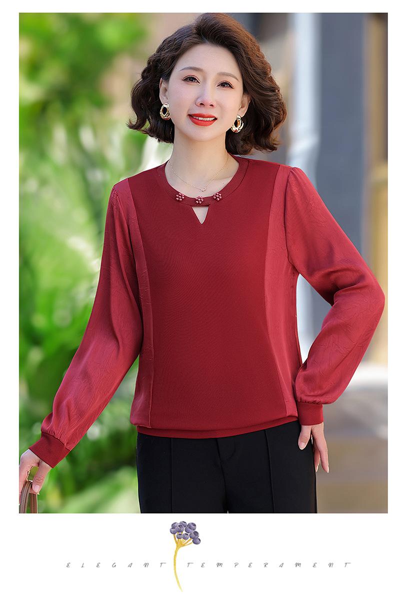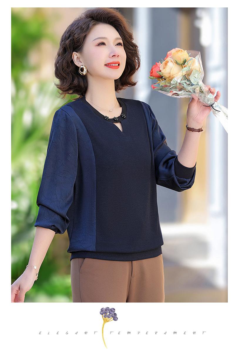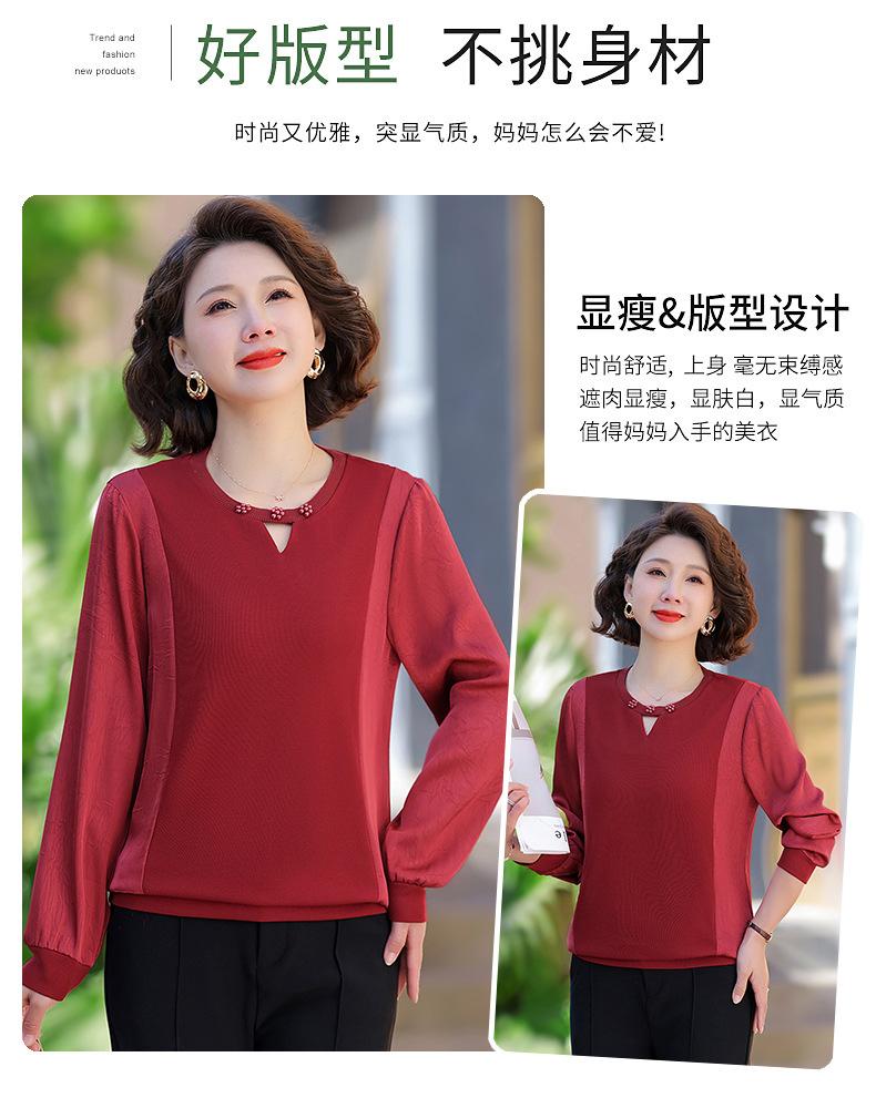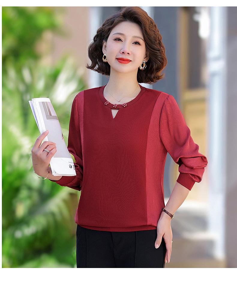 Camiseta de Cuello Redondo para Mamá Nueva de Primavera y Otoño para Mujer 2025 Nueva Camiseta Básica de Moda para Mujer de Mediana Edad al Por Mayor