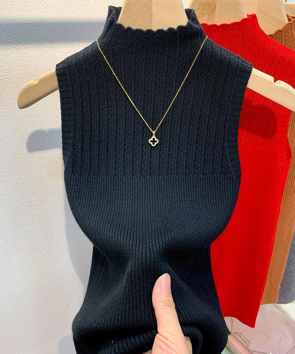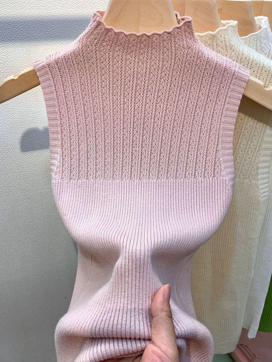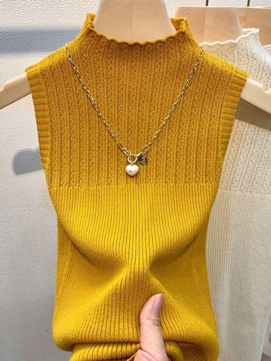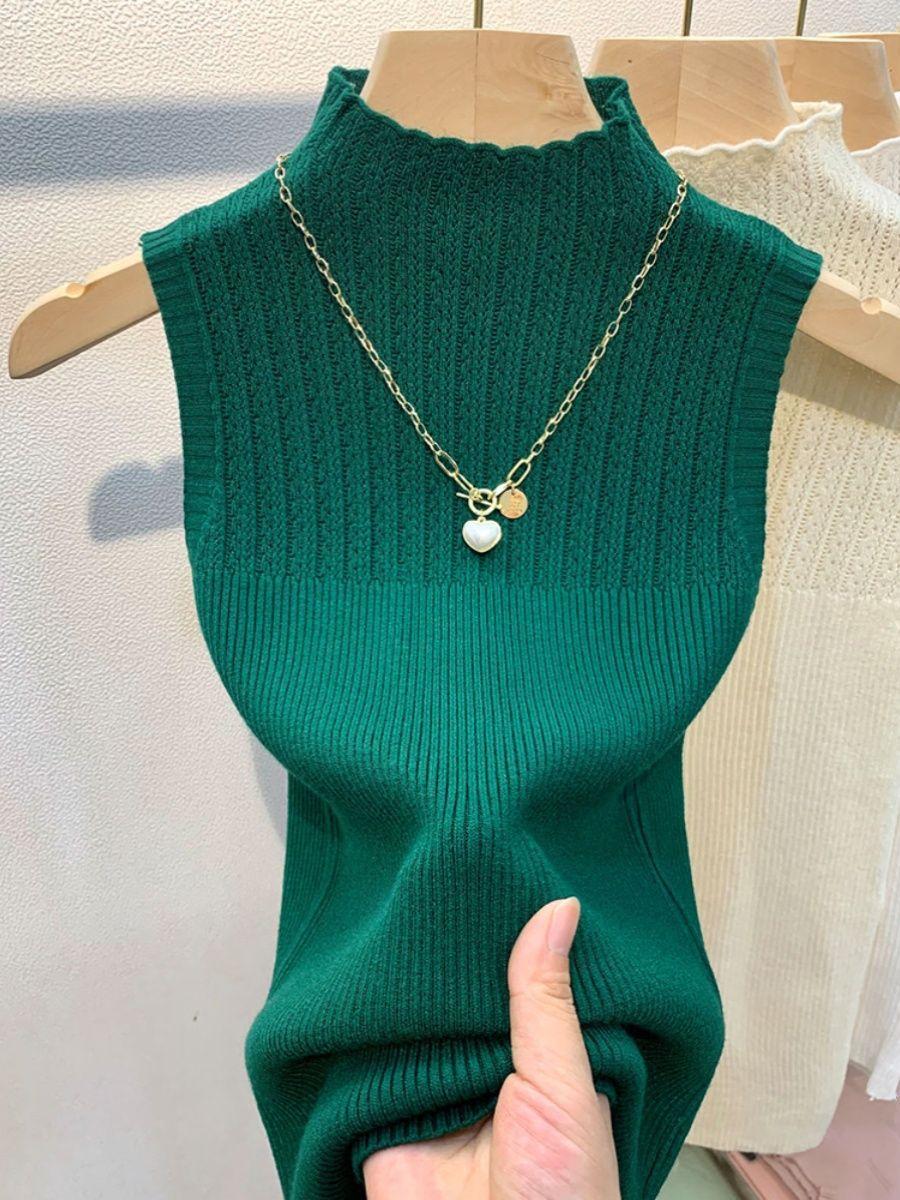 Estilo Urbano Sencillo Combinable Básico Chaleco de Punto para Mujer Color Sólido Ins Traje Base Suéter Ajustado Top Ajustado