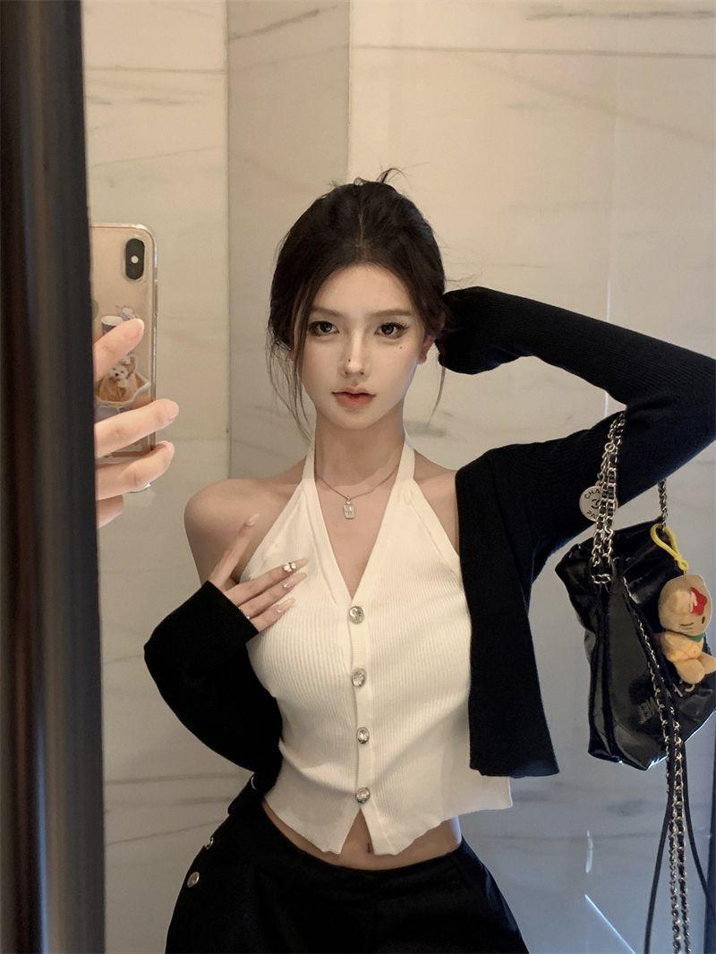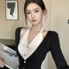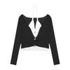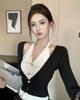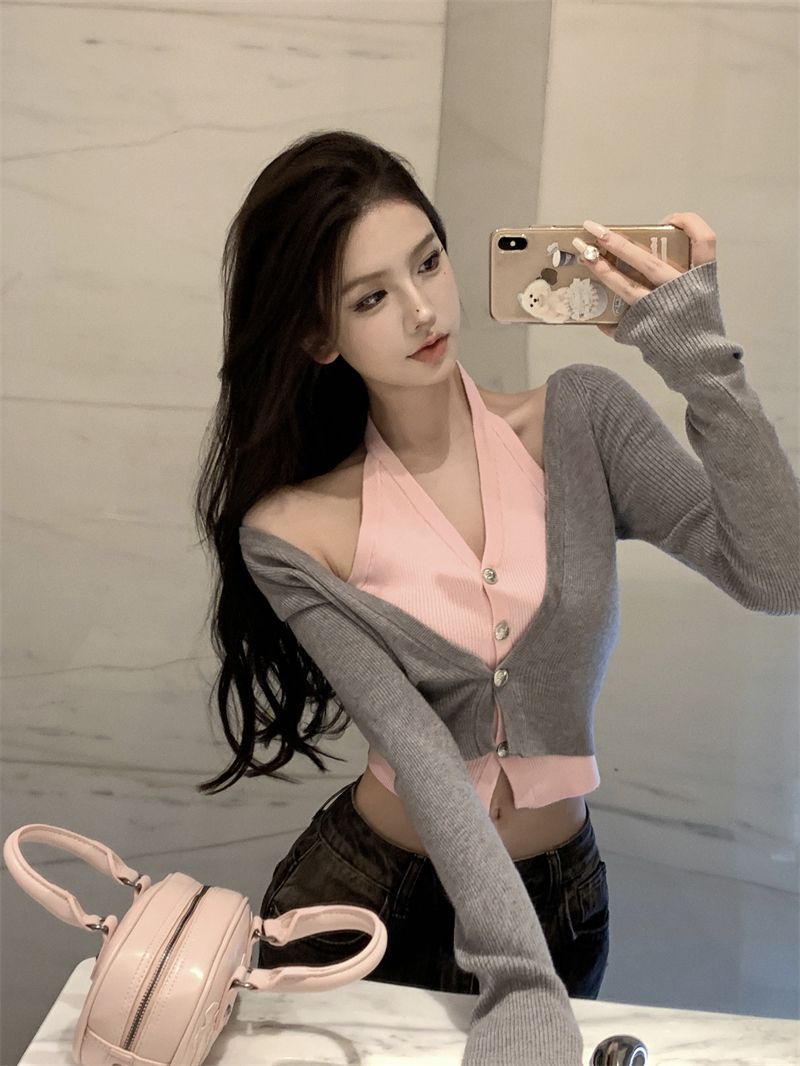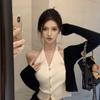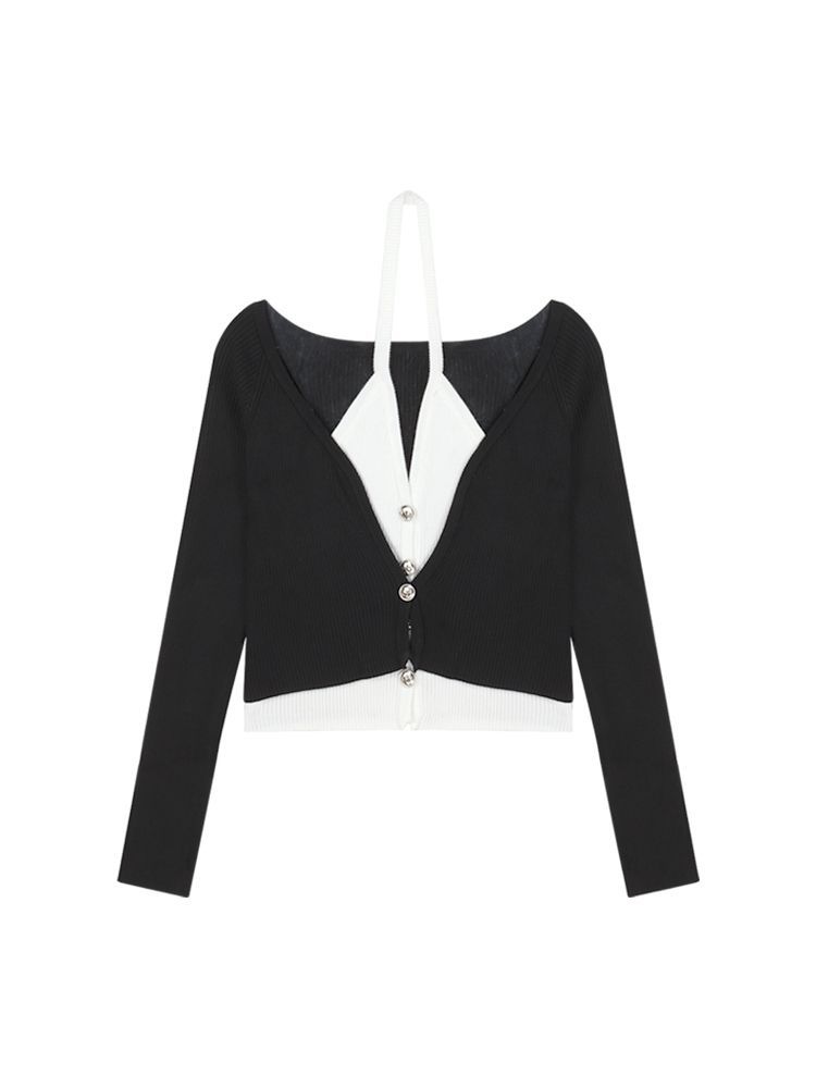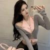 Suéter Cárdigan de Punto de Cuello en V de Manga Larga de Dos Piezas Falsas para Mujer Otoño e Invierno Spice Girls Holgado Ajustado Top Ajustado Ins
