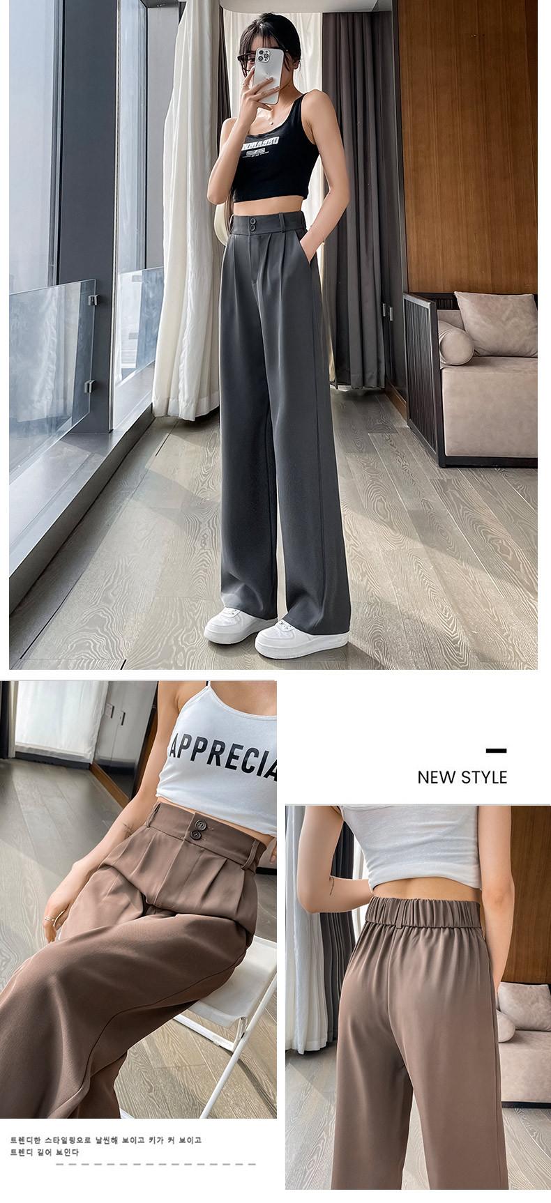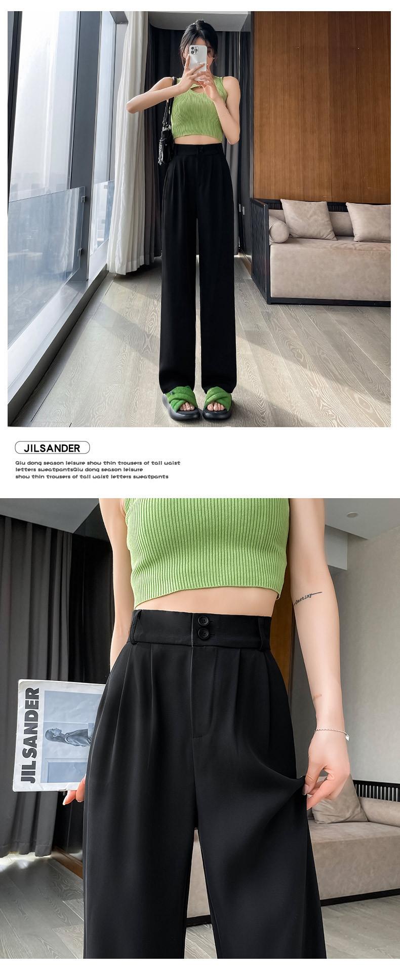 Pantalones anchos negros de alta gama para mujer, primavera y verano 2025, cintura alta, adelgazantes, informales, rectos.