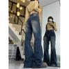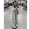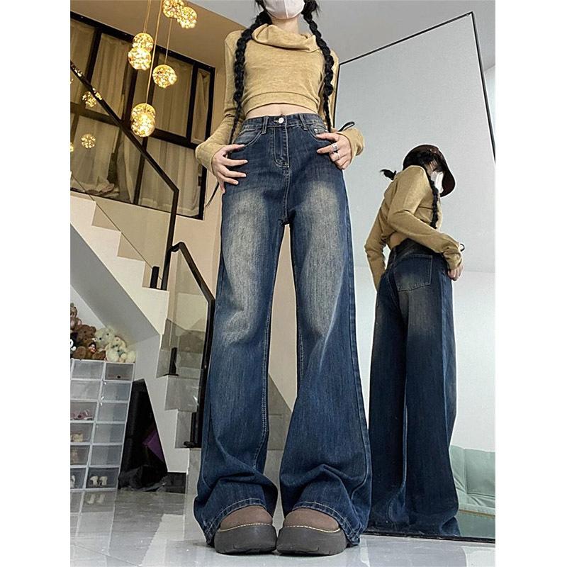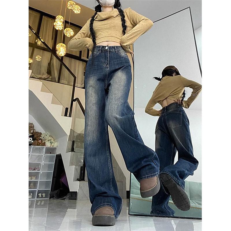 Pantalones vaqueros retro estilo americano Micro-lar para mujer, primavera y otoño, cintura alta, holgados, de gran tamaño, rectos y adelgazantes.