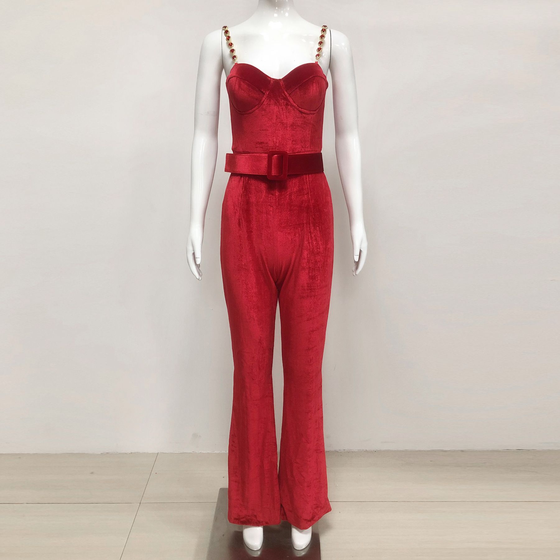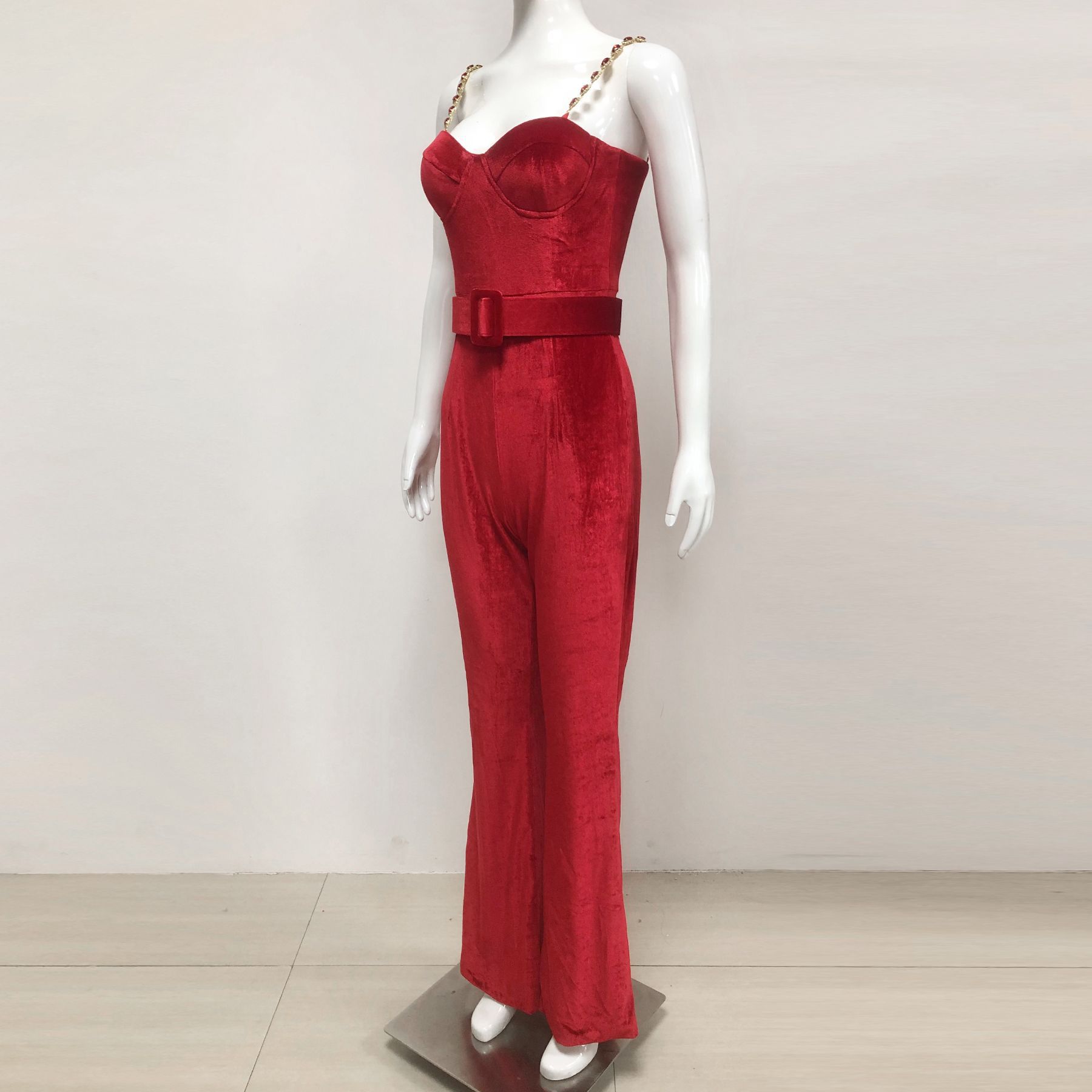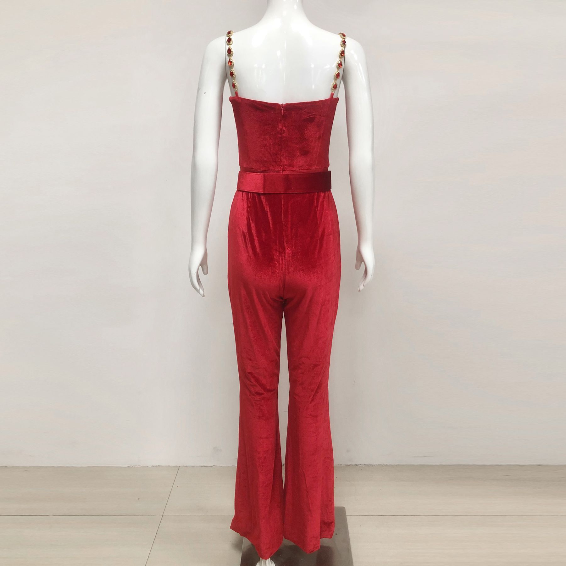 2025 Amazon Sitio Independiente Europeo y Americano Nuevo Color Puro Femenino Elegante Fuera del Hombro Terciopelo Pierna Ancha Mono de Mujer