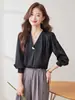Camisa de encaje blanco con cuello en V, ligera, de lujo y alta gama, estilo francés, elegante y único, primavera de 2025 para mujer