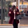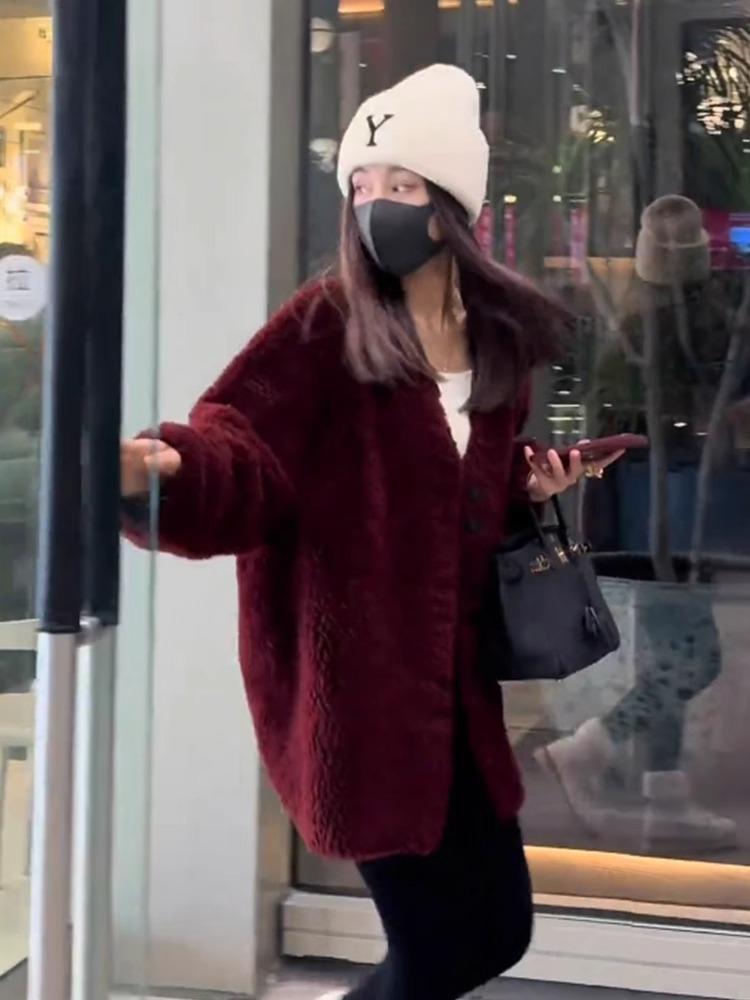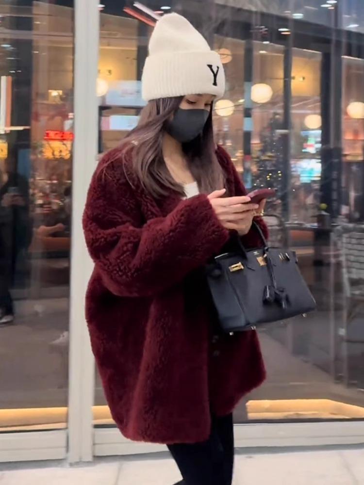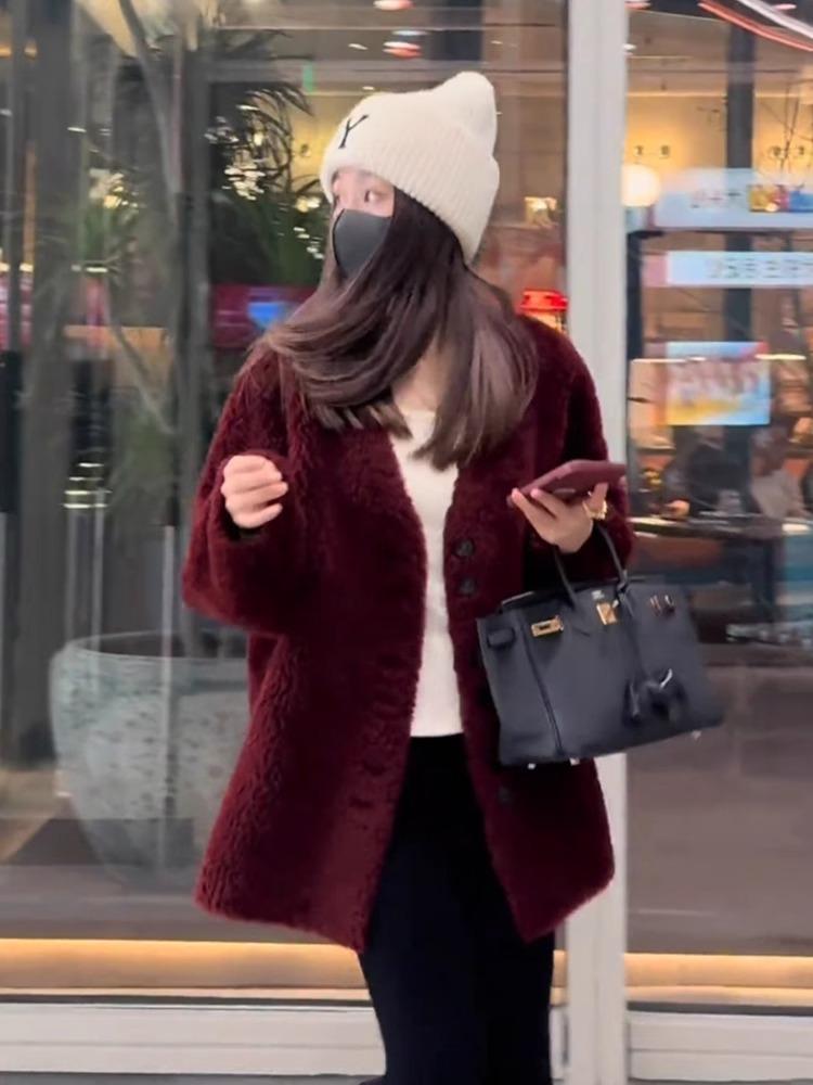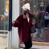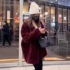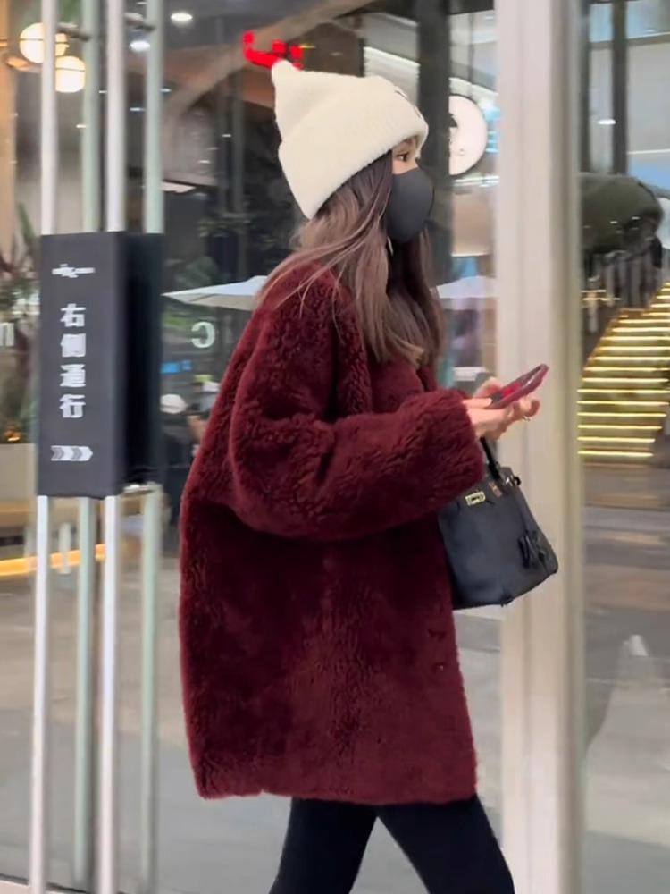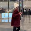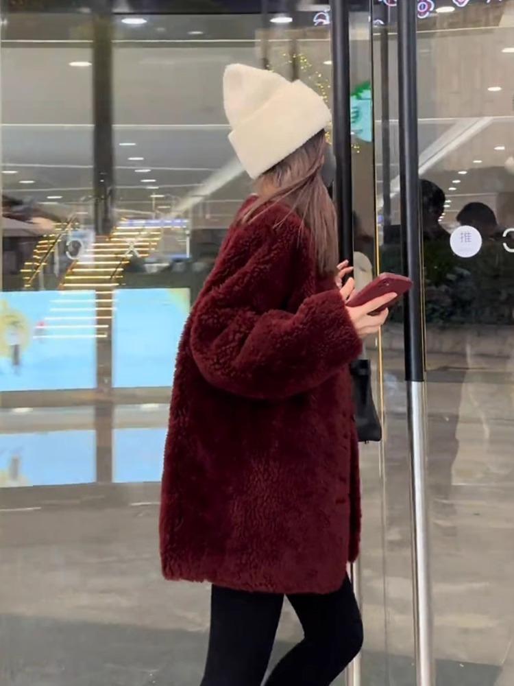 Tallas grandes Ropa para Gorditas Tops 2025 Primavera y Otoño Nuevo rojo vino Cuello Redondo Suelto Abrigo de Lana de Cordero Ropa de Mujer
