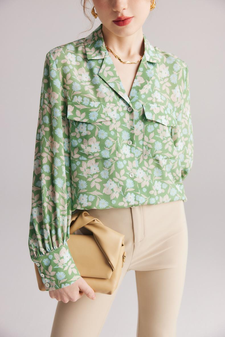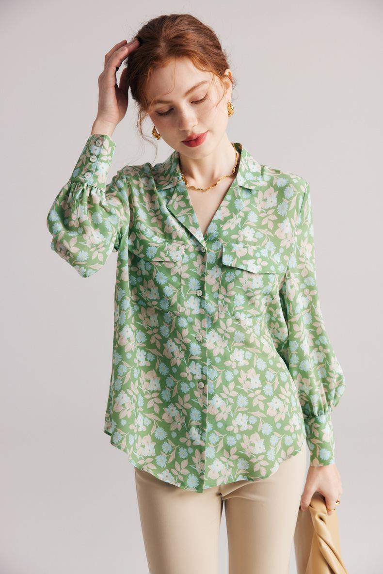 Camisa de seda para mujer, primavera y verano 2025, nueva, manga larga, estampado de crepé de China, camisa de manga larga de seda morera 100%