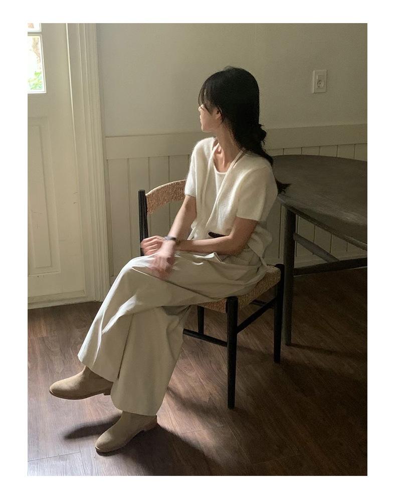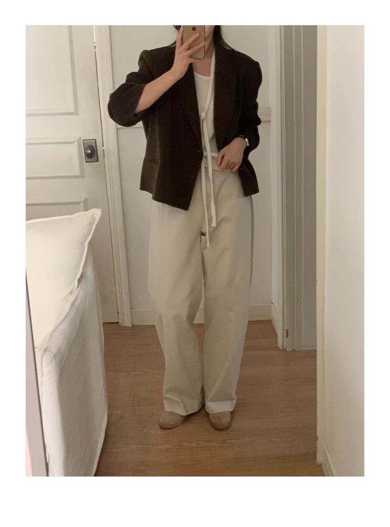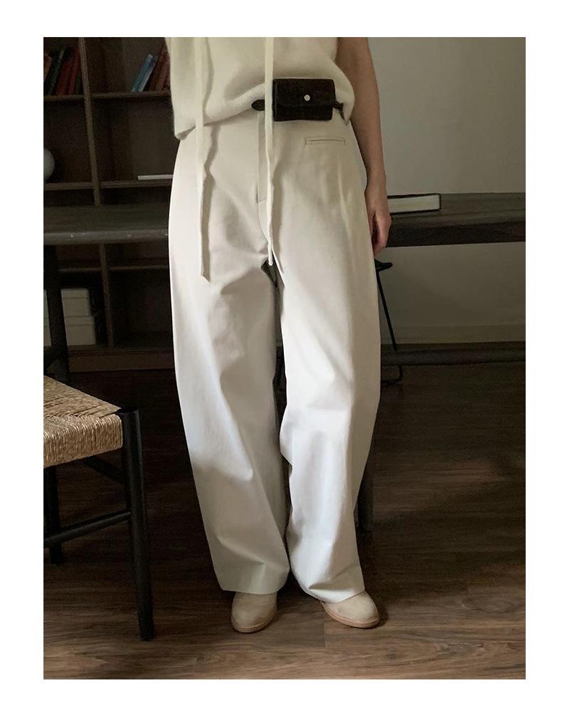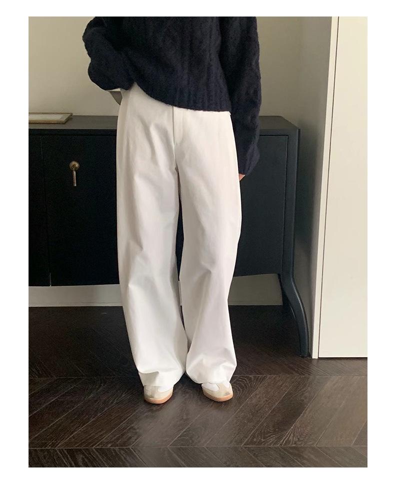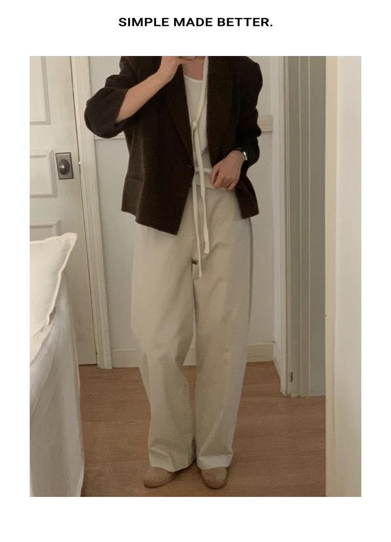 Primavera 2025 Nuevo Diseño Simple Dongdaemun de Corea del Sur Pantalones Casuales Rectos Adelgazantes de Cintura Alta para Mujer