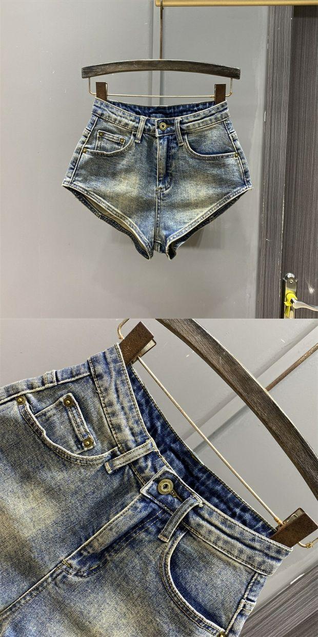 Pantalones cortos vaqueros retro adelgazantes de cintura alta para mujer, sexys, de primavera y verano de 2023