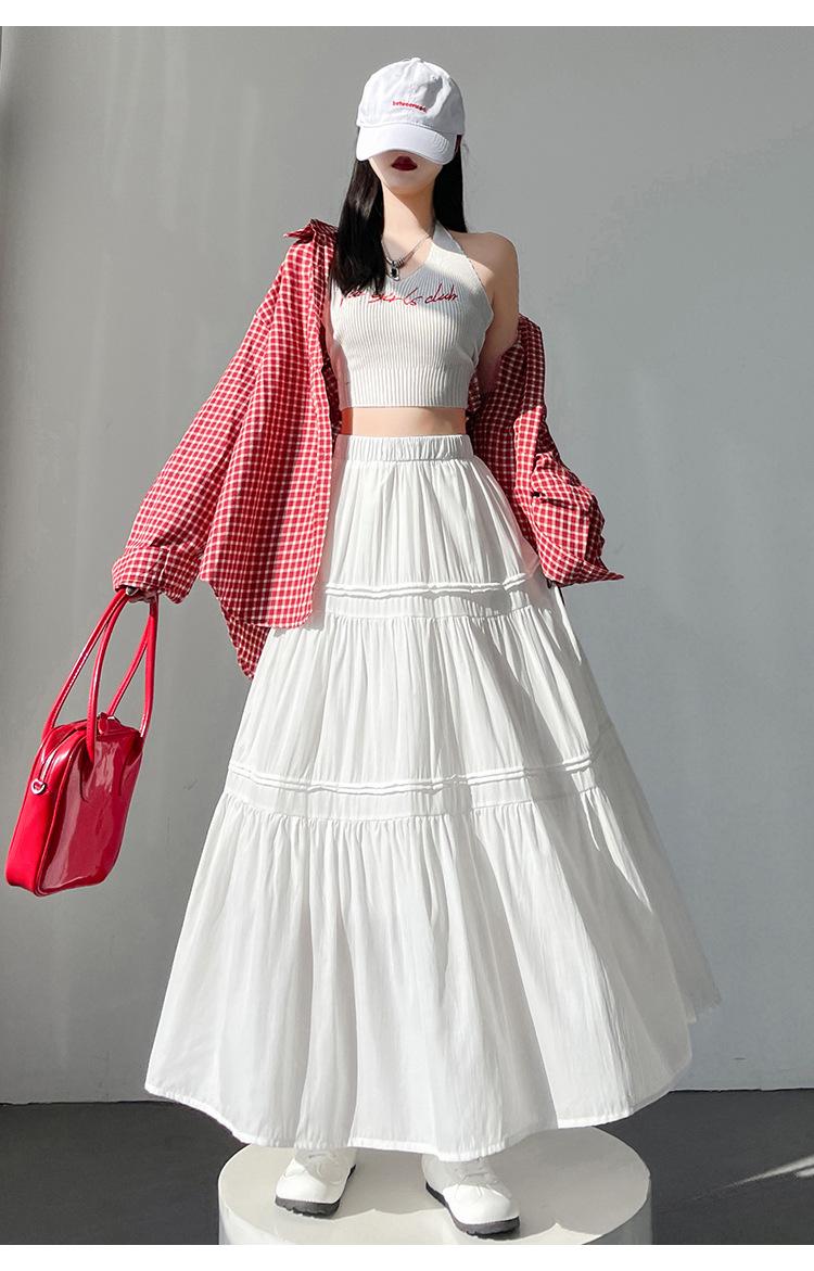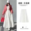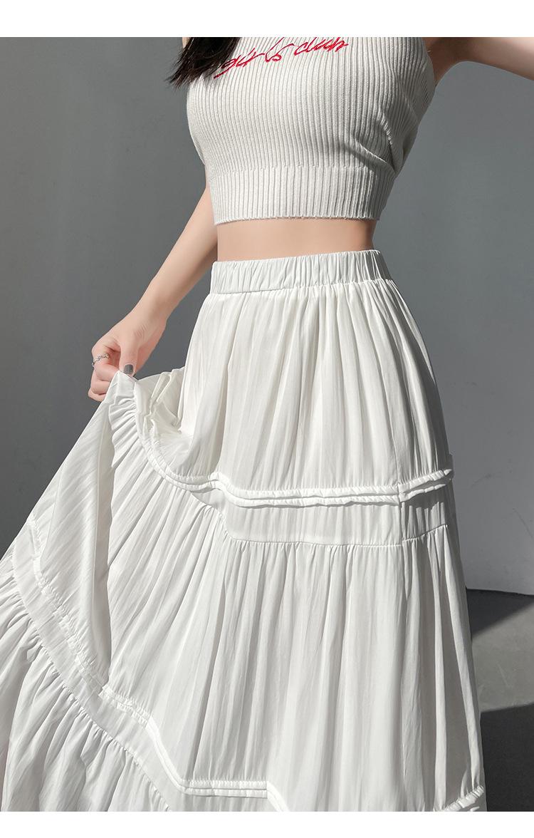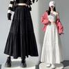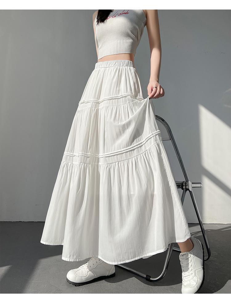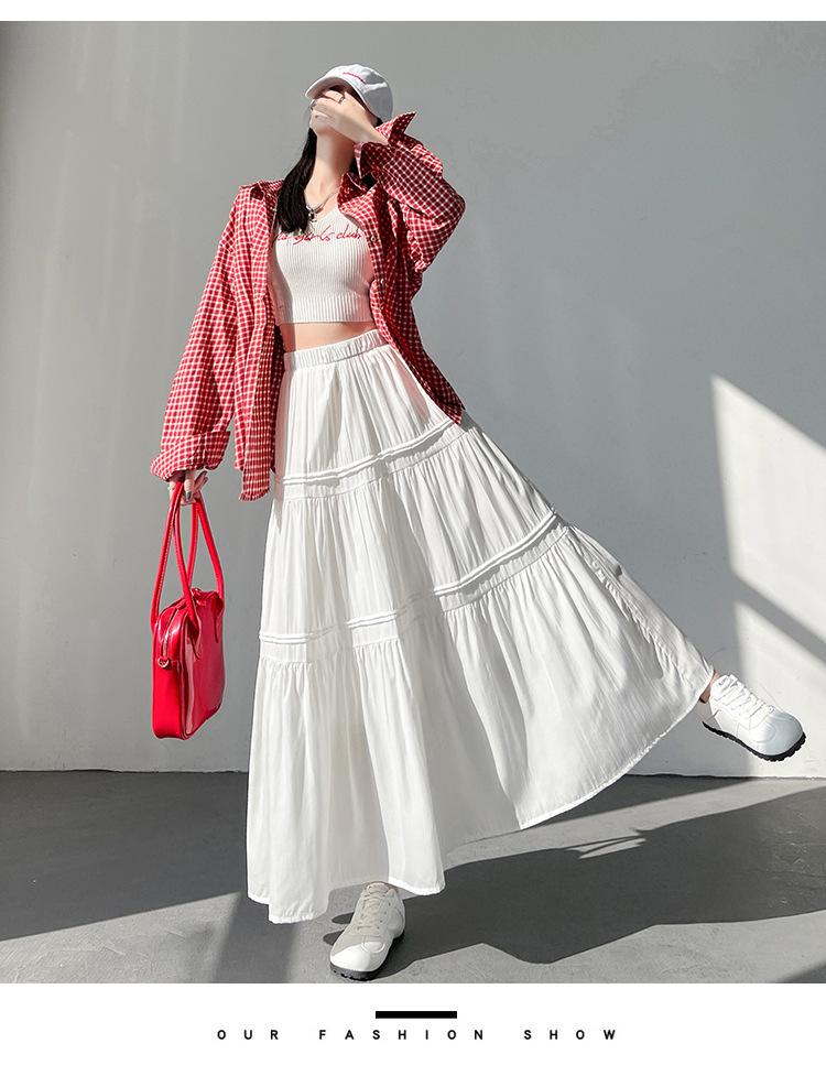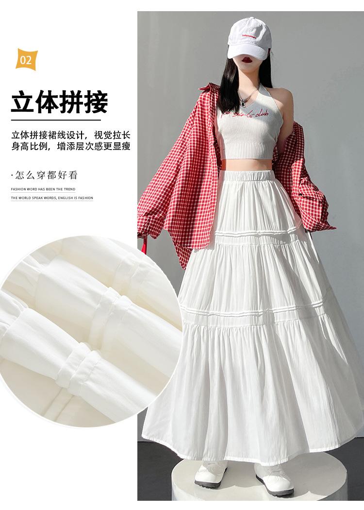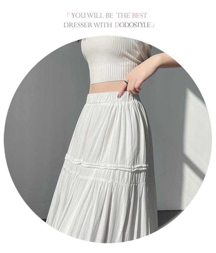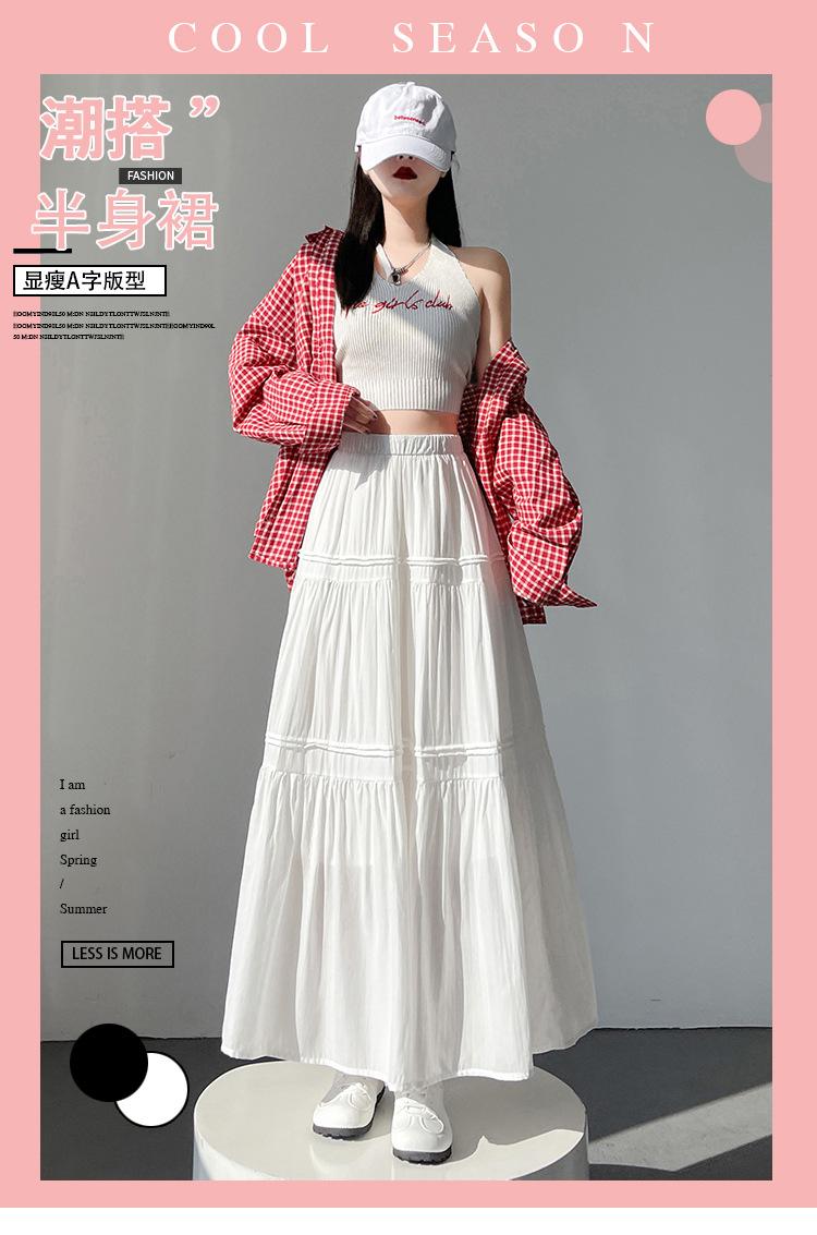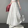 Falda de Costuras Blancas de Tiro Real para Mujer Primavera 2025 Nueva Versátil Adelgazante Cintura Alta Media Longitud Falda Línea A Falda Paraguas