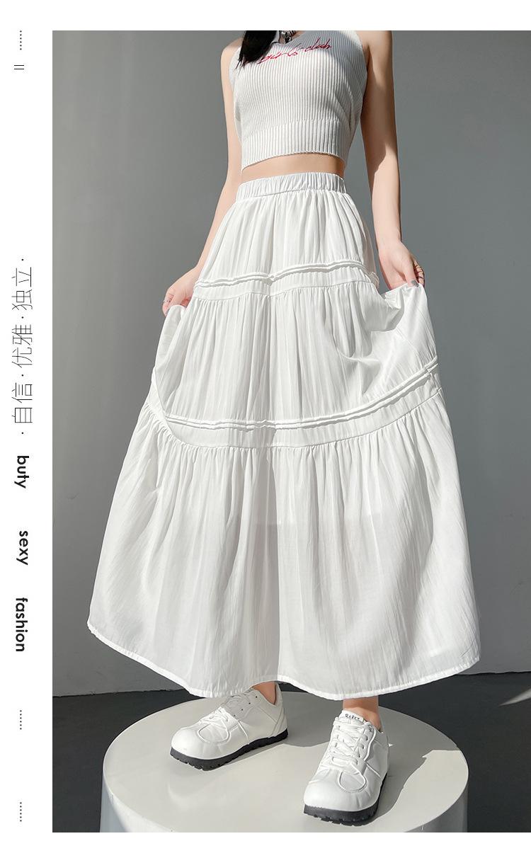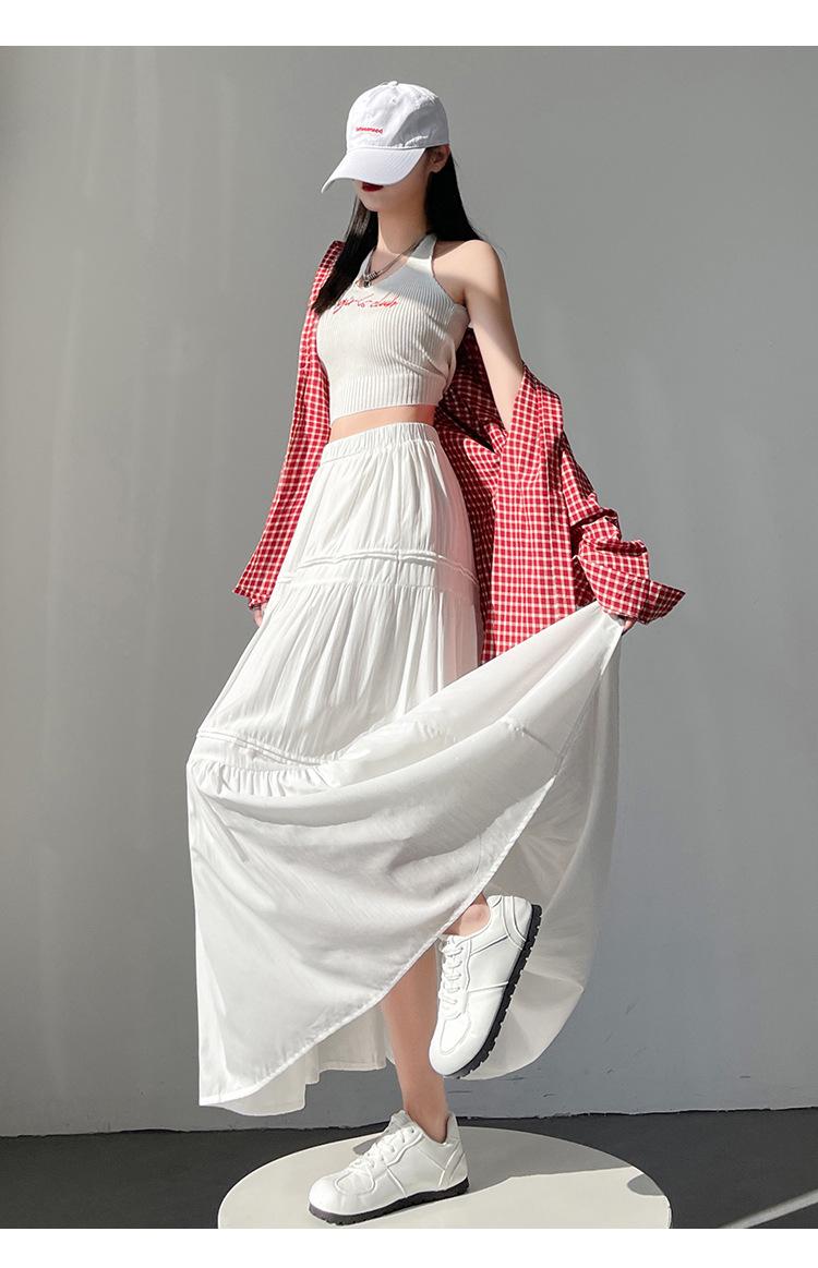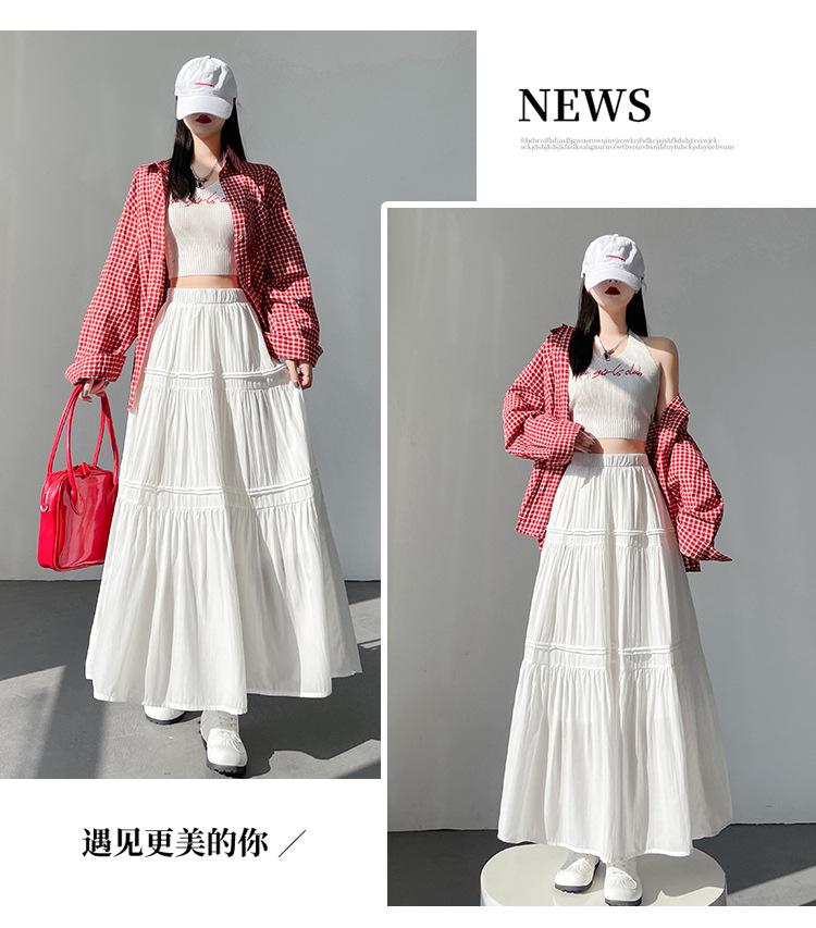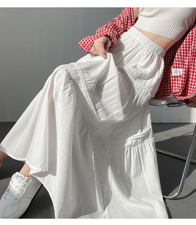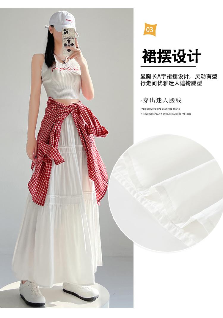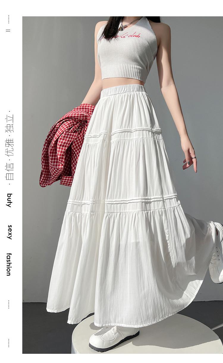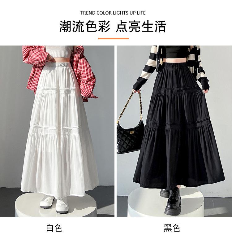 Falda de Costuras Blancas de Tiro Real para Mujer Primavera 2025 Nueva Versátil Adelgazante Cintura Alta Media Longitud Falda Línea A Falda Paraguas