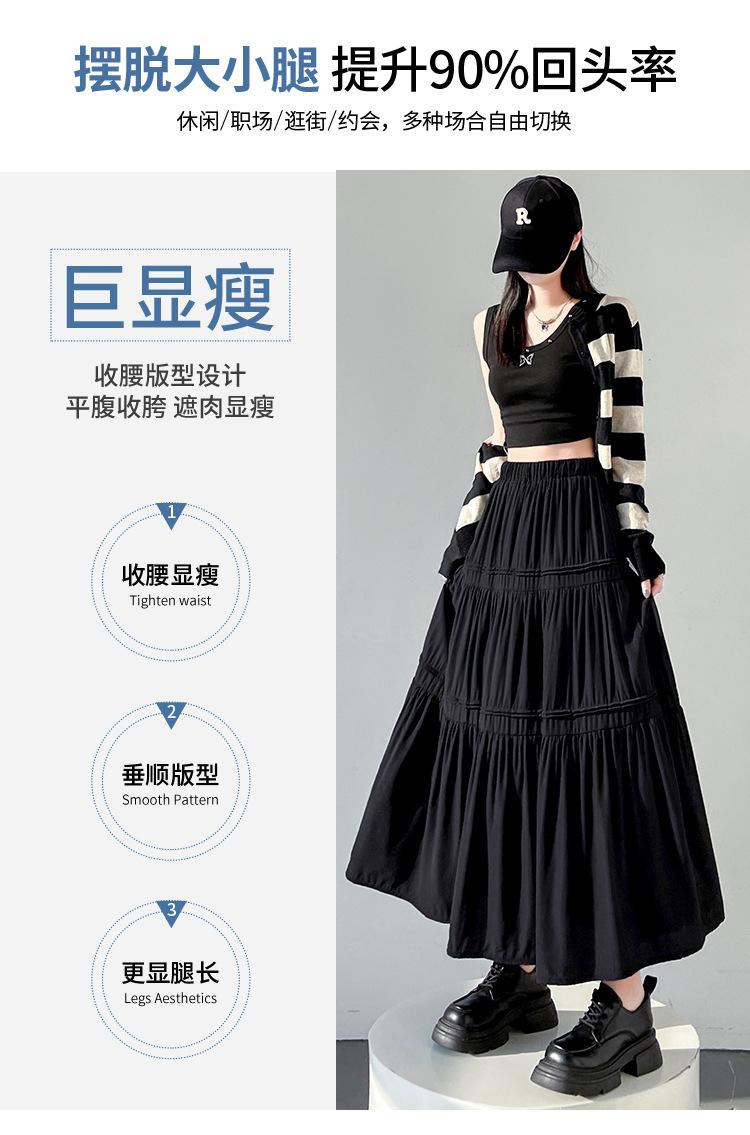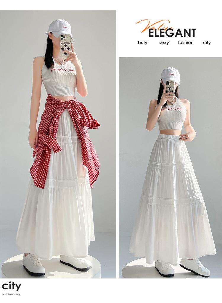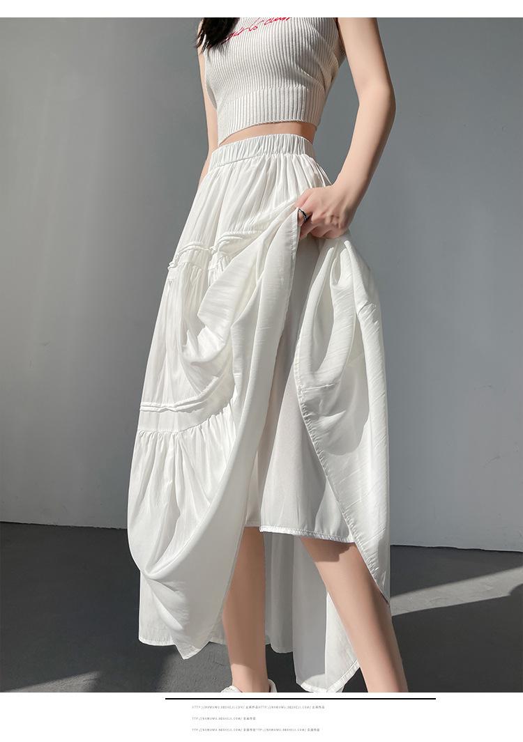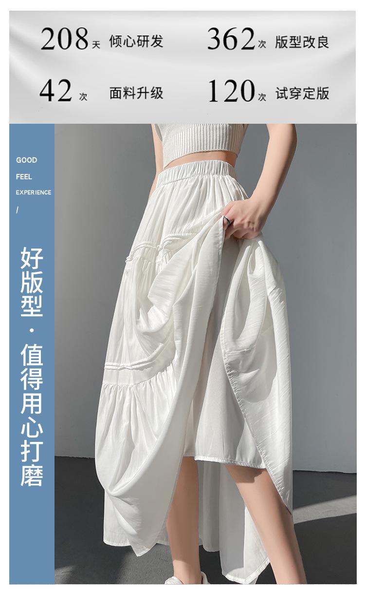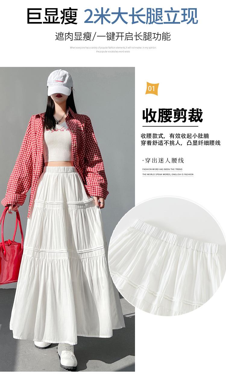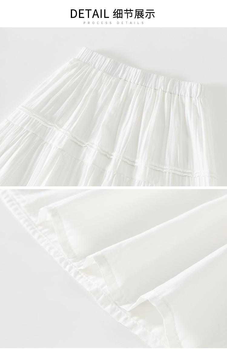 Falda de Costuras Blancas de Tiro Real para Mujer Primavera 2025 Nueva Versátil Adelgazante Cintura Alta Media Longitud Falda Línea A Falda Paraguas