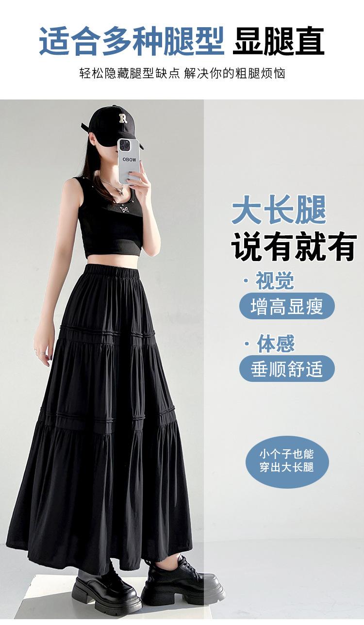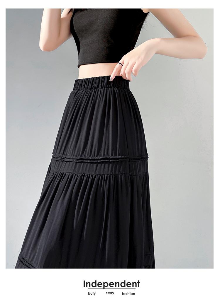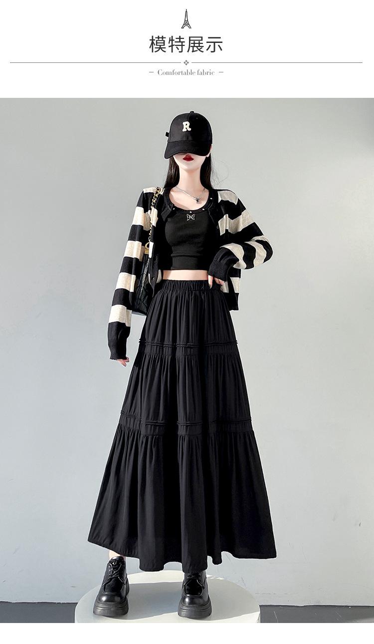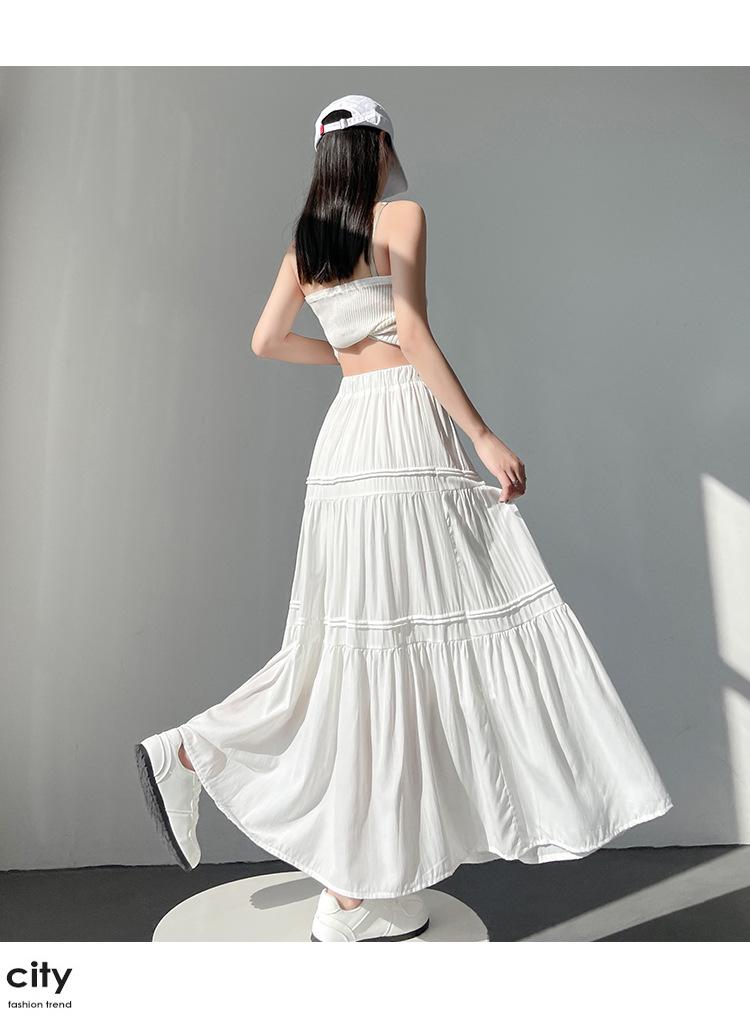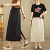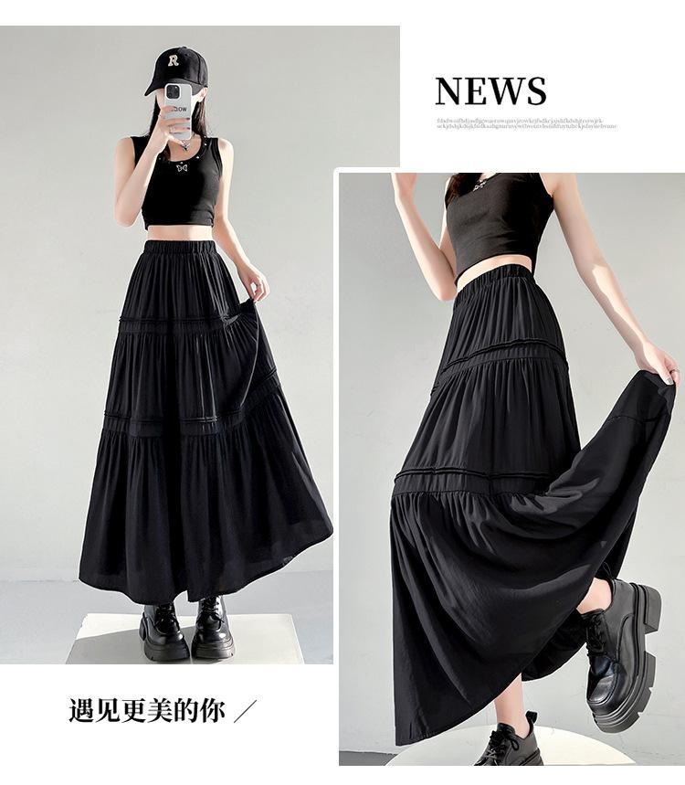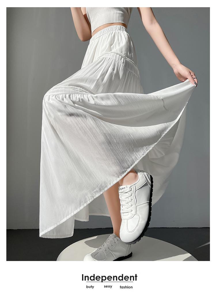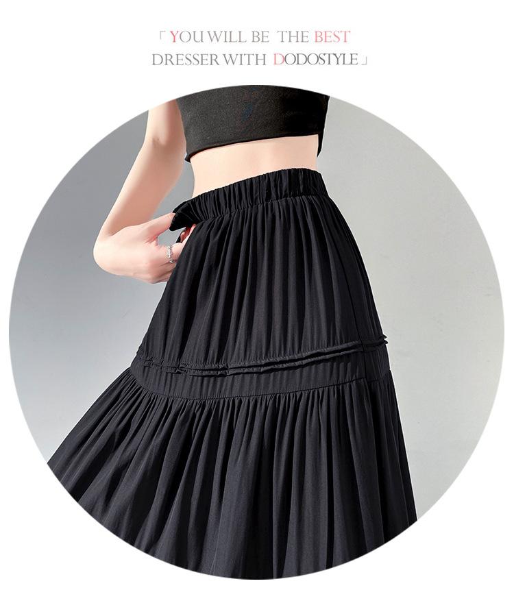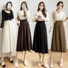 Falda de Costuras Blancas de Tiro Real para Mujer Primavera 2025 Nueva Versátil Adelgazante Cintura Alta Media Longitud Falda Línea A Falda Paraguas