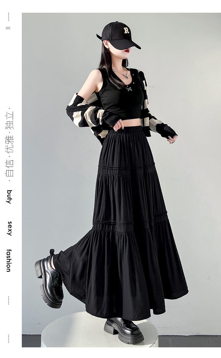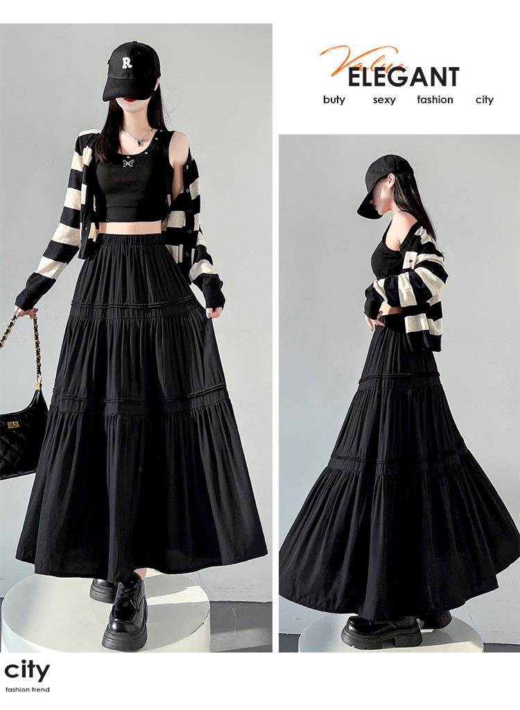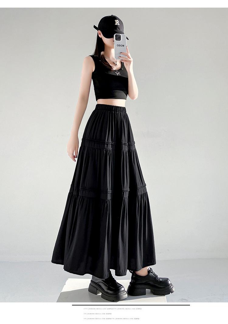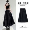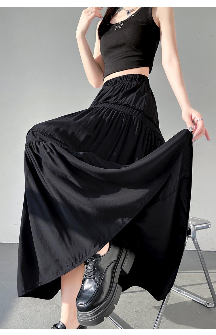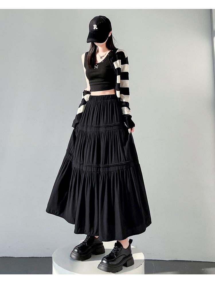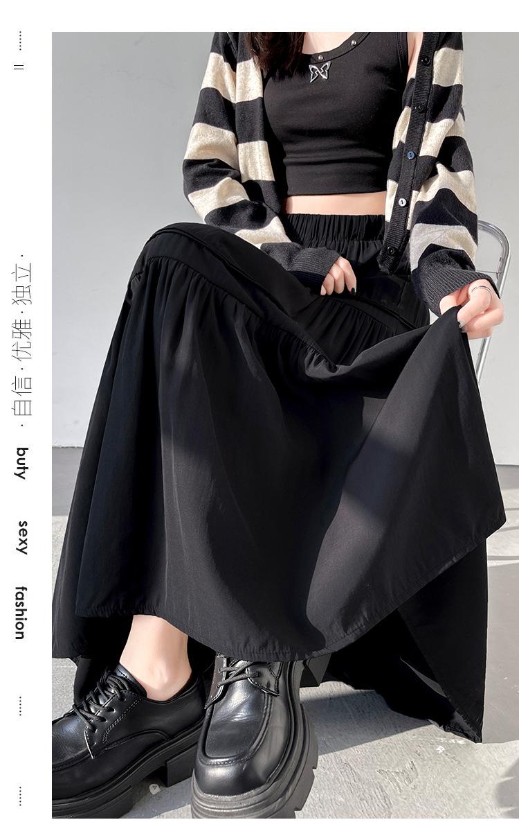Falda de Costuras Blancas de Tiro Real para Mujer Primavera 2025 Nueva Versátil Adelgazante Cintura Alta Media Longitud Falda Línea A Falda Paraguas