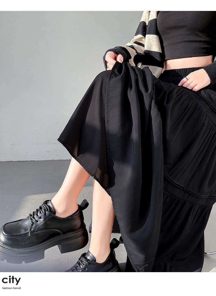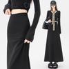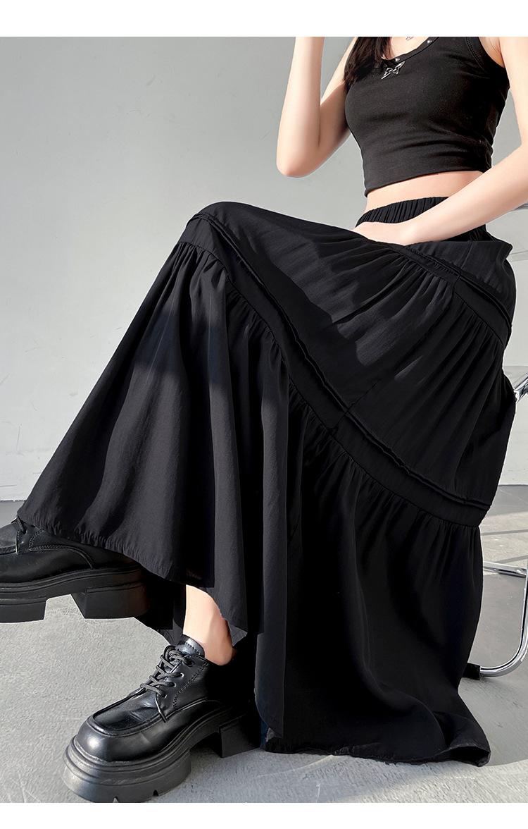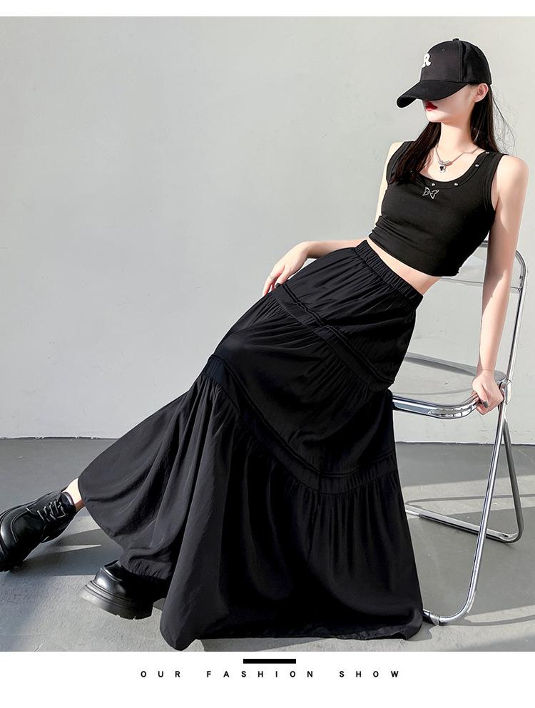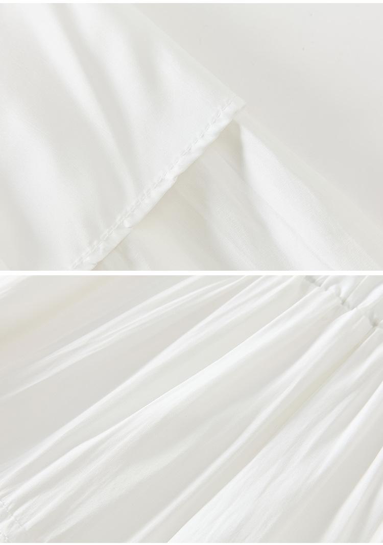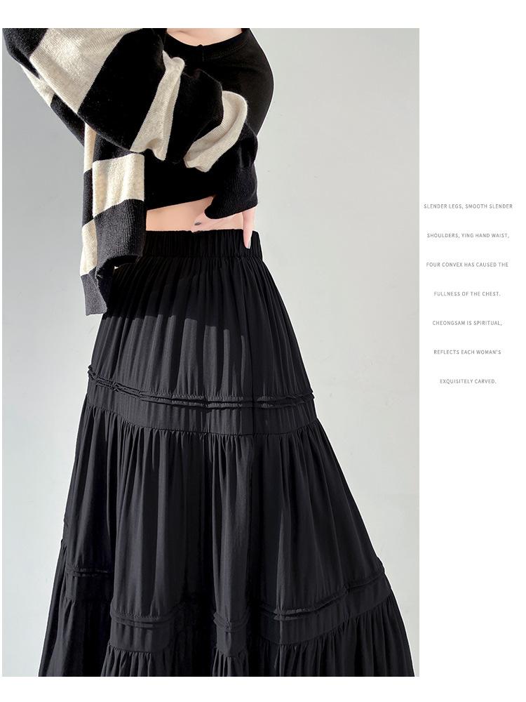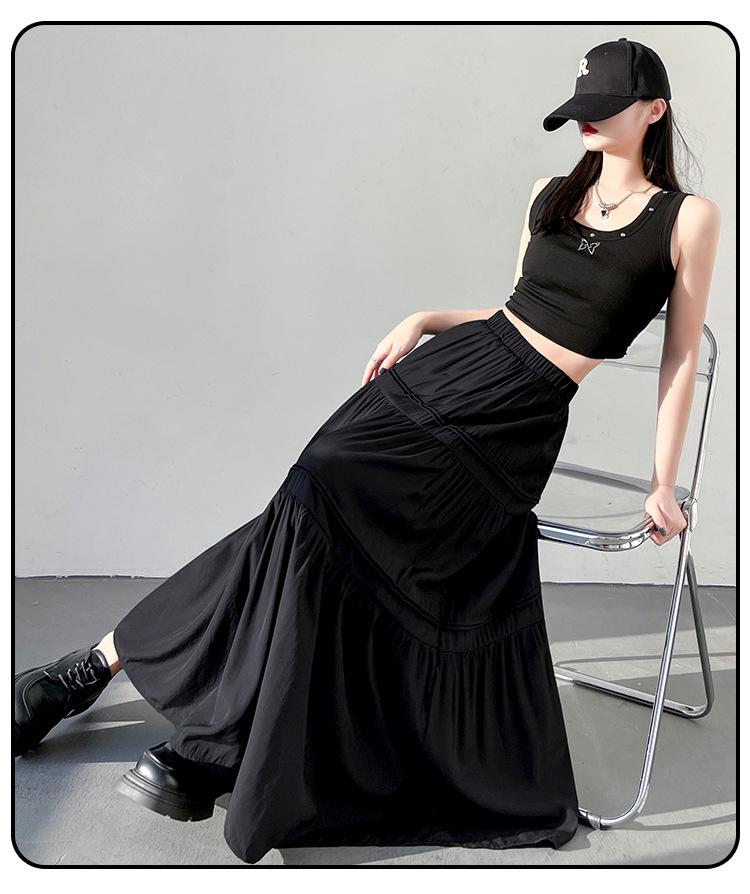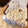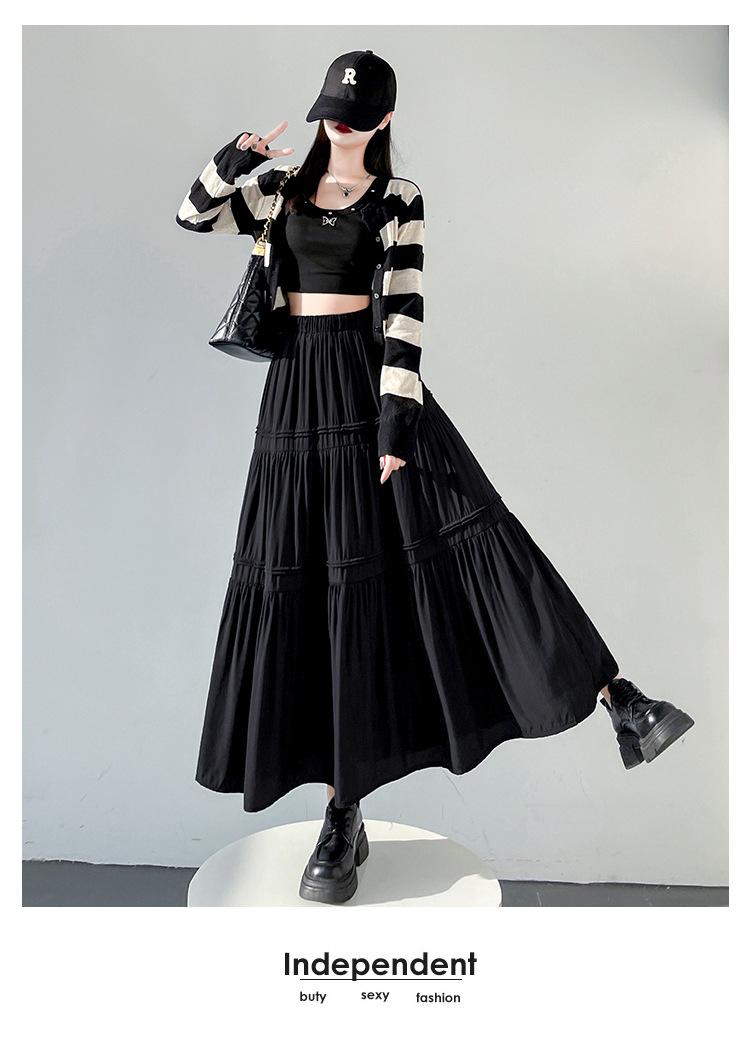 Falda de Costuras Blancas de Tiro Real para Mujer Primavera 2025 Nueva Versátil Adelgazante Cintura Alta Media Longitud Falda Línea A Falda Paraguas