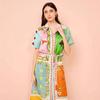 Comercio exterior 2025 primavera nuevo Amazon Europa y América mujeres temperamento moda estampado cárdigan solapa tira vestido