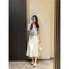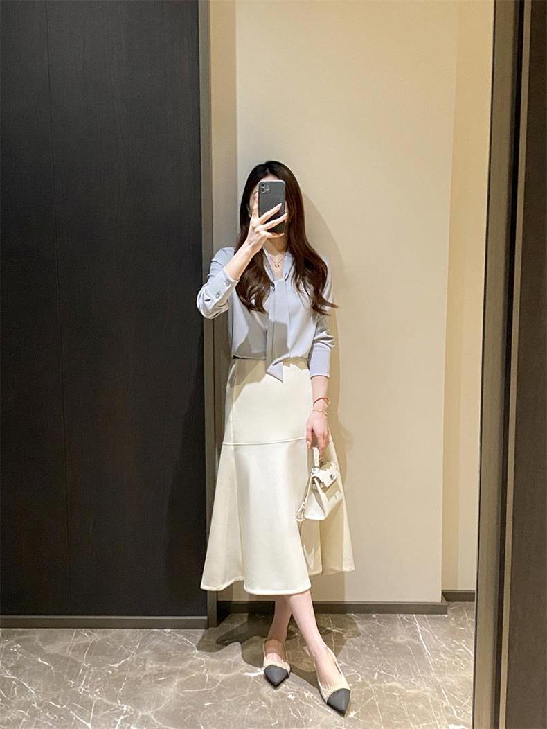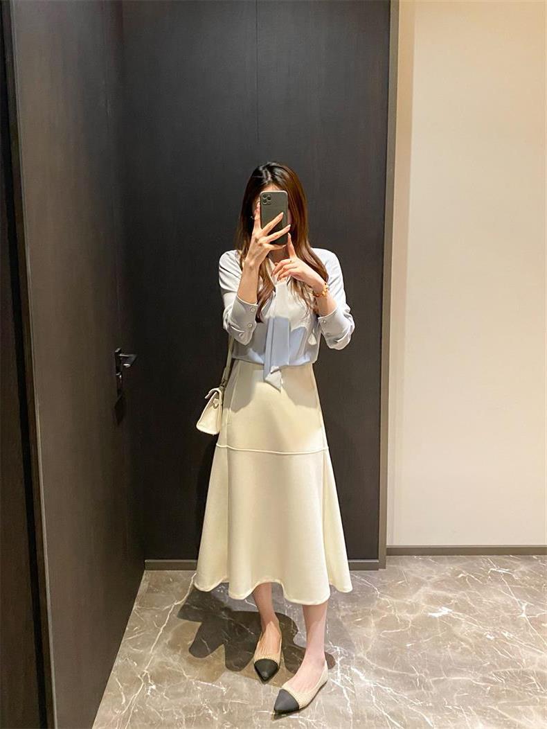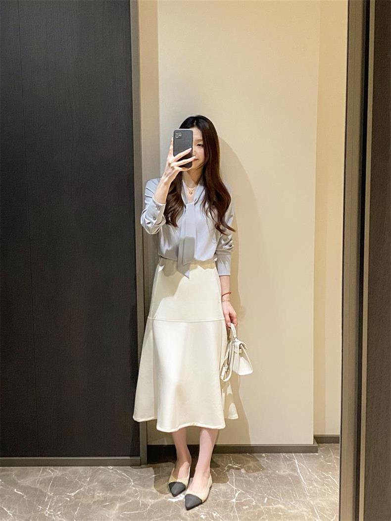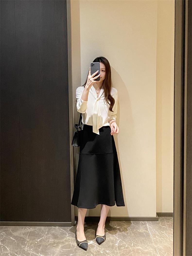 Diseño de largo medio y cintura alta, corte tridimensional y empalme de la falda, simple pero elegante